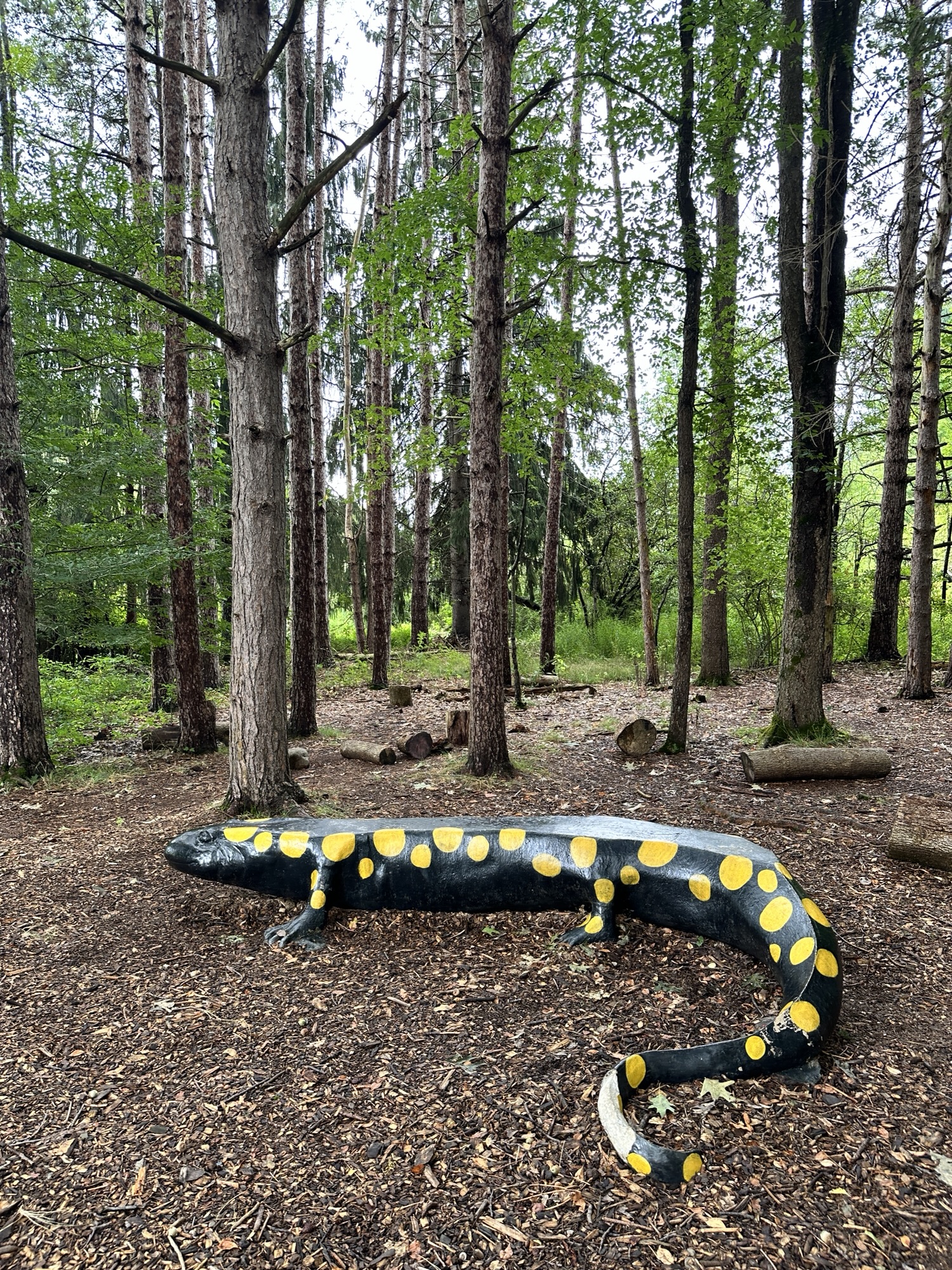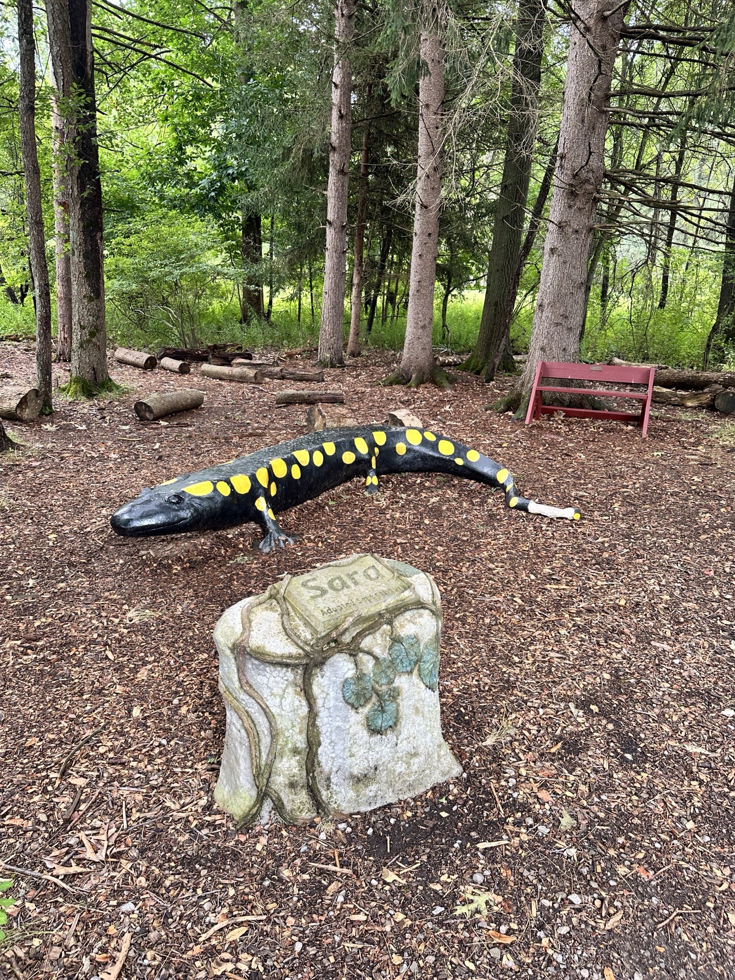 This nature center is located 2.5 hours southwest of Rochester, NY and 1.5 hours south of Buffalo, NY. One great spot in this nature center is the nature play area. Follow the painted animal prints on the paved path to a beautiful wooded area with large animals to climb on, wooden logs for stepping and climbing, benches, a tunnel, and more! Dogs are NOT allowed at this nature center.