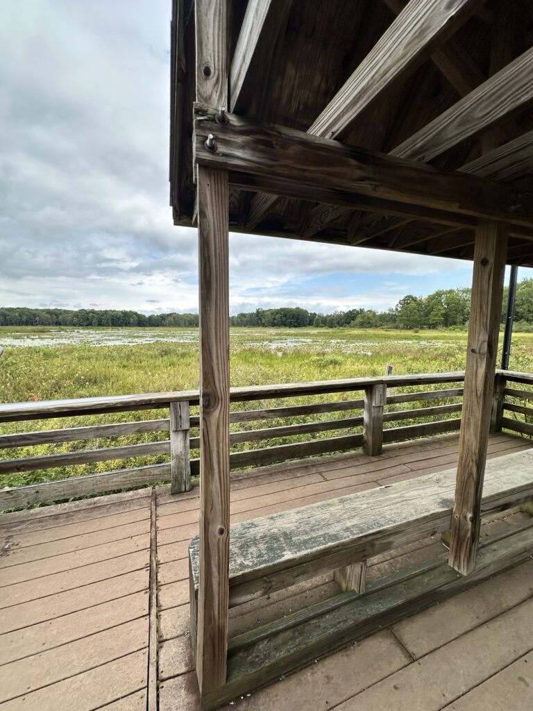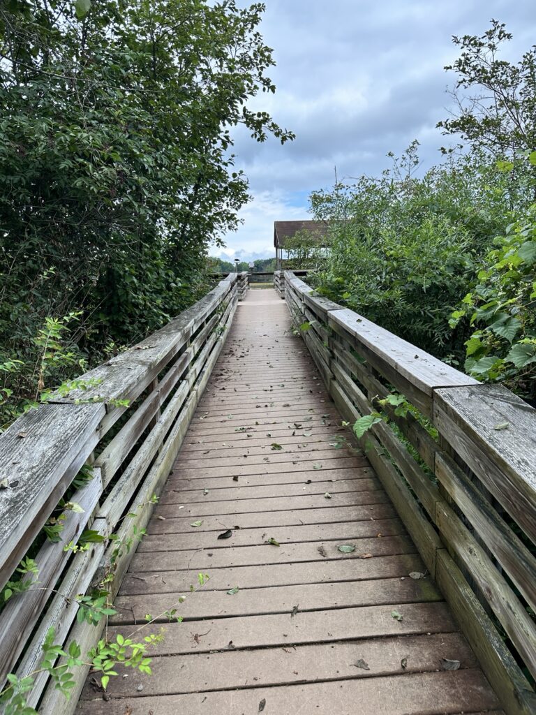 This nature center is located 2.5 hours southwest of Rochester, NY and 1.5 hours south of Buffalo, NY. The Overlook Trail is a 0.6 mile long loop blazed with blue circles. The paved, stroller-friendly section of Overlook Trail takes you past ponds to the Blue Heron Overlook. The rest of the trail is grassy and not stroller friendly. You may see wildlife including herons, eagles, deer, ducks, turtles, and frogs. Dogs are NOT allowed at the nature center.
