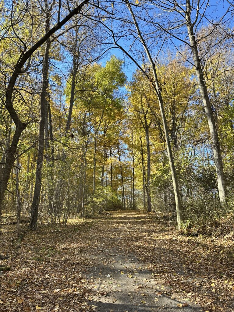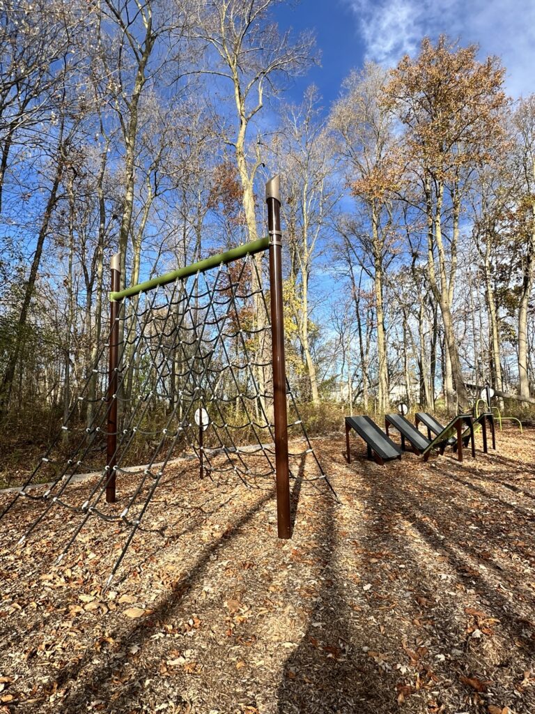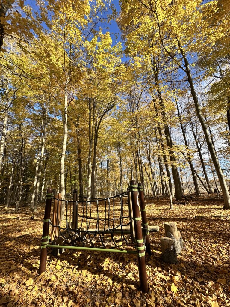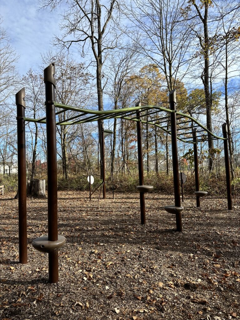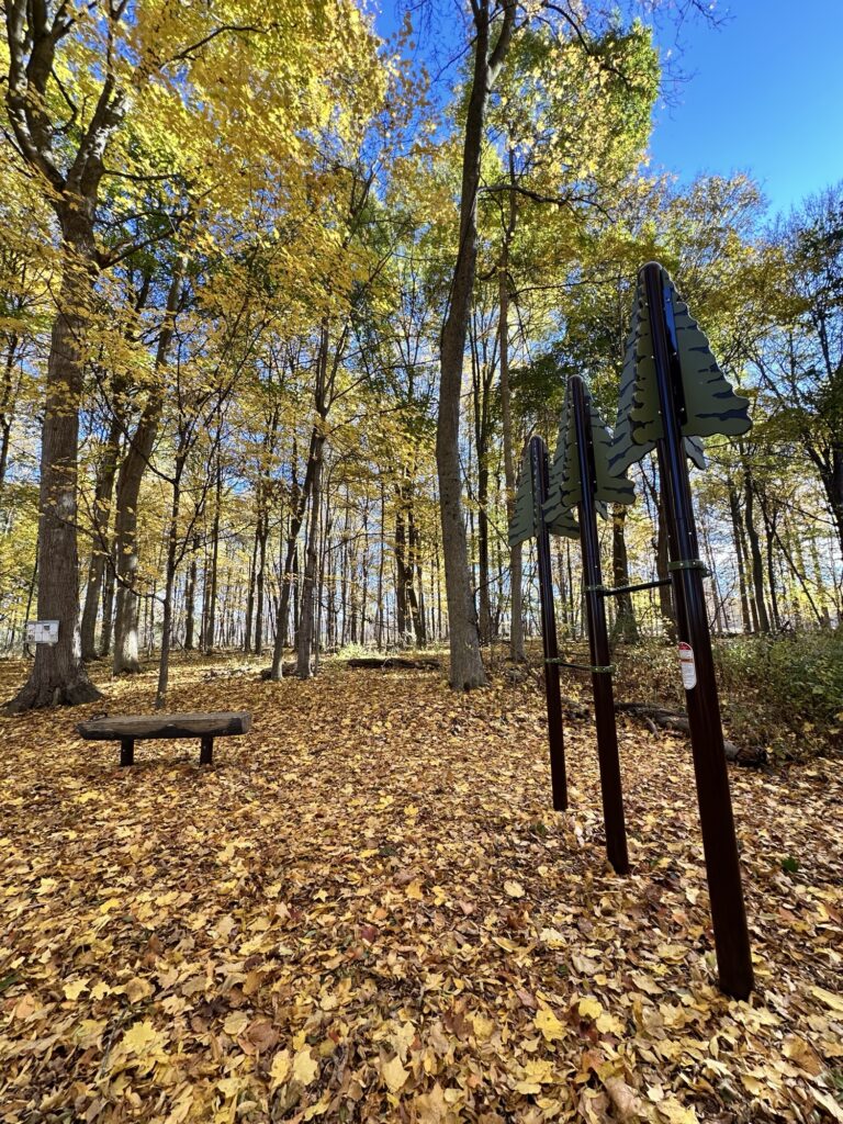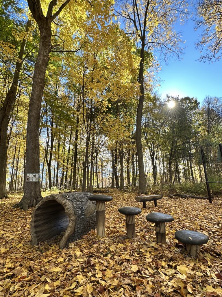 We love this short, flat, stroller friendly trail located along the Genesee River 20 minutes southwest of Rochester, NY. The trail is a 1/2 mile stone dust loop with nature-themed play/exercise stations, informational signs, and musical instruments along the trail. There is also an exercise area for adults tucked in the woods and a view of the Genesee River.
