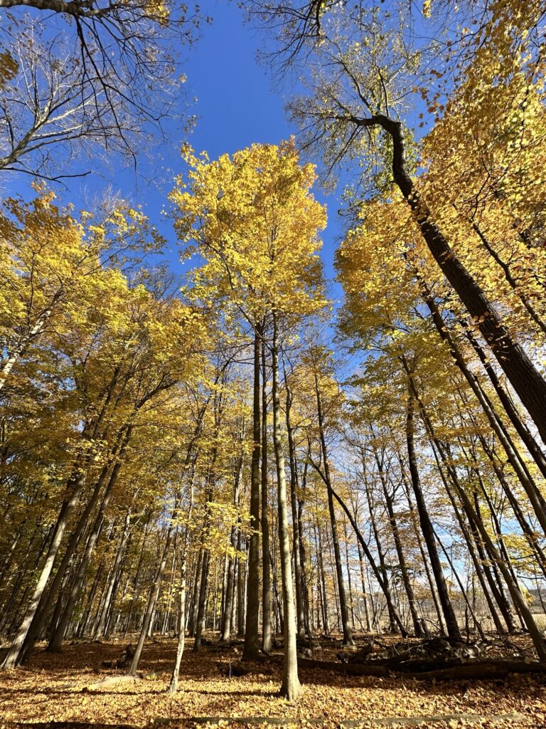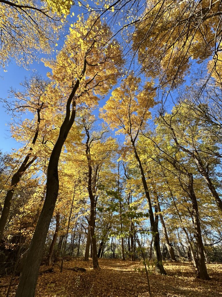In early May, the trail is surrounded by tons of bluebells. It is an absolutely breathtaking sight. There is poison ivy along the sides of the trail, but the path was wide enough to avoid it.