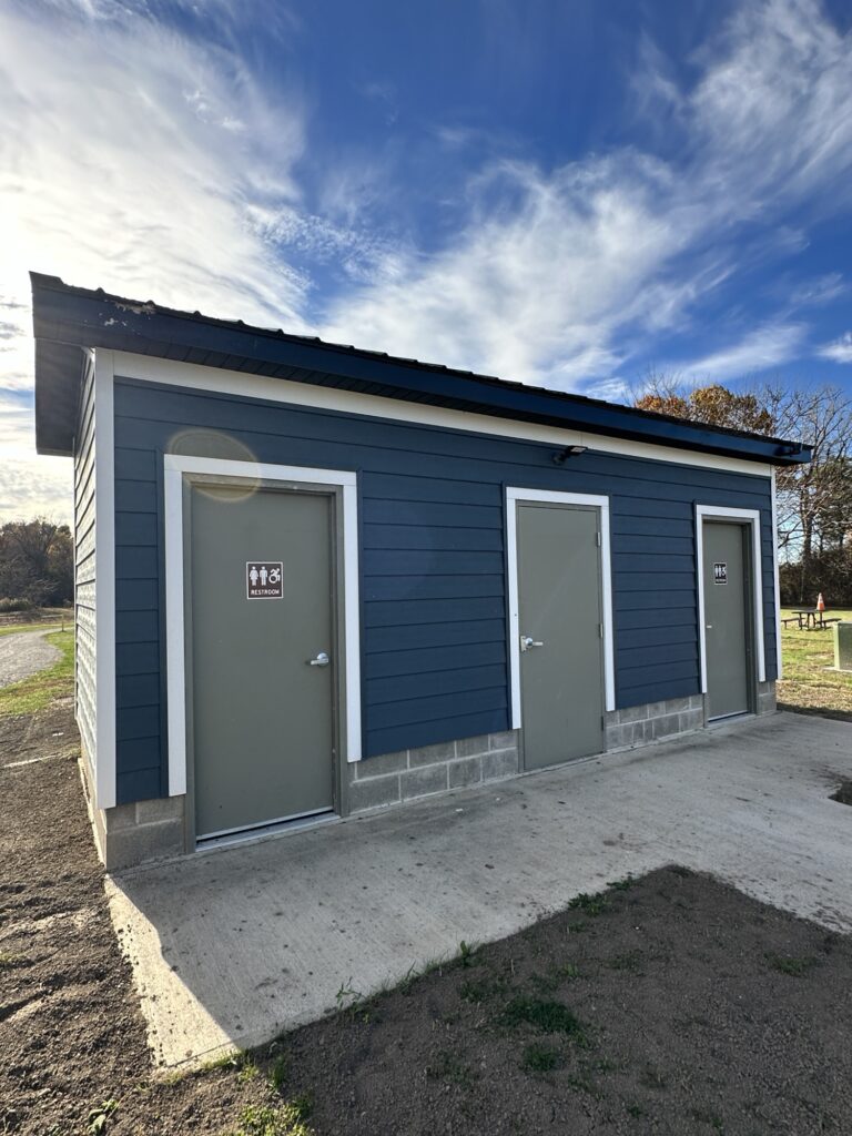 Leashed dogs are allowed. There are accessible restrooms near the parking lot.