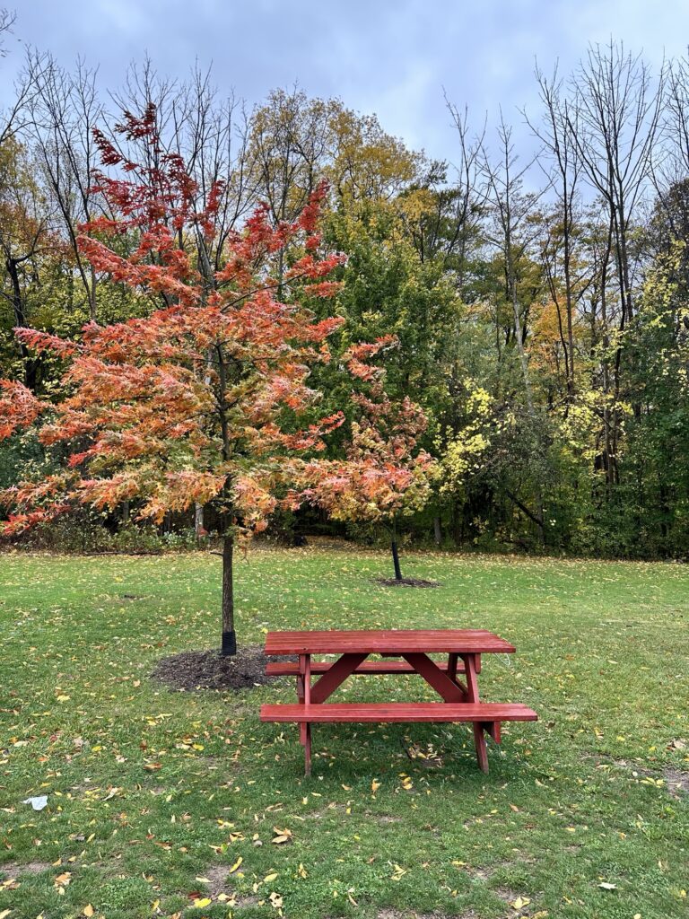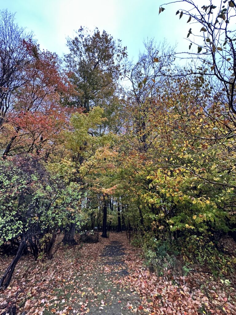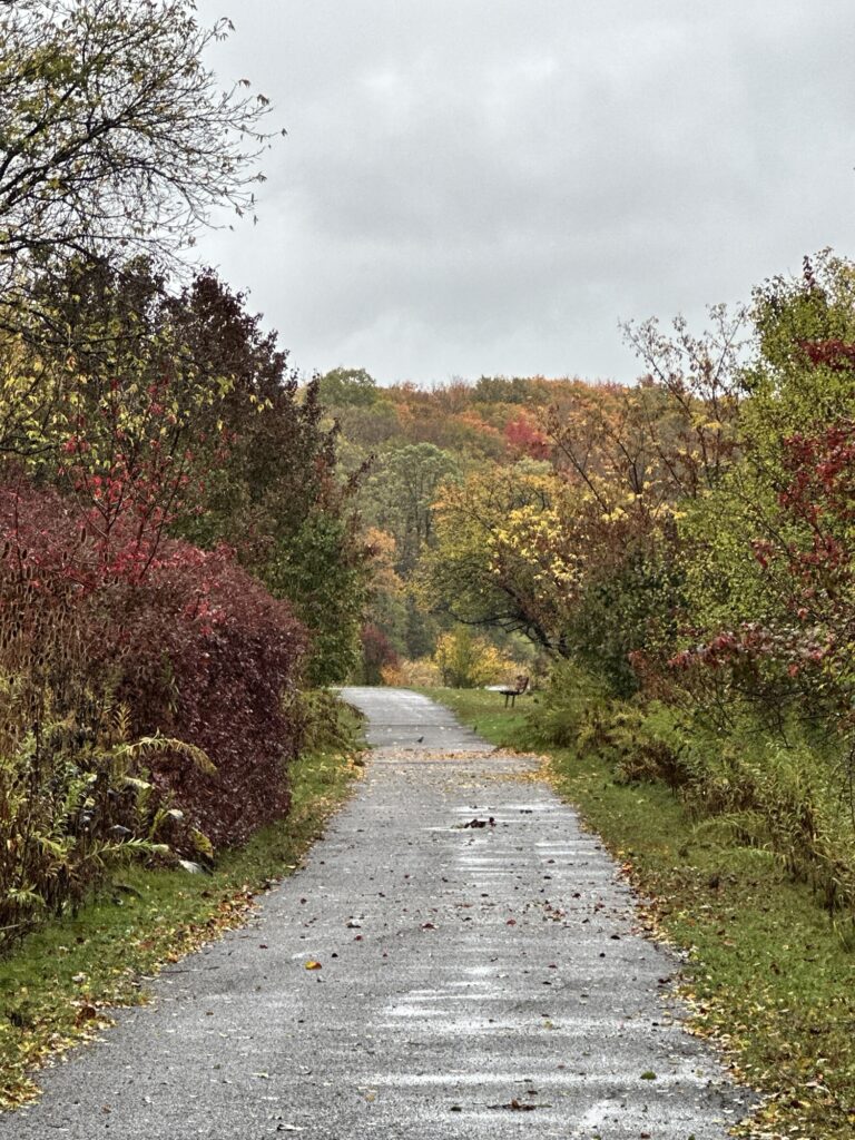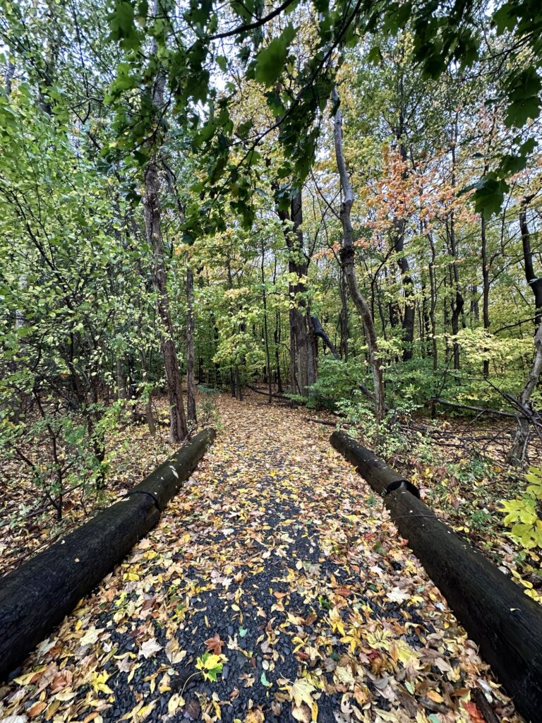 - There is a wooded nature path that starts next to the playground that leads to a network of short trails. This path is dirt and woodchip. This path is NOT stroller friendly.