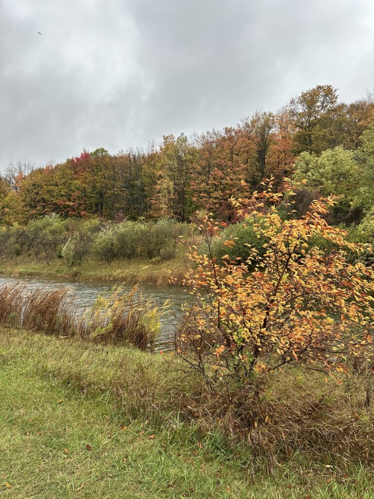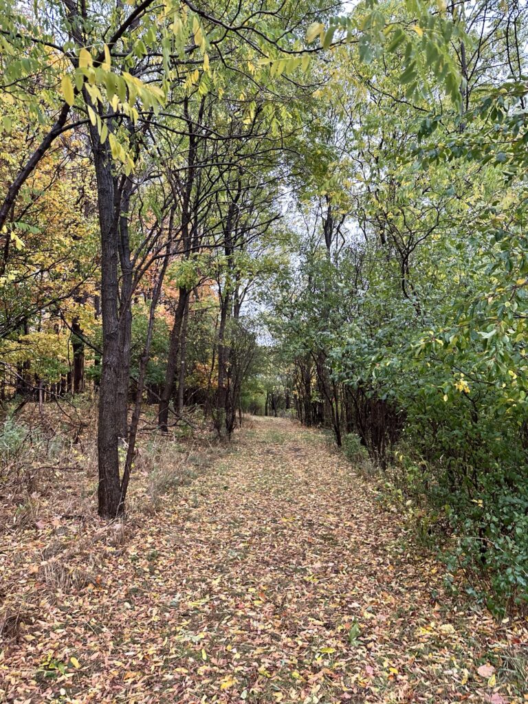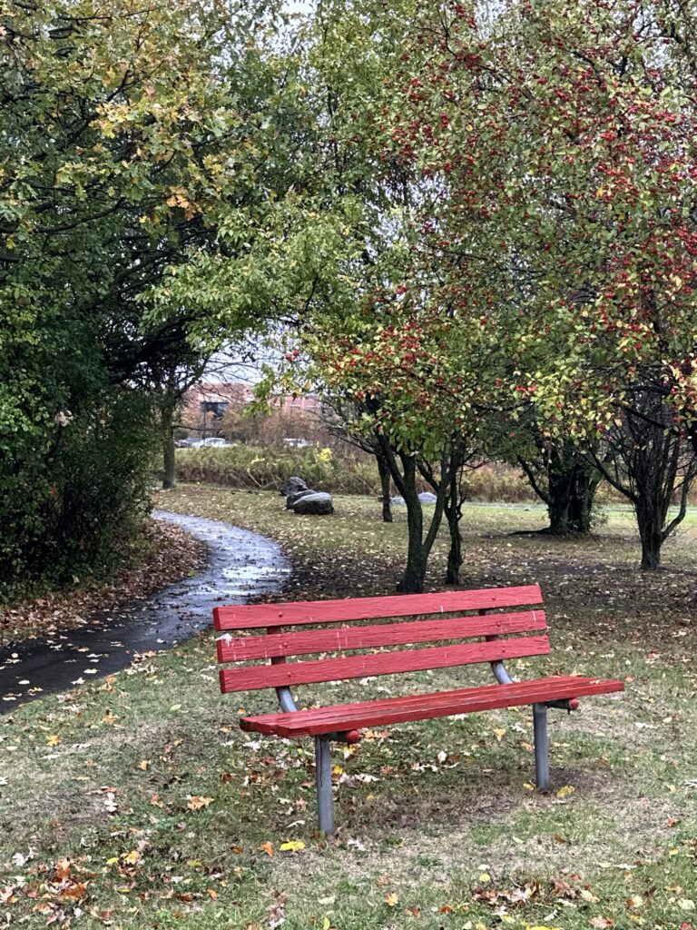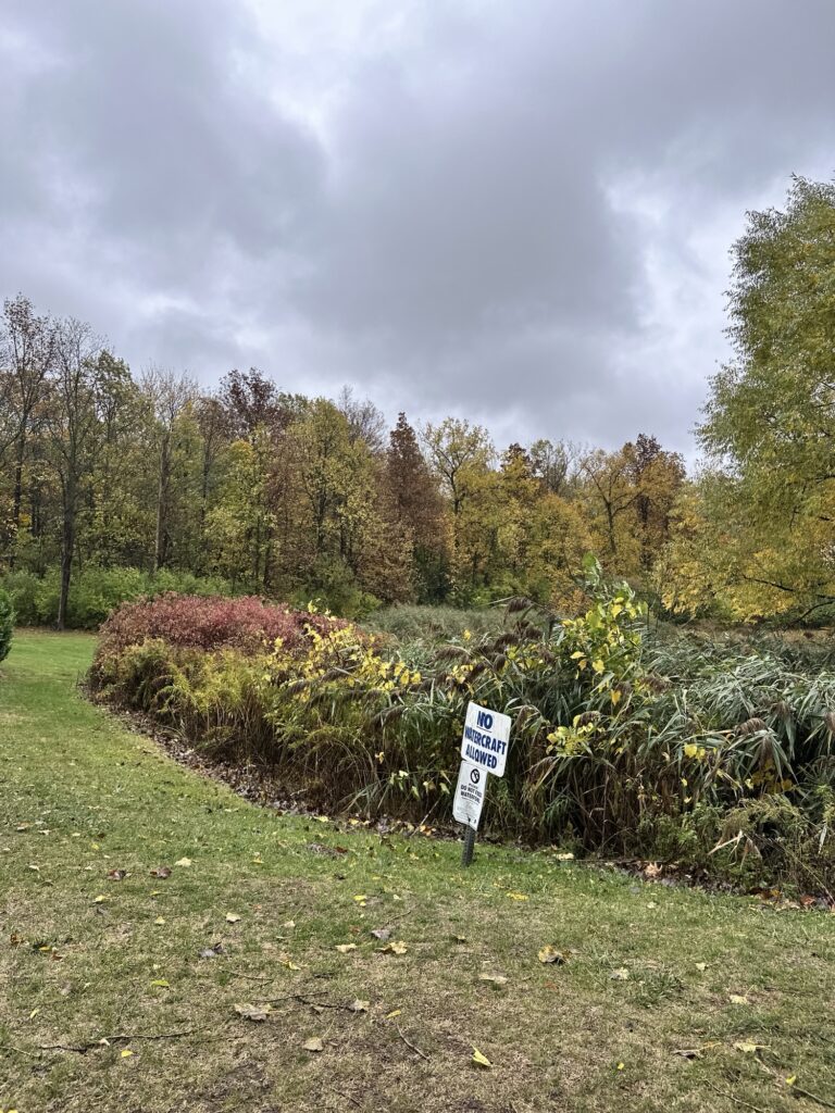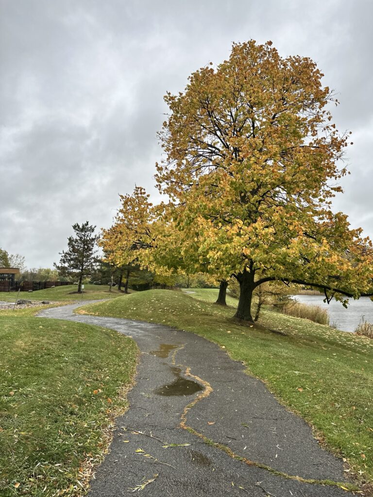 - To connect the paved path and the wooded path, there is a grass trail around the pond. This path is NOT stroller friendly.