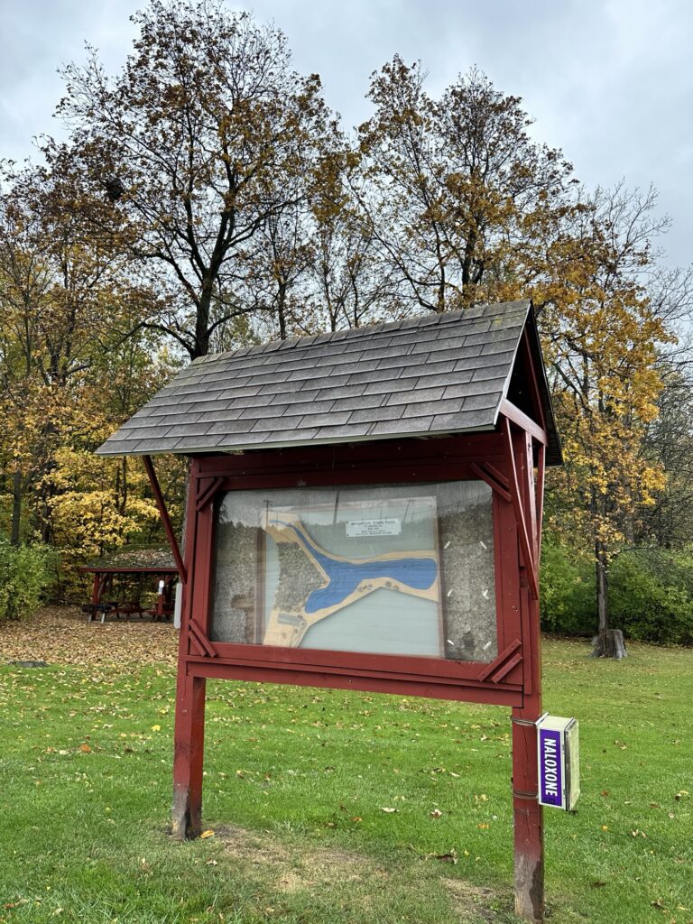 This lovely park is located 10 minutes south of Rochester, NY. There are two walking areas here in addition to baseball fields, pavilions, a lodge, restrooms, and a new playground. There are picnic tables and benches as well.