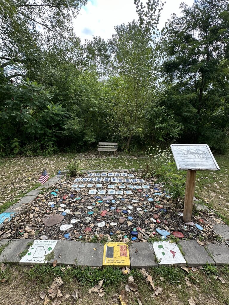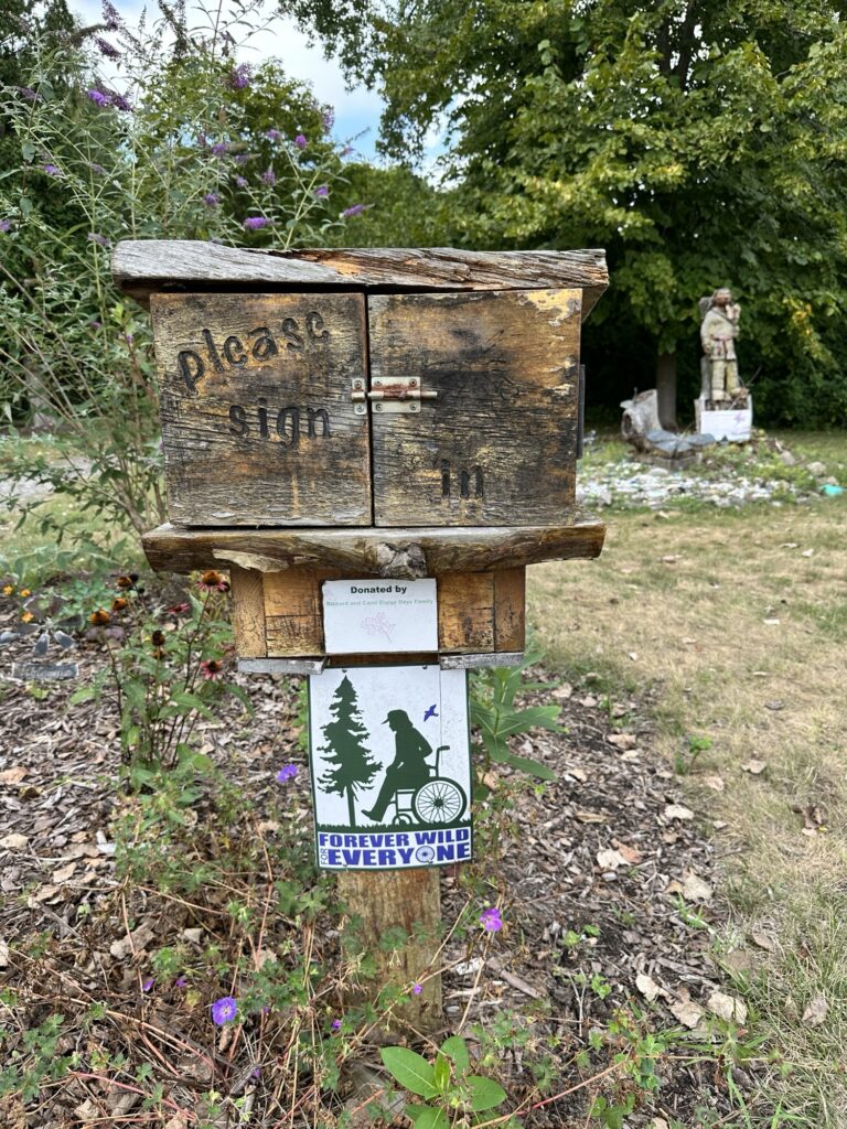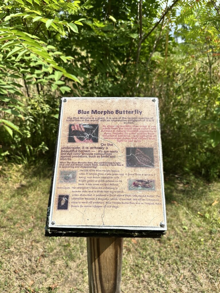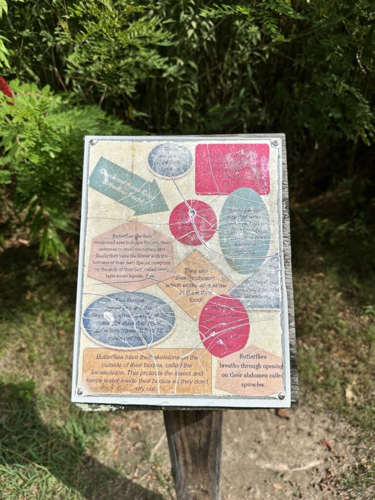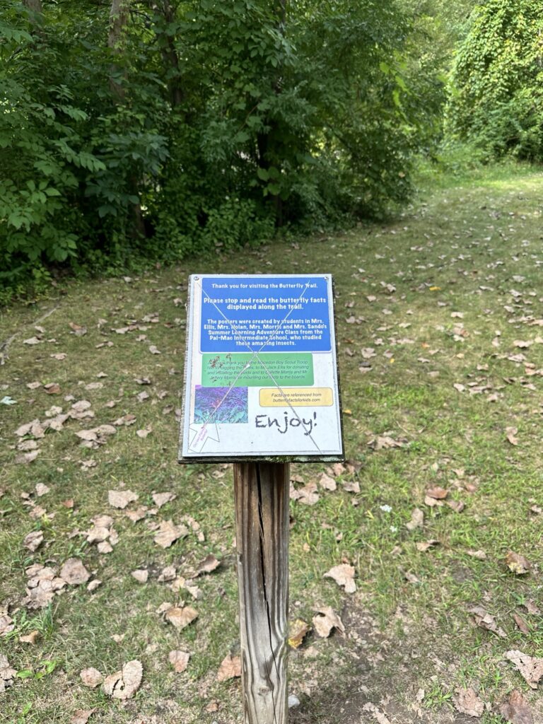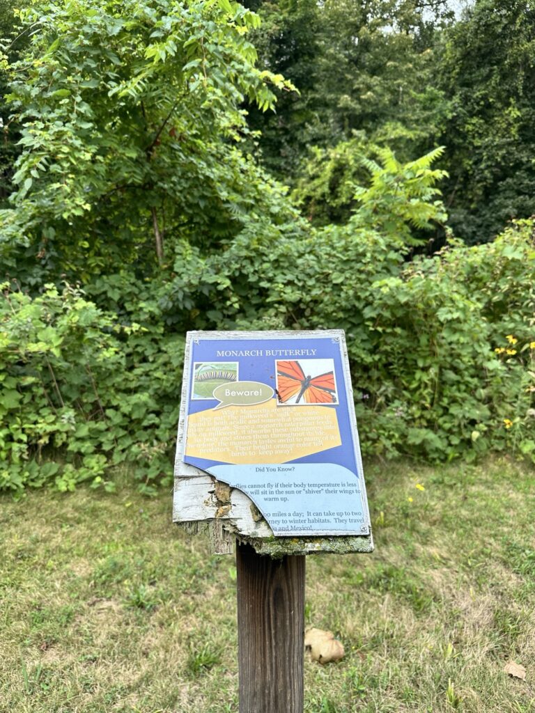 This unique trail located 25 minutes southeast of Rochester is considered a “Forever Wild for Everyone Trail”. Along this accessible, stone dust trail there are numerous things to look at including informational signs about birds and butterflies, gardens, fairy houses, benches, painted rocks, and some old relics and info about the history of the Erie Canal. There is also a short storybook walk. The entire trail including the loop and going out to the point is about a half mile. In the summer, there are numerous flowers and we saw 6 species of butterfly during our visit! A neat feature about this park is that you can see all three versions of the Erie Canal side by side: the original canal (called Clinton’s Ditch), the enlarged Erie Canal, and the present-day Erie Canal. Leashed dogs are allowed. There was a porta potty when we visited, as well as a simple swing set, balance beam, and spinning seat. You can also walk over and see Lock 30 with some informational signs.