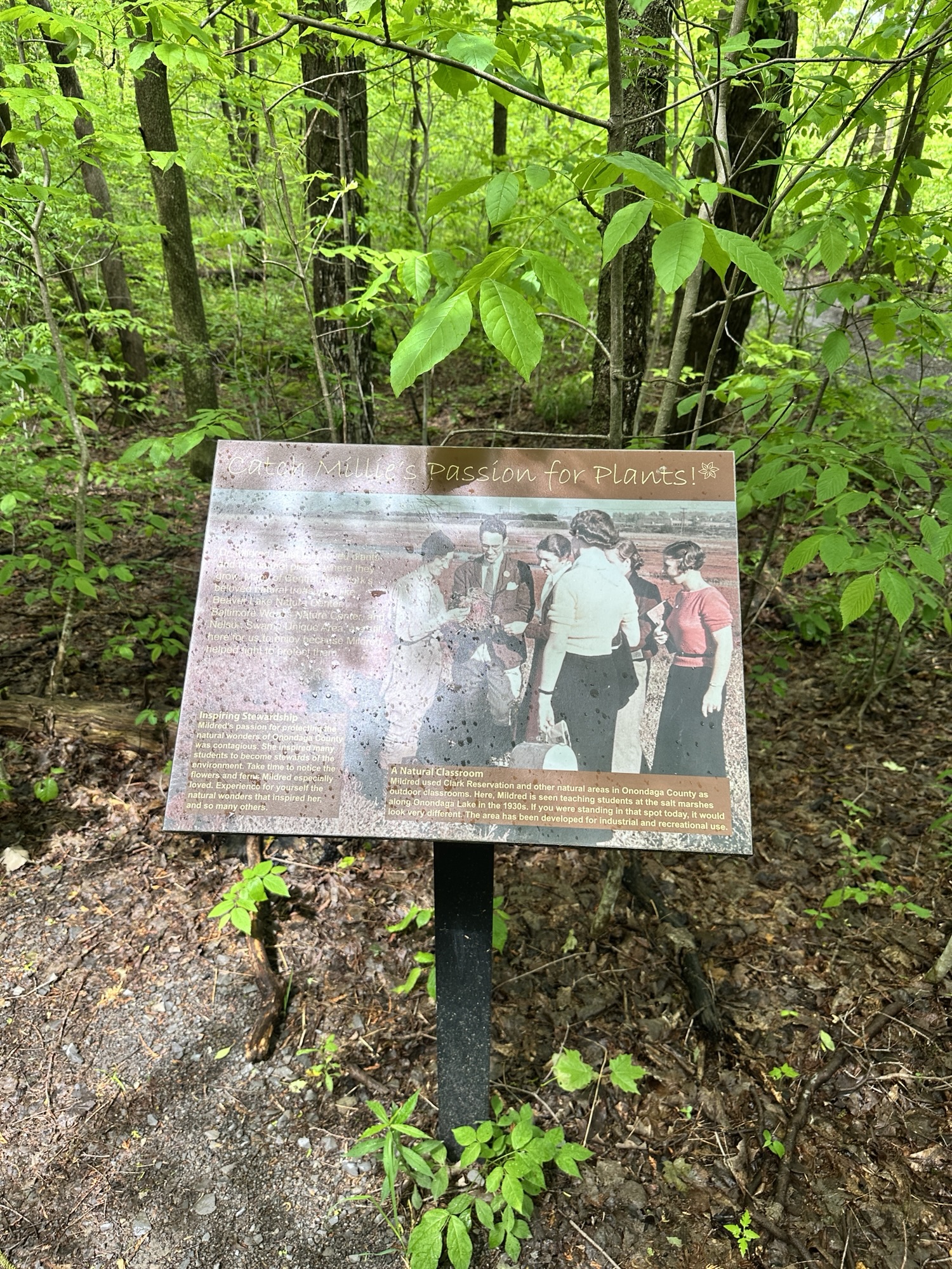 This state park is located 1.5 hours east of Rochester, NY near Syracuse. This park has restrooms, an interpretive center, gardens, a nature theme playground, and nature trails.