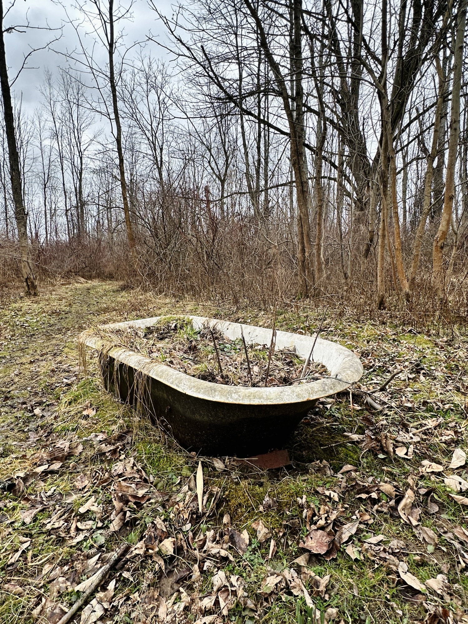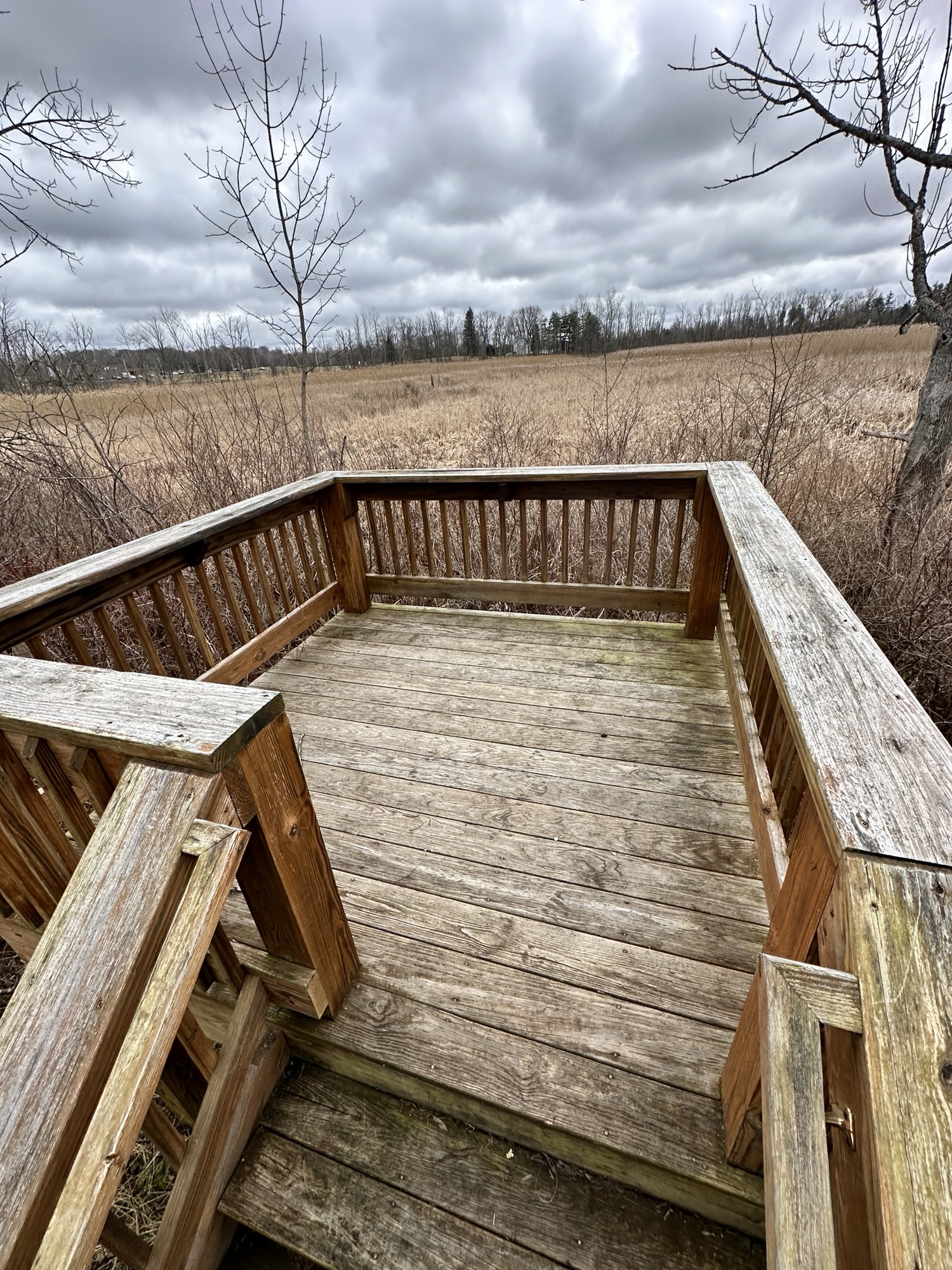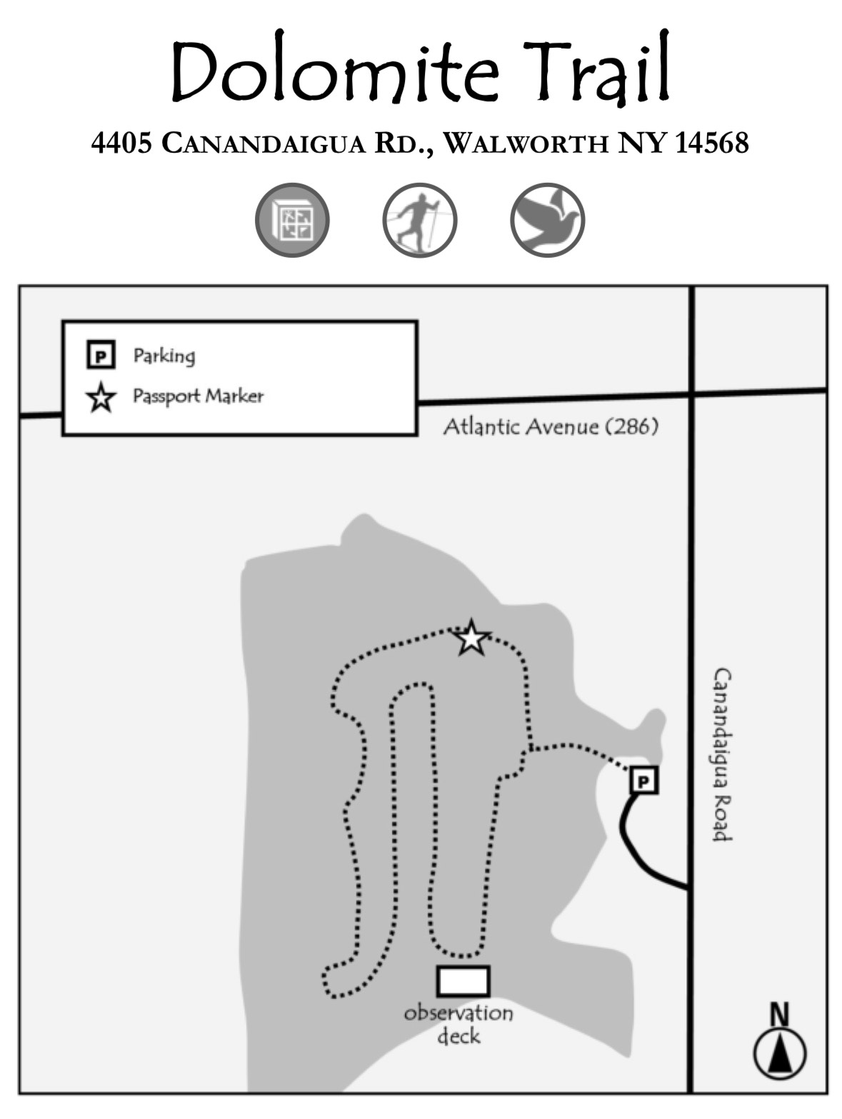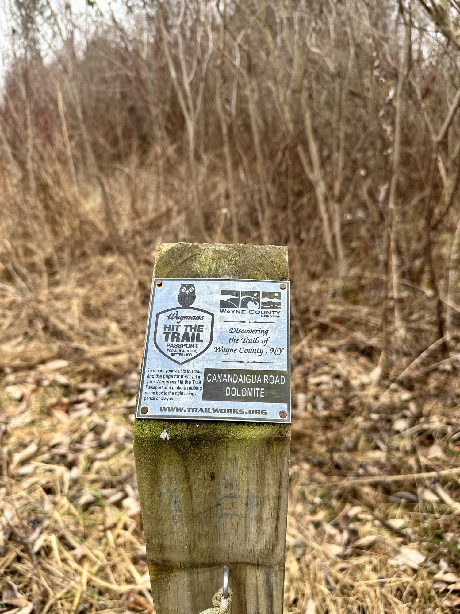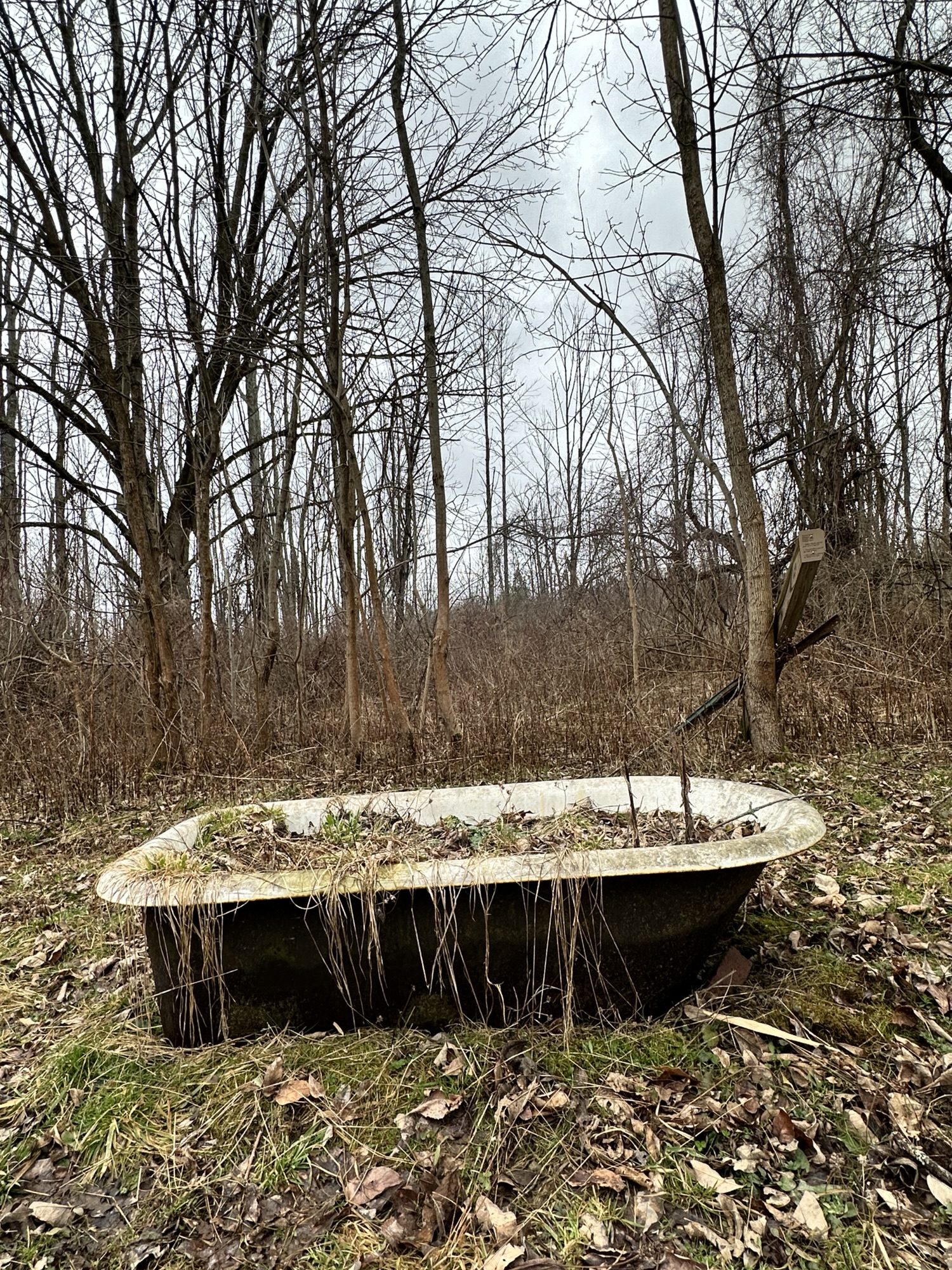 This trail is located 25 minutes east of Rochester, NY. This one mile loop trail goes through brush, pine trees, and wooded areas to an observation deck over a marshy area. There is a random bathtub along the trail, a few benches, and some tree identification signs. The trail is dirt and would probably not be stroller friendly.