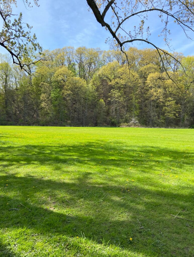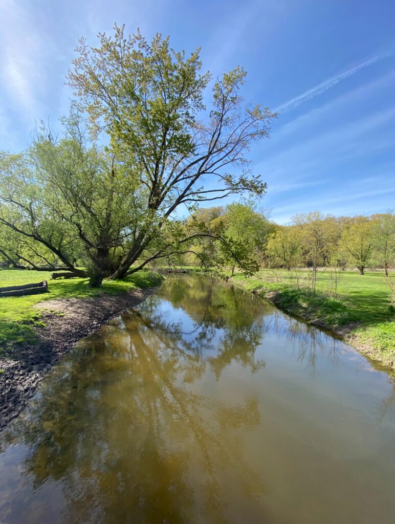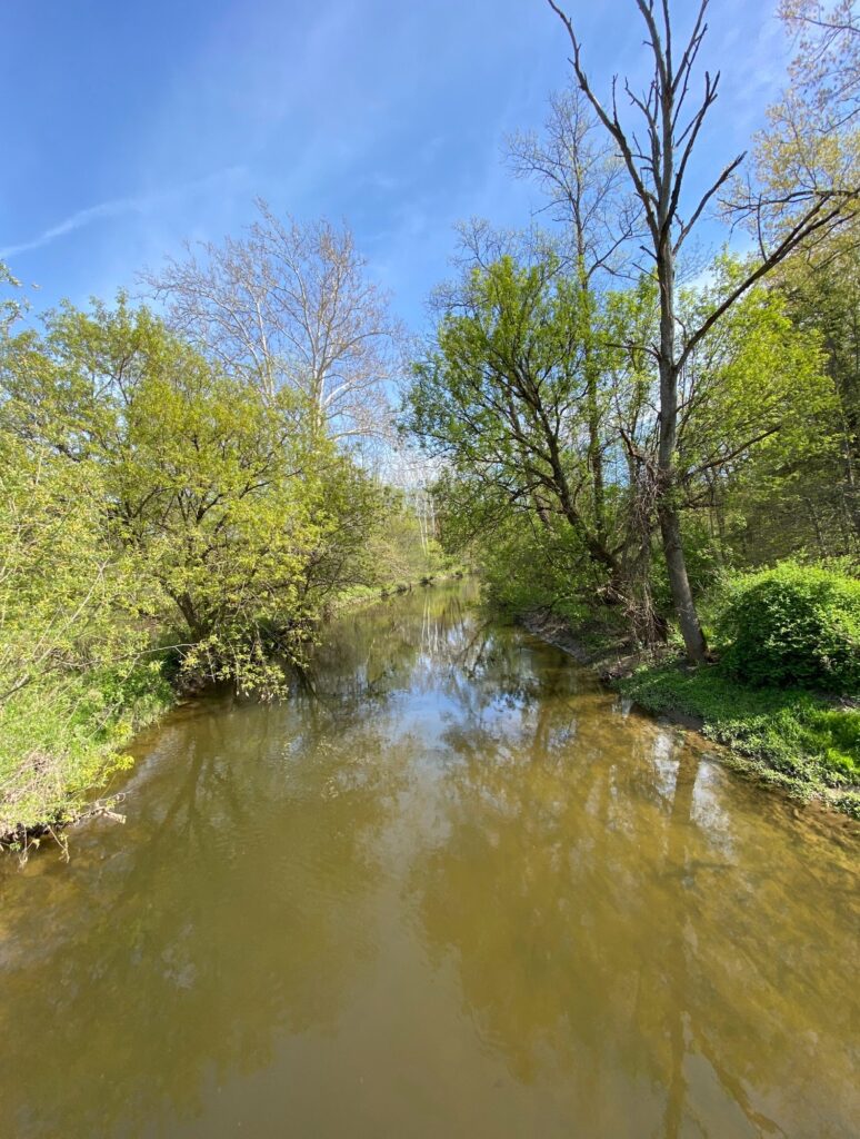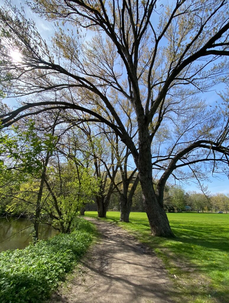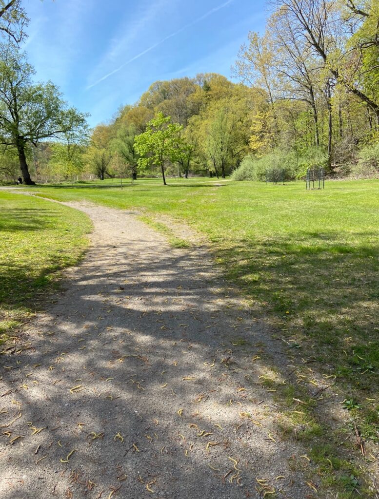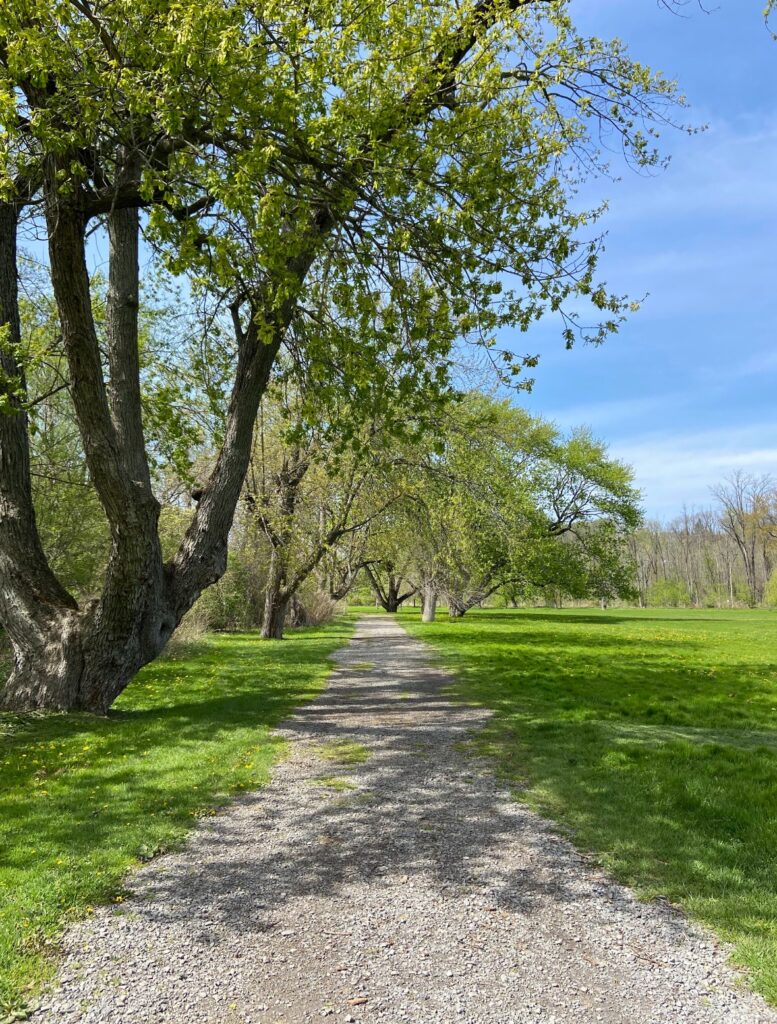 Ellison Park is located less than 10 minutes east of Rochester, NY. The Indian Landing Trail is a 1.5 mile loop trail. The path is mostly flat and is somewhat stroller friendly, though the gravel is bumpy in some places and there can be large mud puddles after a rain. The trail passes several bridges with beautiful creek views. There are also tree lined paths, a wetland area, nice views, pavilions, and a playground. Leashed dogs are allowed.