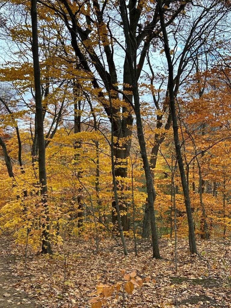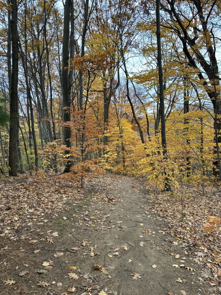 This beautiful nature preserve is located 15 minutes east of Rochester, NY near the shore of Lake Ontario. The Big Woods Trail is a 0.7-mile round trip out and back trail that starts from two locations on the Big Field Trail (about 0.2 and 0.5 miles going counterclockwise from the parking area). This trail goes through a beautiful old growth forest. The path is narrow and dirt, with some hills, and would not be considered stroller friendly. Leashed dogs are allowed.