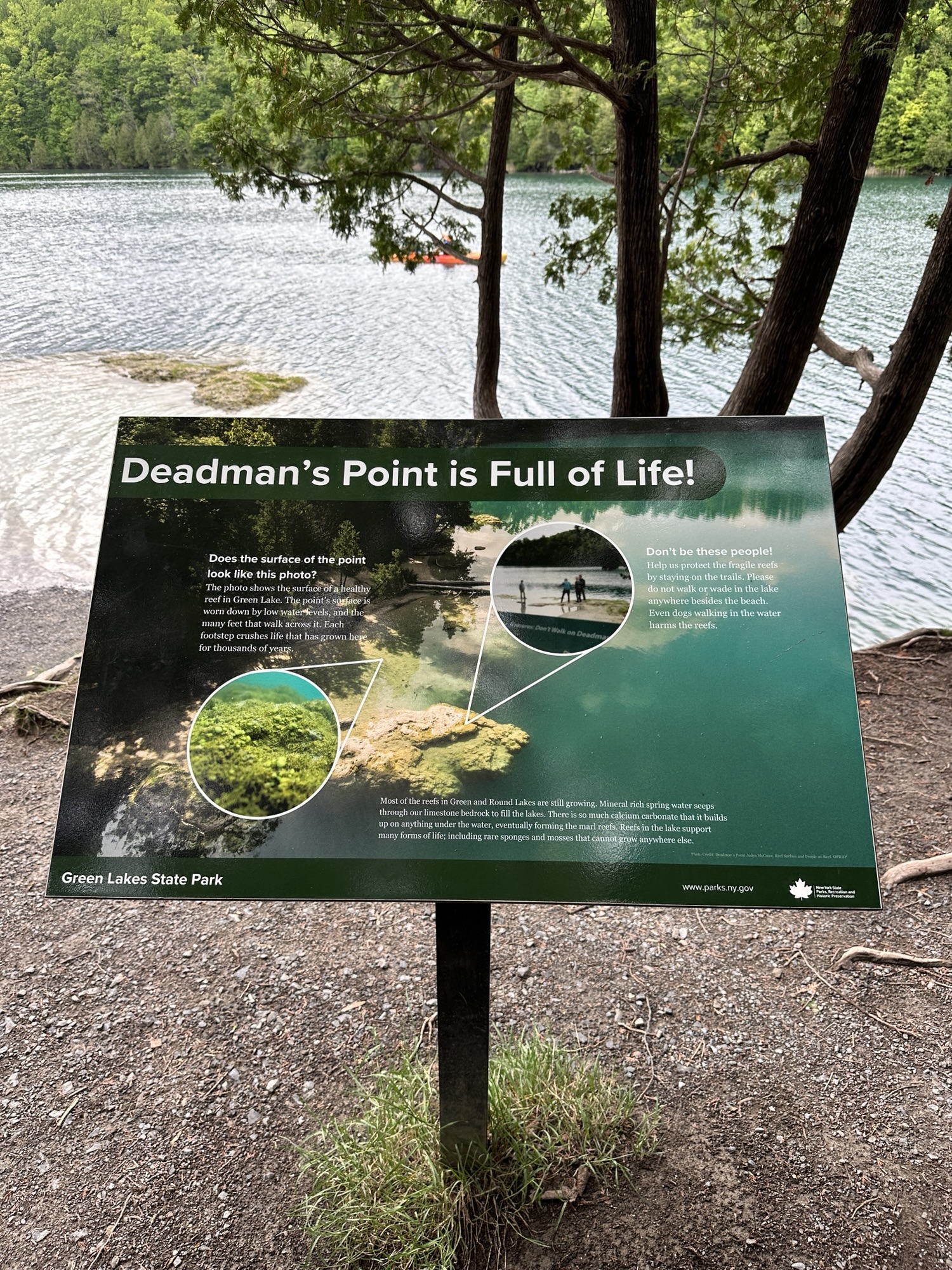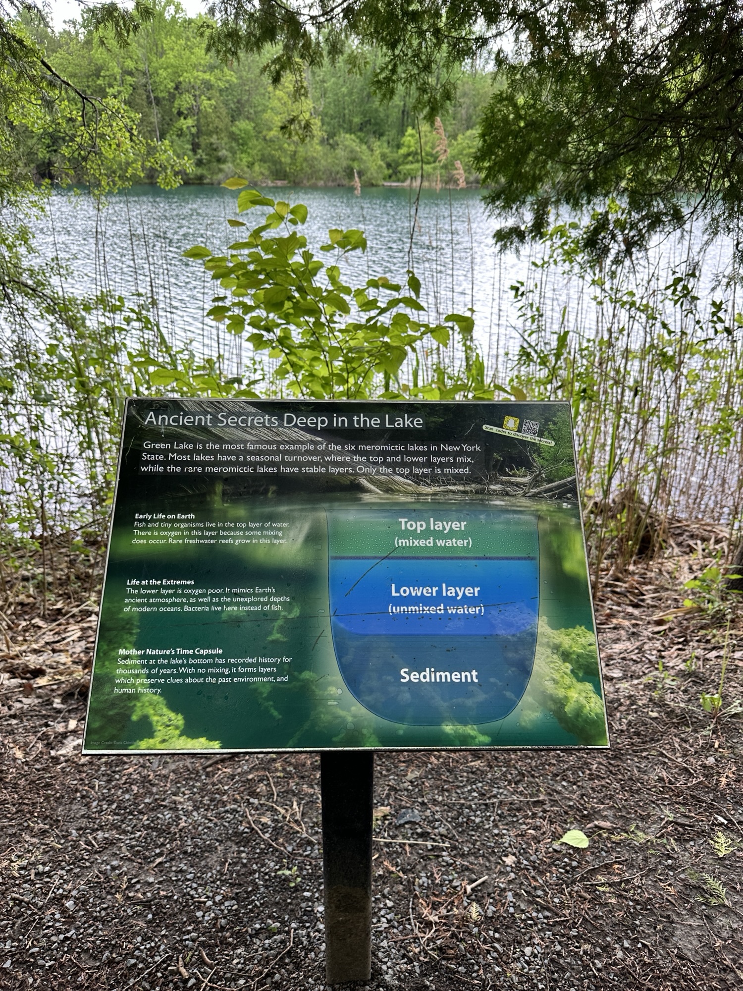 - According to the official website: “Green Lakes State Park’s outstanding features are its two glacial lakes surrounded by upland forest. Both Round and Green Lakes are meromictic lakes, which means that there is no fall and spring mixing of surface and bottom waters. Such lakes have a high potential for evidence of ancient plant and animal life.”
