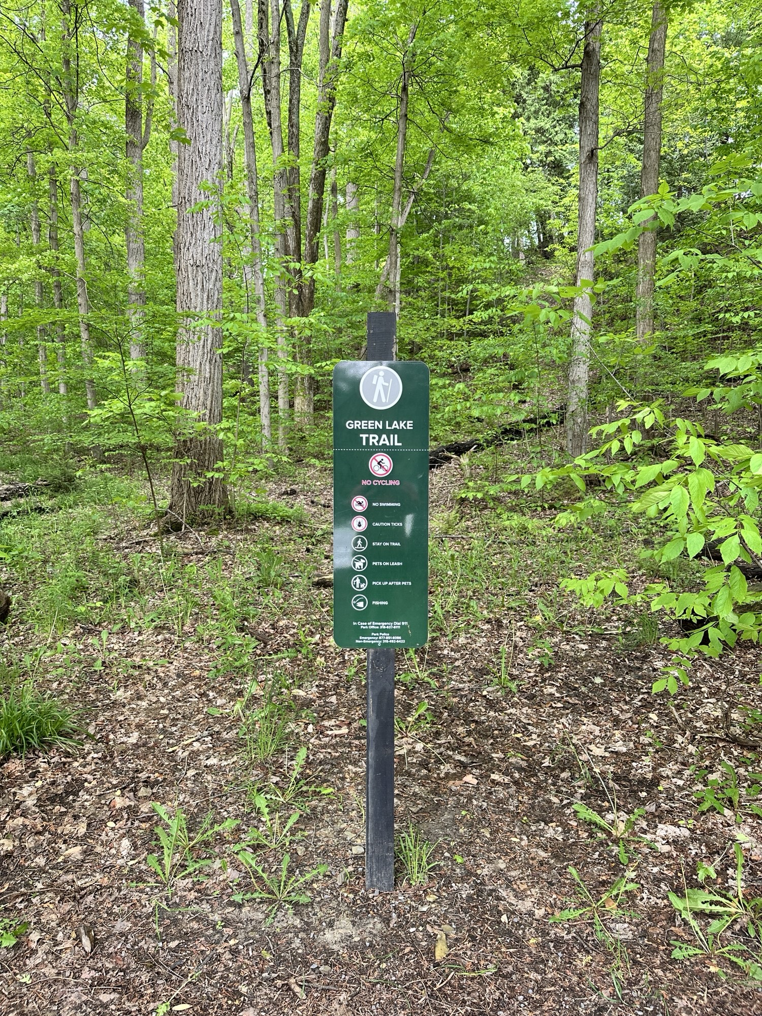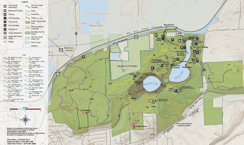 This beautiful state park is located 1.5 hours east of Rochester, NY just south of Syracuse. The Green Lake Trail is a 2 mile loop trail that circles Green Lake with beautiful views and some informational signs. The path is stone dust and is stroller friendly. It can be combined with the Round Lake Trail to make a 3 mile loop around both lakes. Bikes are NOT allowed around the Lake Trail.