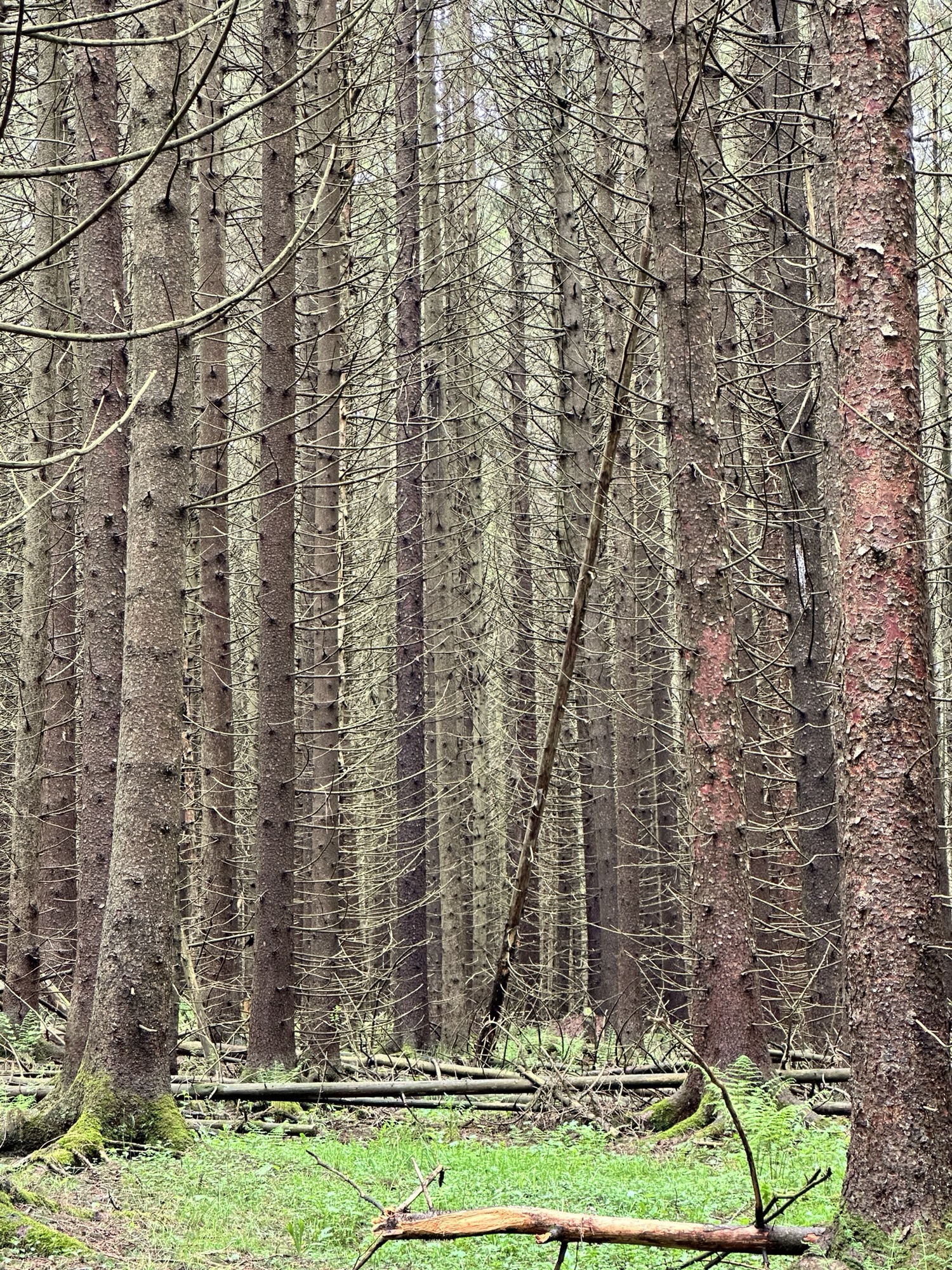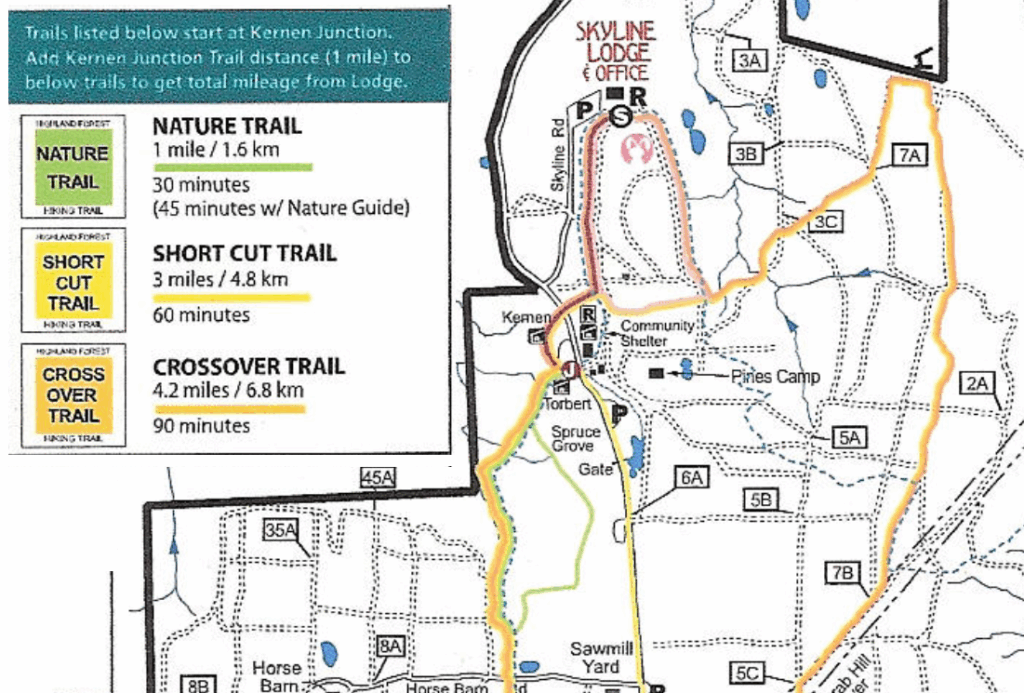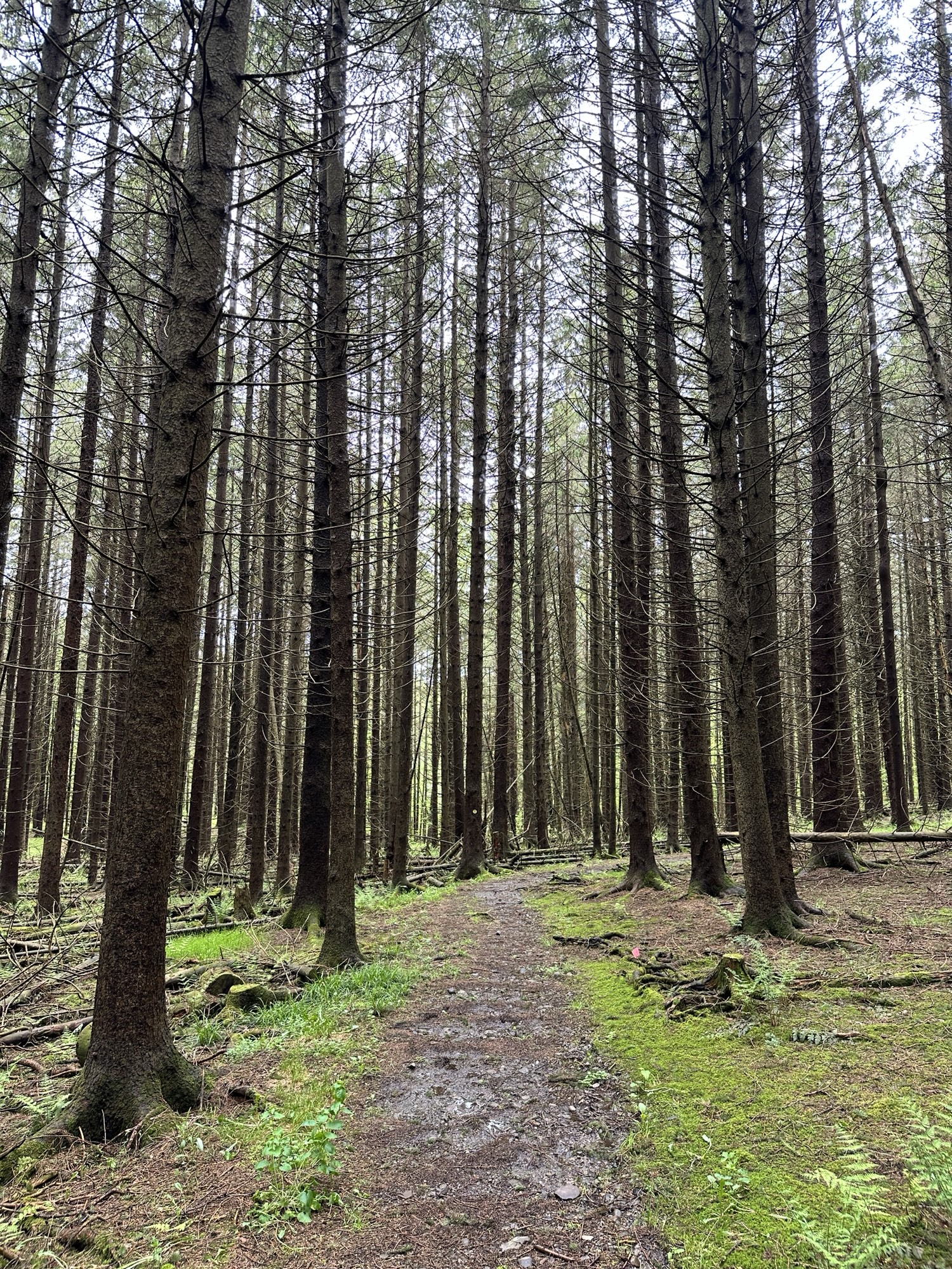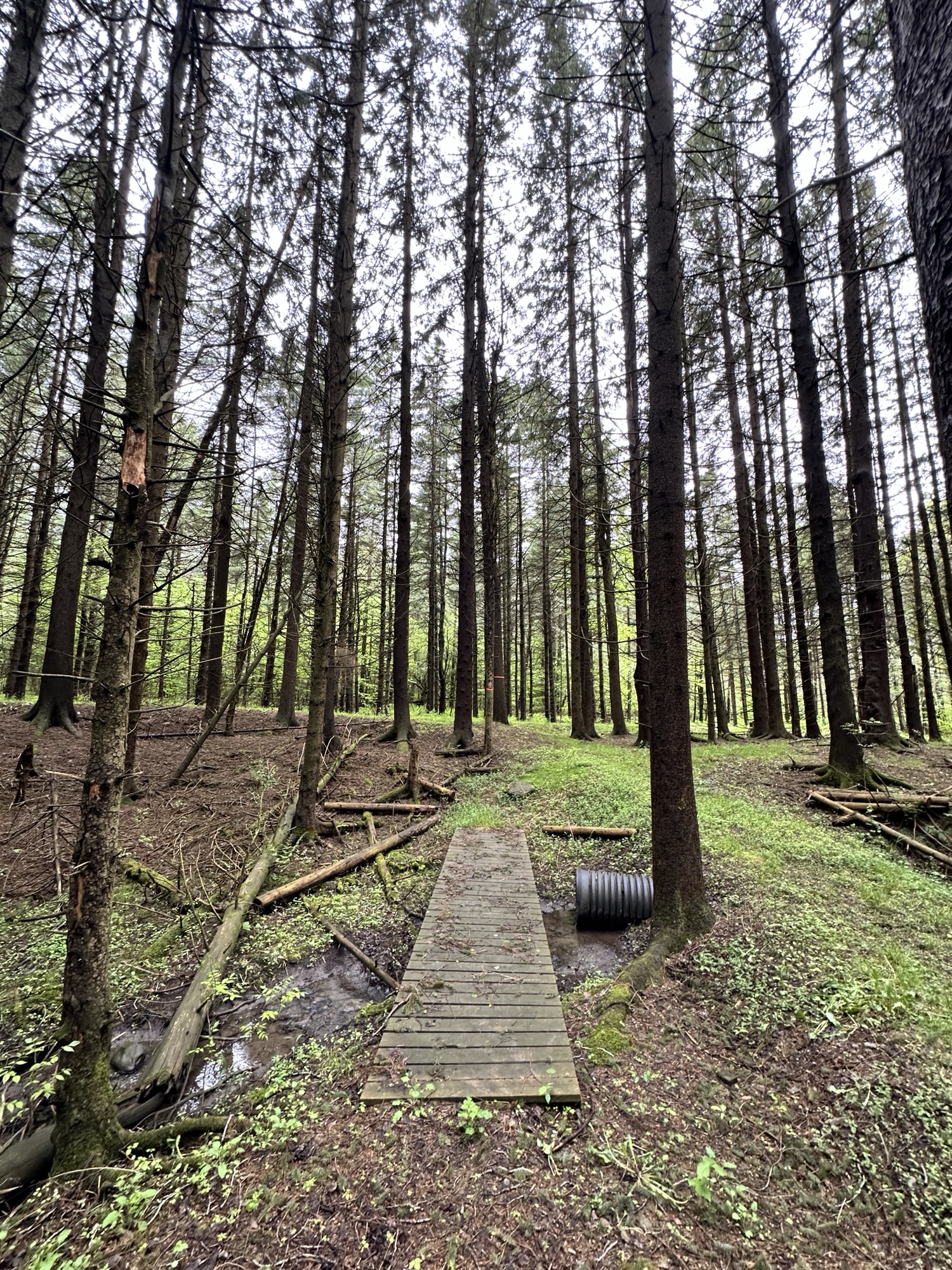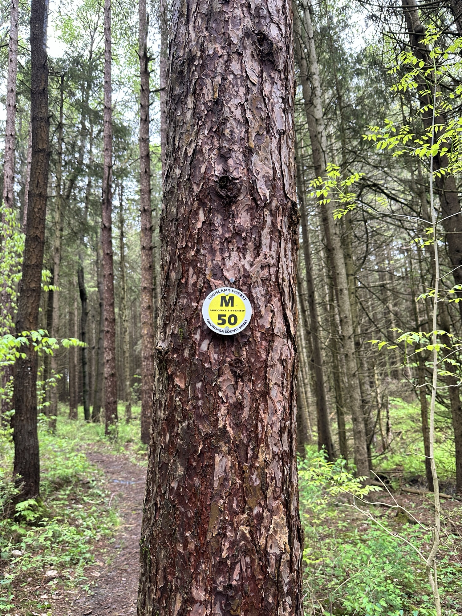 This beautiful park is located south of Syracuse, NY and 2 hours east of Rochester, NY. Highland Forest County Park contains over 20 miles of year-round trails and is known as the “Adirondacks of Central New York.” Near the Skyline Lodge is the start of several types of trails: hiking/snowshoeing trails, skiing/mountain biking trails, and skate skiing trails. We hiked a roughly 2-mile loop that included the M trail, K trail, and T trail (labeled as the green “Nature Trail” on this map). This loop included part of the North Country Trail and brought us past a lean to and to a magical evergreen forest with beautiful wildflowers along the way. It was not stroller friendly.