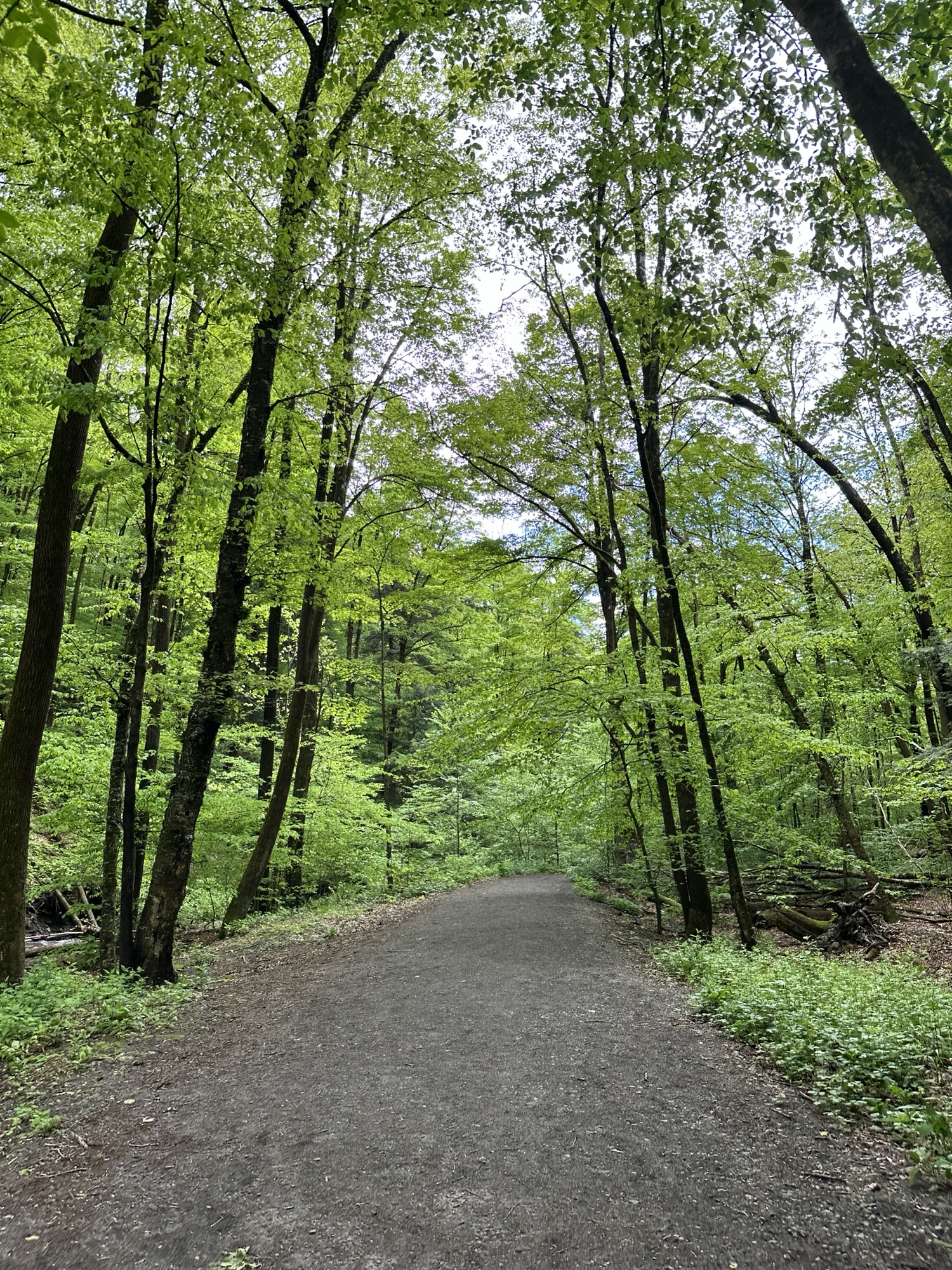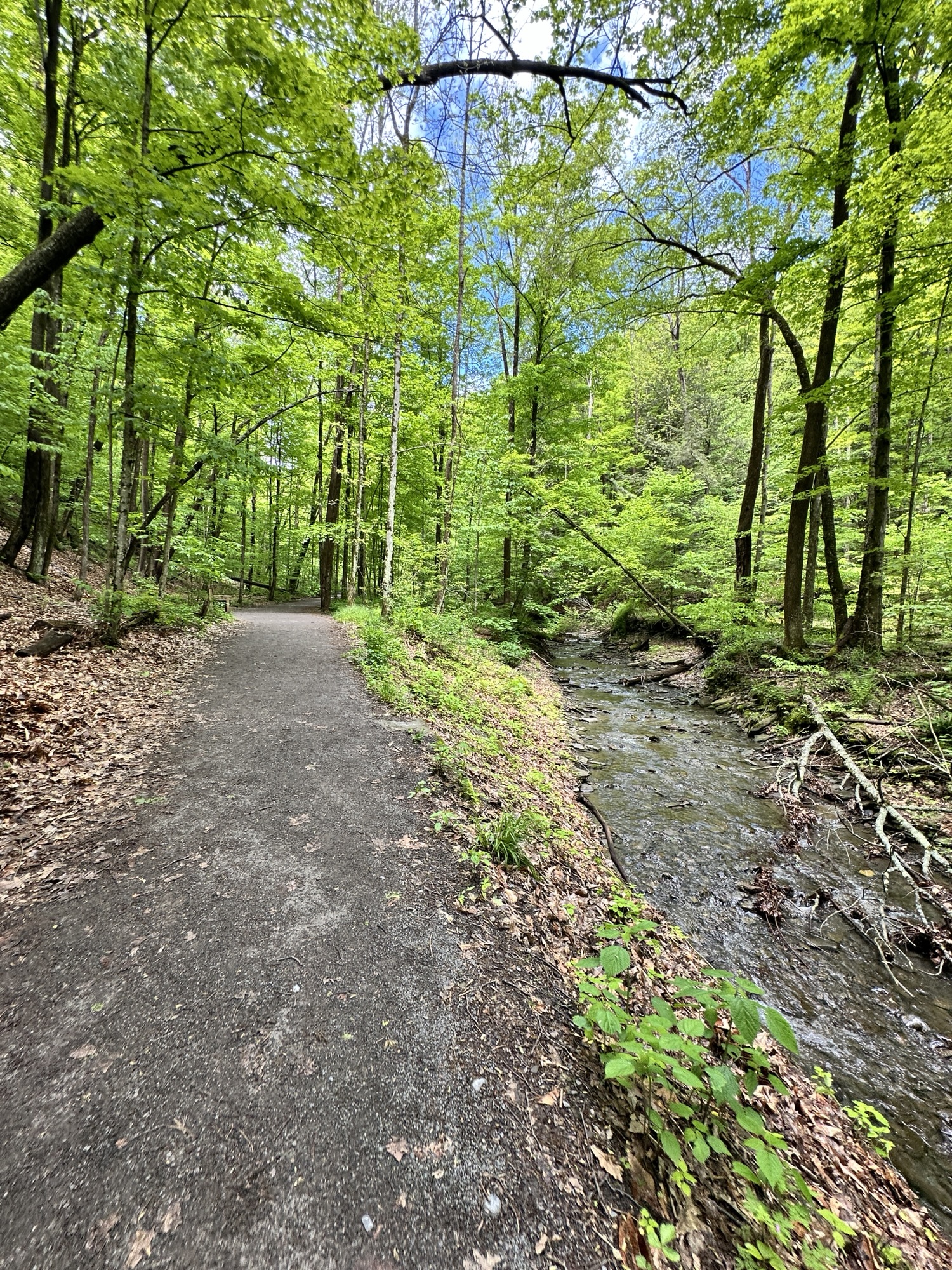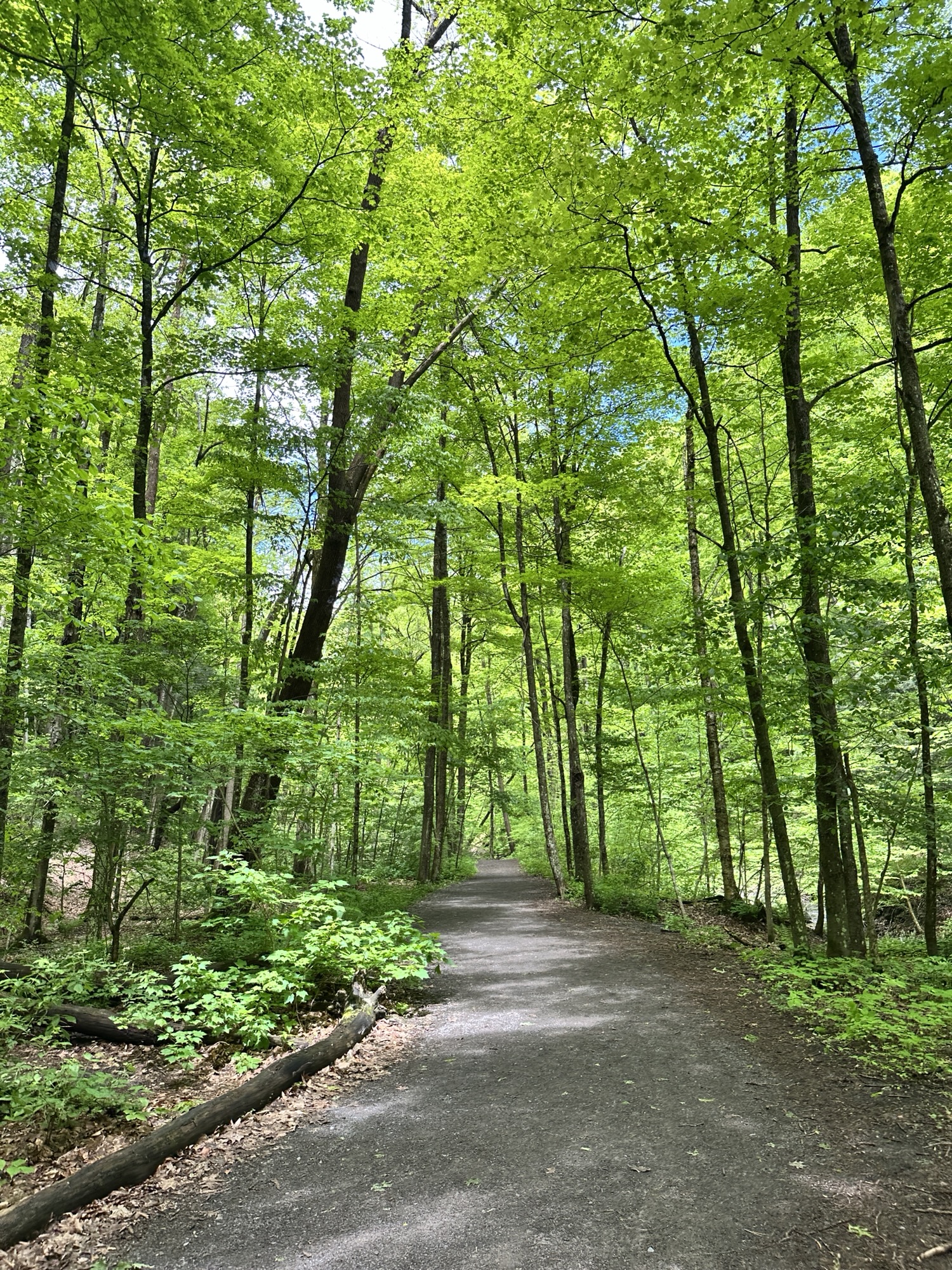 This trail is located south of Syracuse – just about 2 hour east of Rochester, NY. This nature area is located in the middle of a valley that was dug out by glacial movement around ten thousand years ago. We hiked the accessible part of the trail (0.25 miles each way) to the beautiful view of the 50 foot waterfall “hanging” over a natural rock amphitheater. We then continued over some rocky terrain (NOT accessible or stroller friendly) and through the creek to the base of the falls where we climbed the stone steps to walk behind the falls. Walking behind the waterfall was truly magical. This trail can be connected to the Boardwalk Trail via the Skyline Trail.