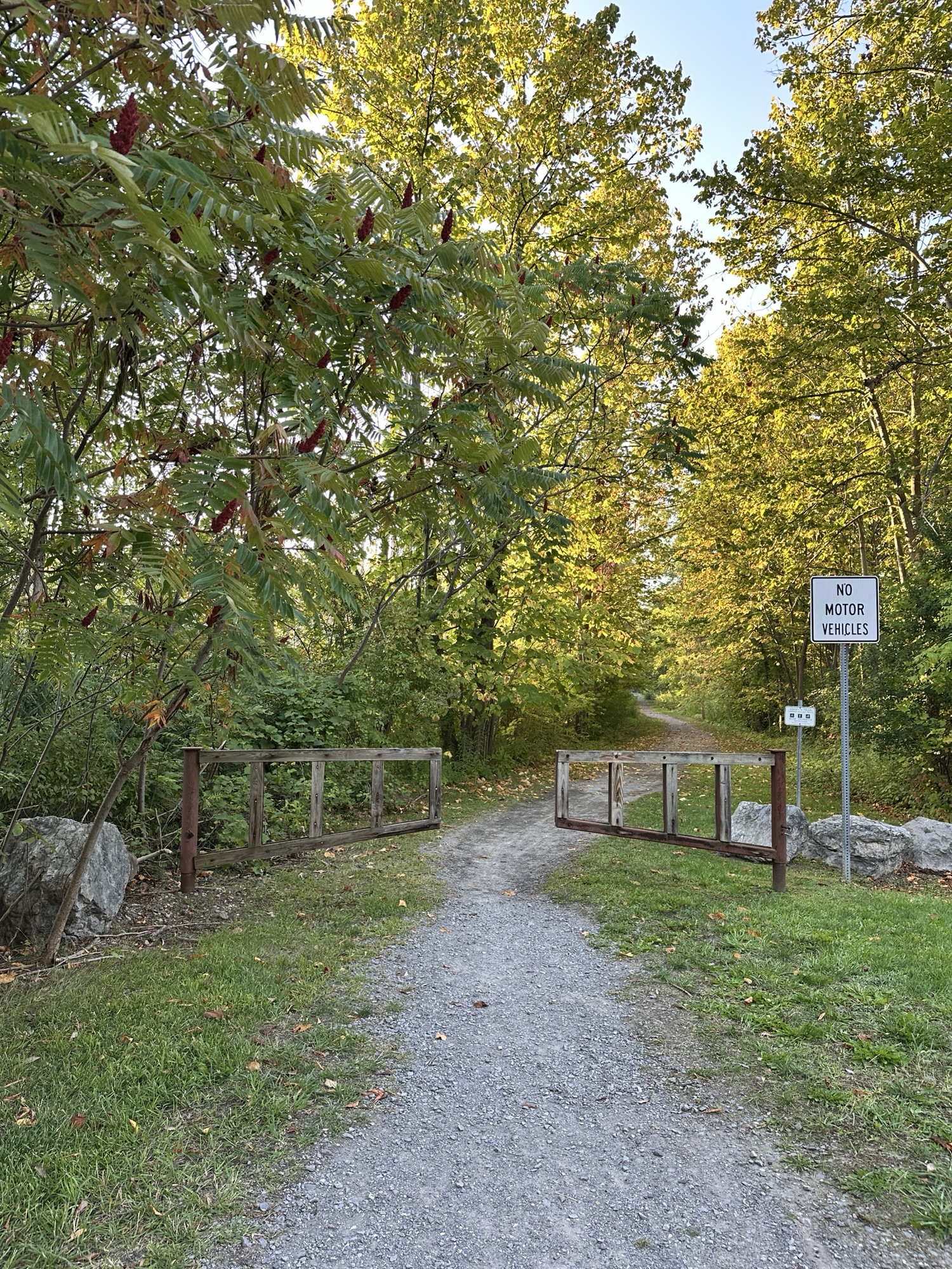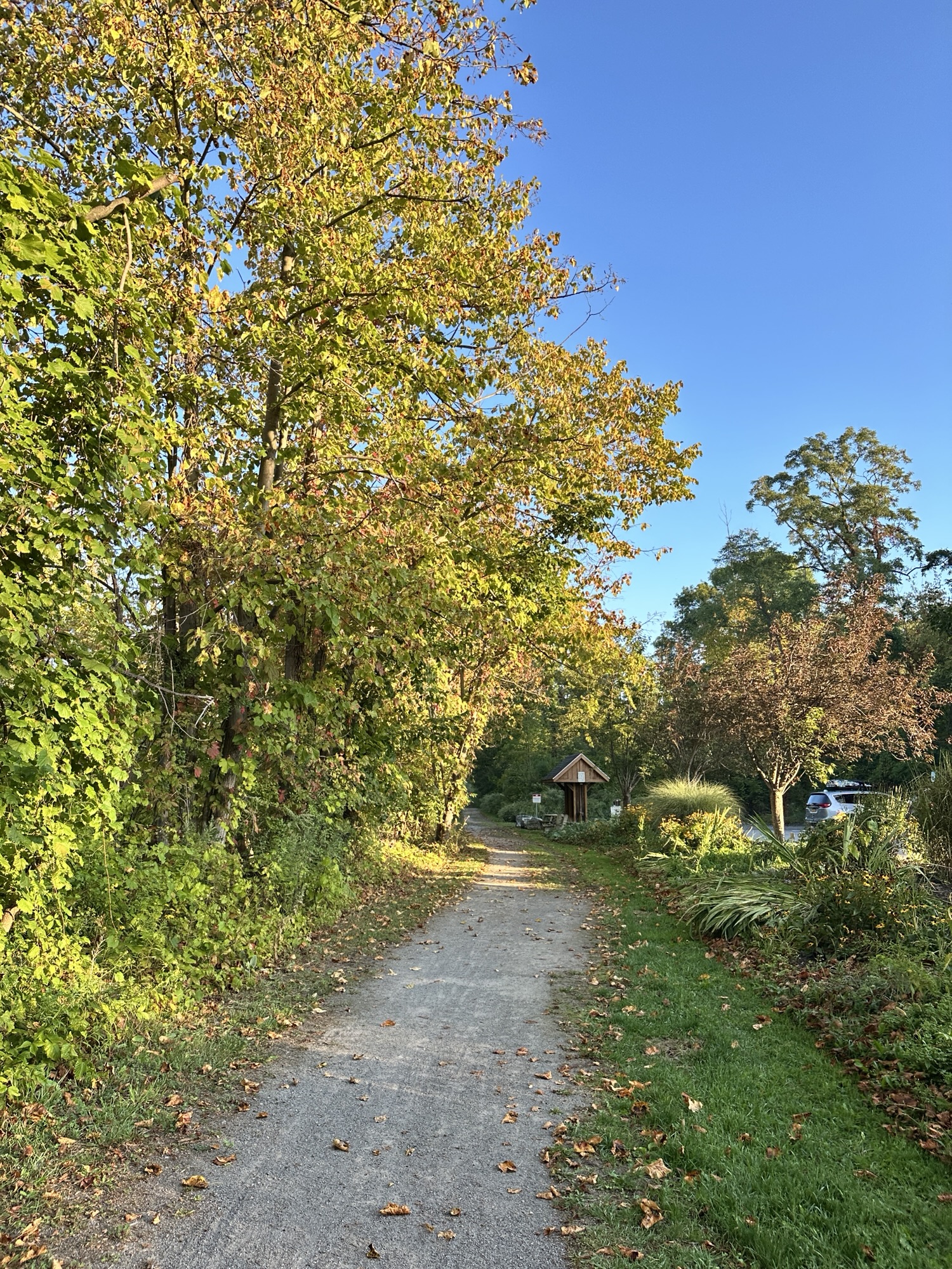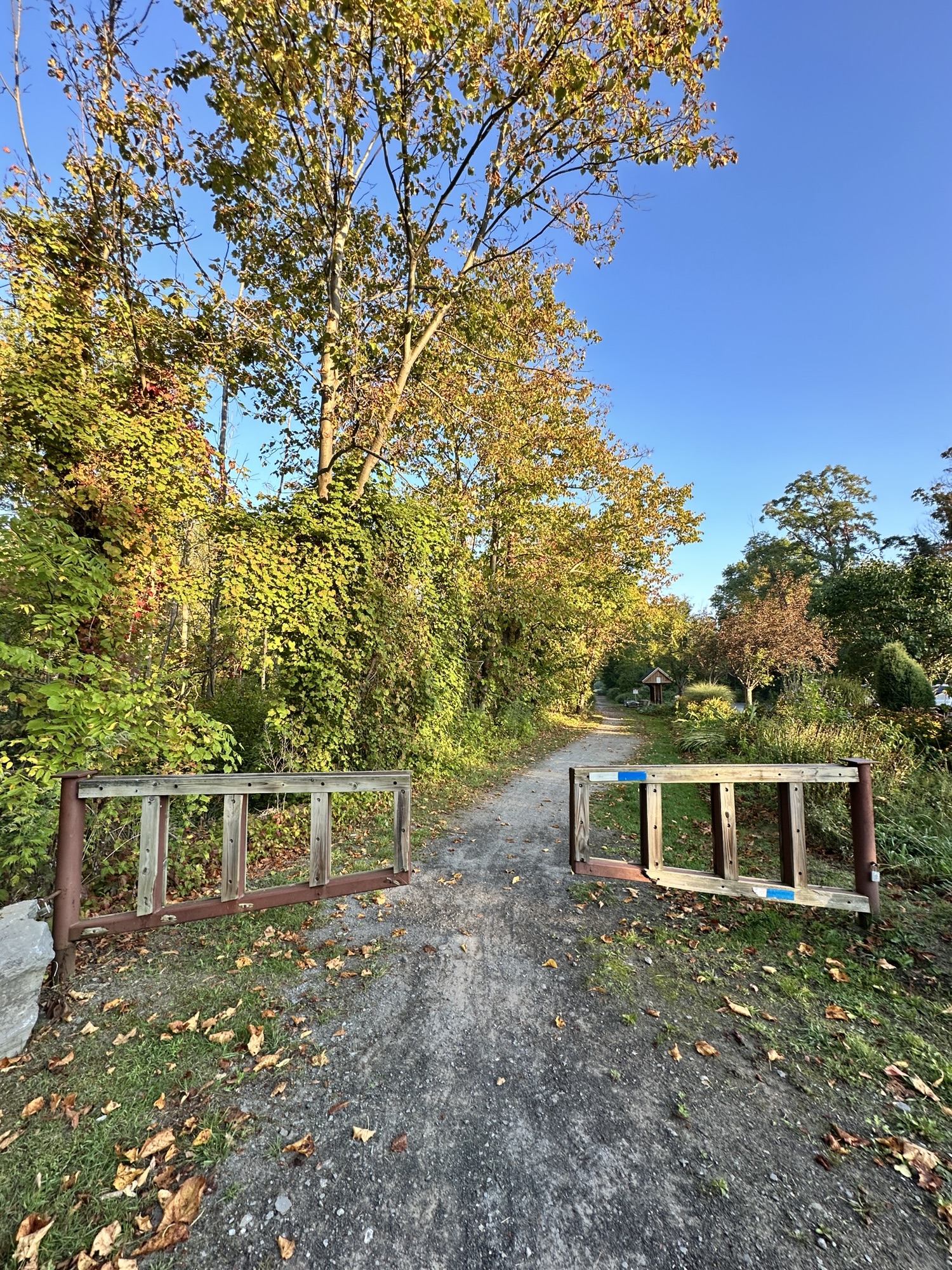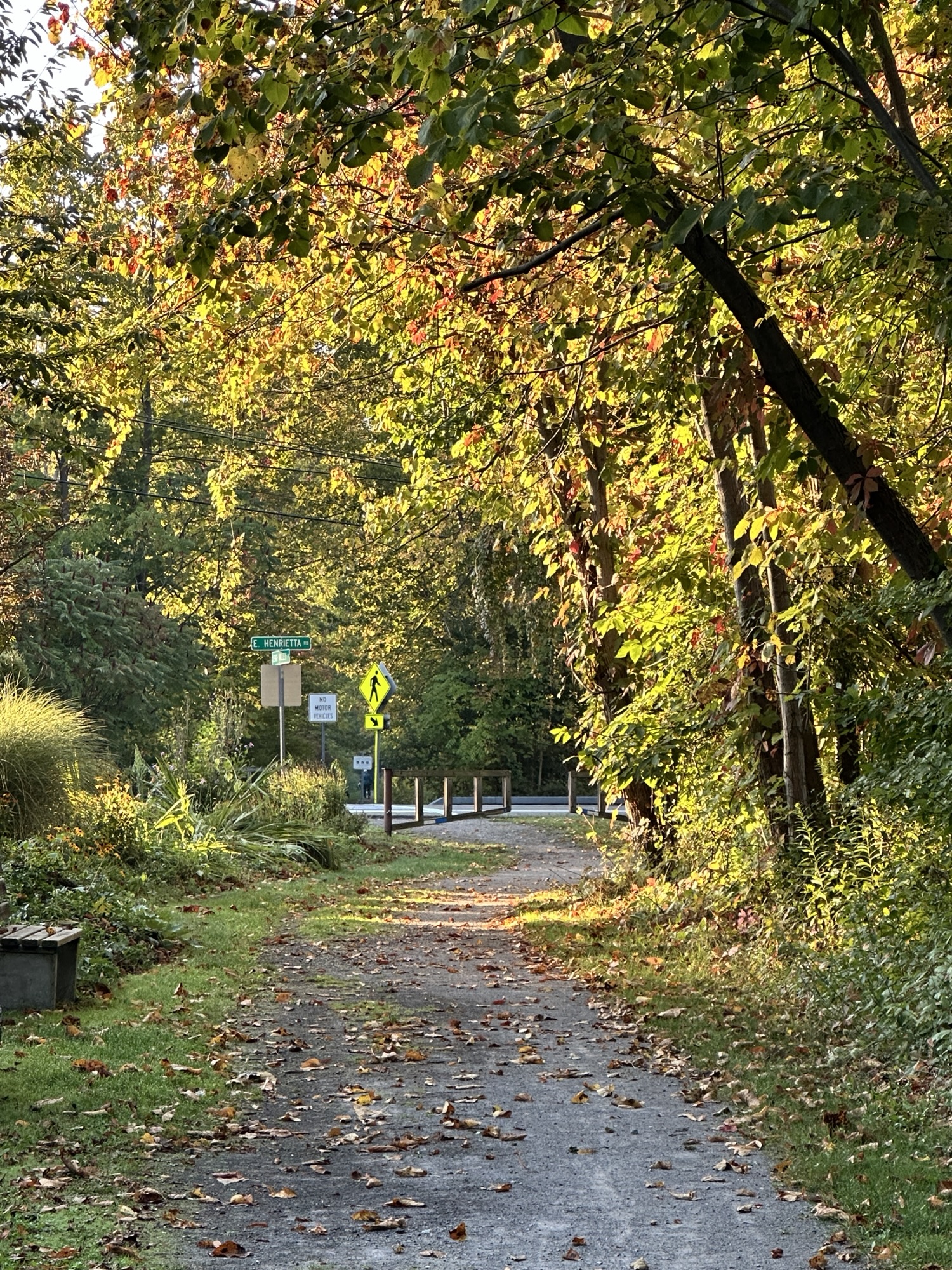 The Lehigh Valley Trail is a 15 mile converted rail-trail that once served as the Lehigh Valley Railroad. The North Branch of the Lehigh Valley Trail runs from the main trail northward. I parked in the parking lot on East Henrietta Rd (15A) just south of Ward Hill Road. There was an information board, picnic tables, and a beautiful garden at the parking area. The trail goes both directions, with a crosswalk across 15A. The trail is flat and stroller friendly. Leashed dogs are allowed.