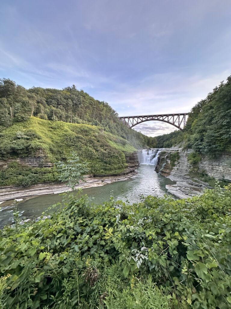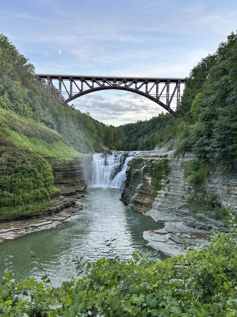 This park is located 1 hour southwest of Rochester, NY. There are numerous trails and viewpoints throughout the park. Middle Falls and Upper Falls are two of my favorite views in Letchworth. You can park at either of the waterfalls. There is a stone dust path between the waterfalls allowing you to walk between them. This path is mostly stroller friendly BUT there is a section with a few steps and a section with some rocks. There are also more stairs as you approach each waterfall, but you can enjoy views of the falls without using these stairs. Leashed dogs are allowed. There are restrooms by each waterfall. There is a fee to enter the park, though the fee is sometimes waived during the winter.