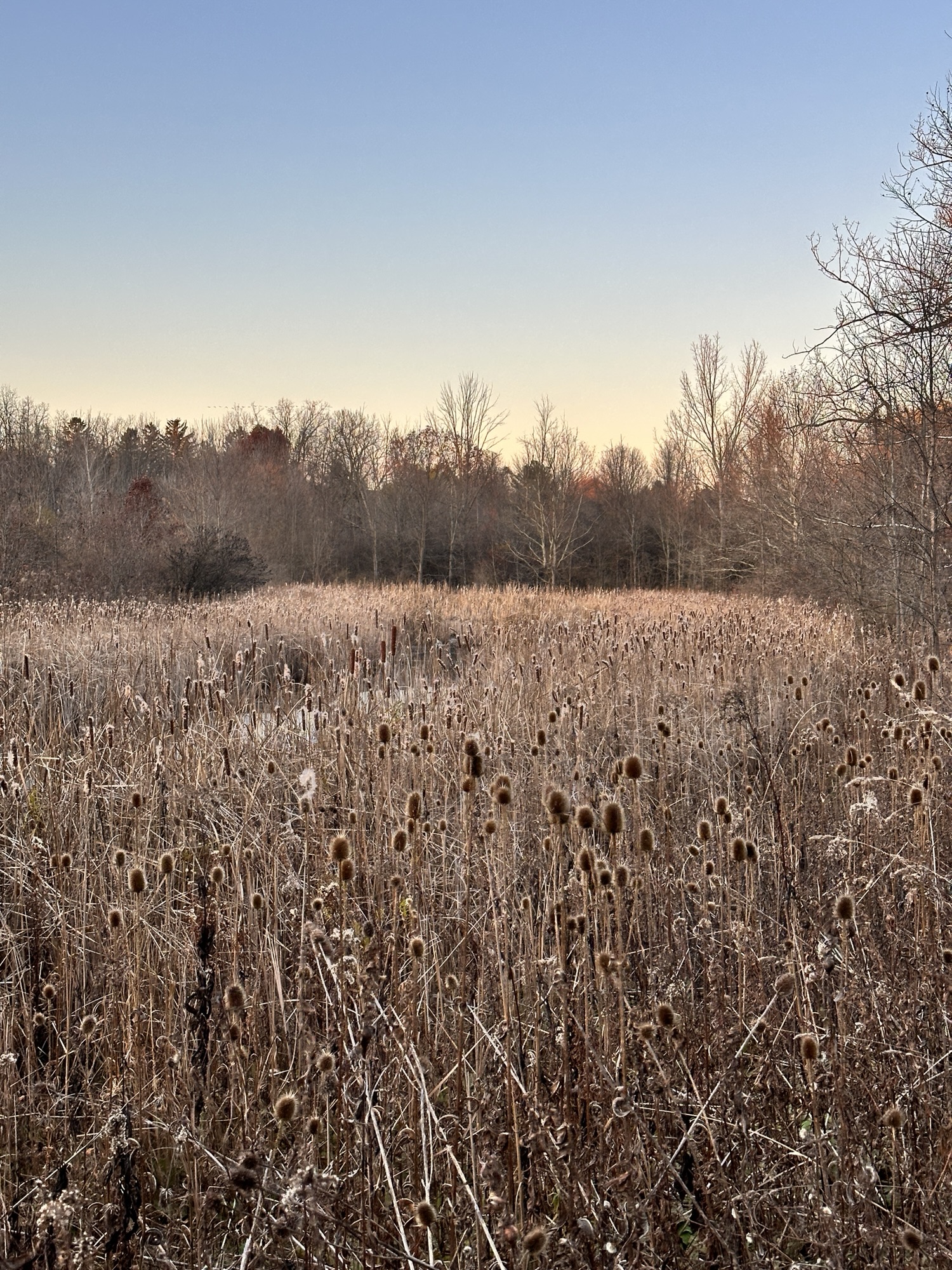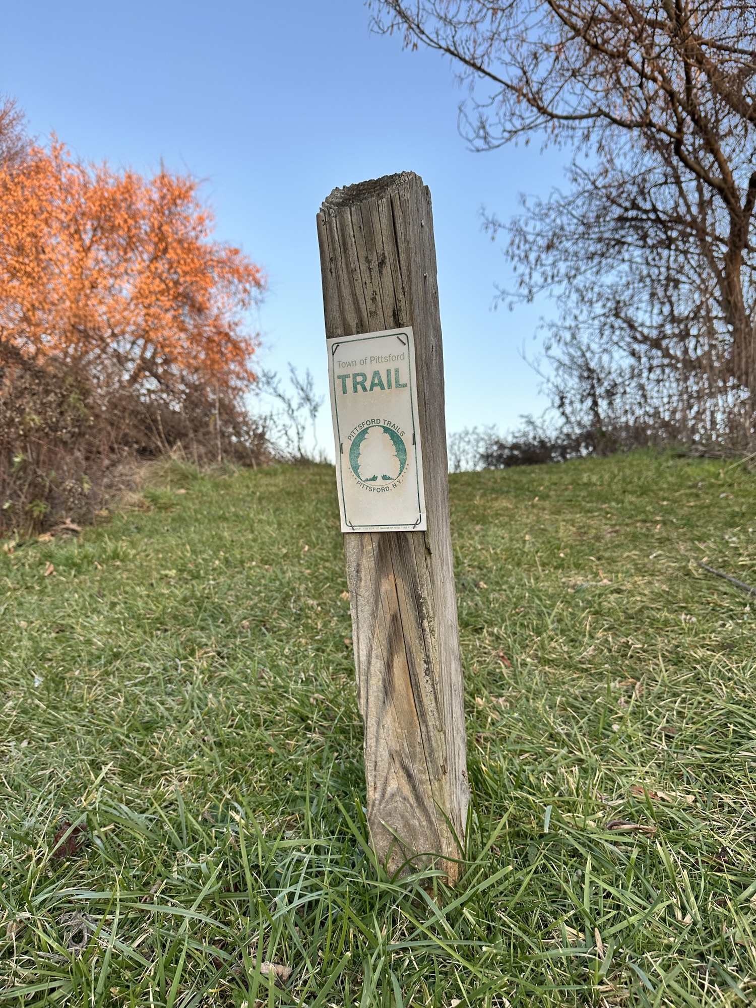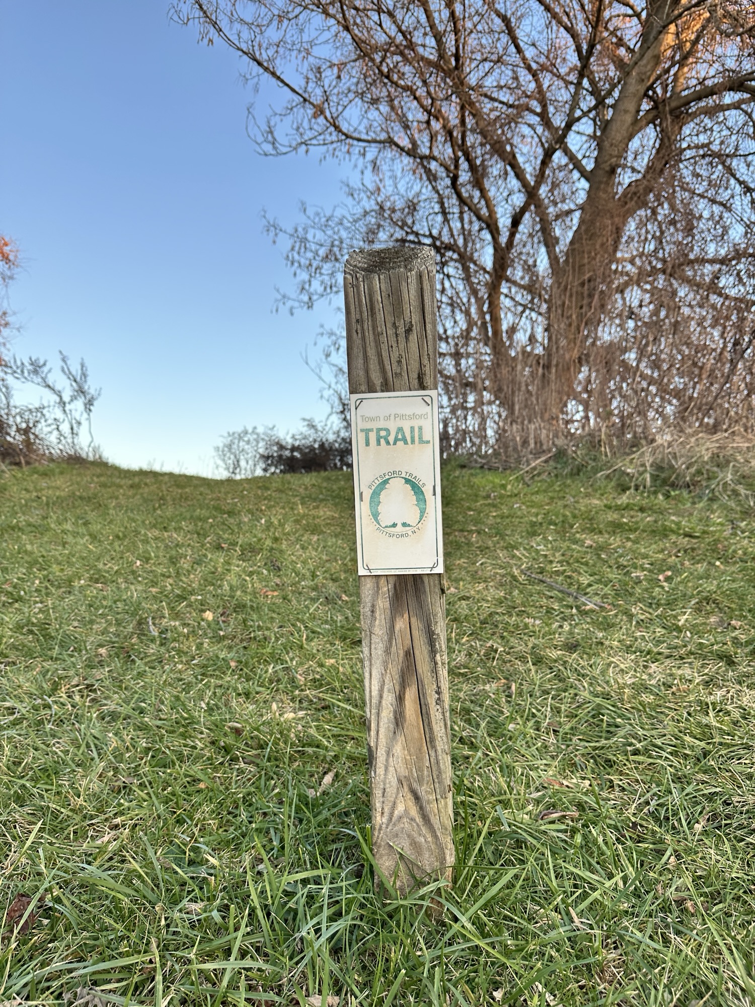 This trail is located 20 minutes east of Rochester, NY. I parked at the Mile Post School and walked .12 miles down the sidewalk along Mendon Road to the entrance to Lusk Farm Trail. The path becomes grassy then dirt as it enters a wooded area with some small hills. The trail turns to gravel along the edge of a field and the path then changes to grass and circles the perimeter of a field. Part of the trail was grassy, overgrown, and not well maintained. There was a small wetland pond here. Overall the loop was about 0.75 miles long. Leashed dogs are allowed. The trail would not be stroller friendly.