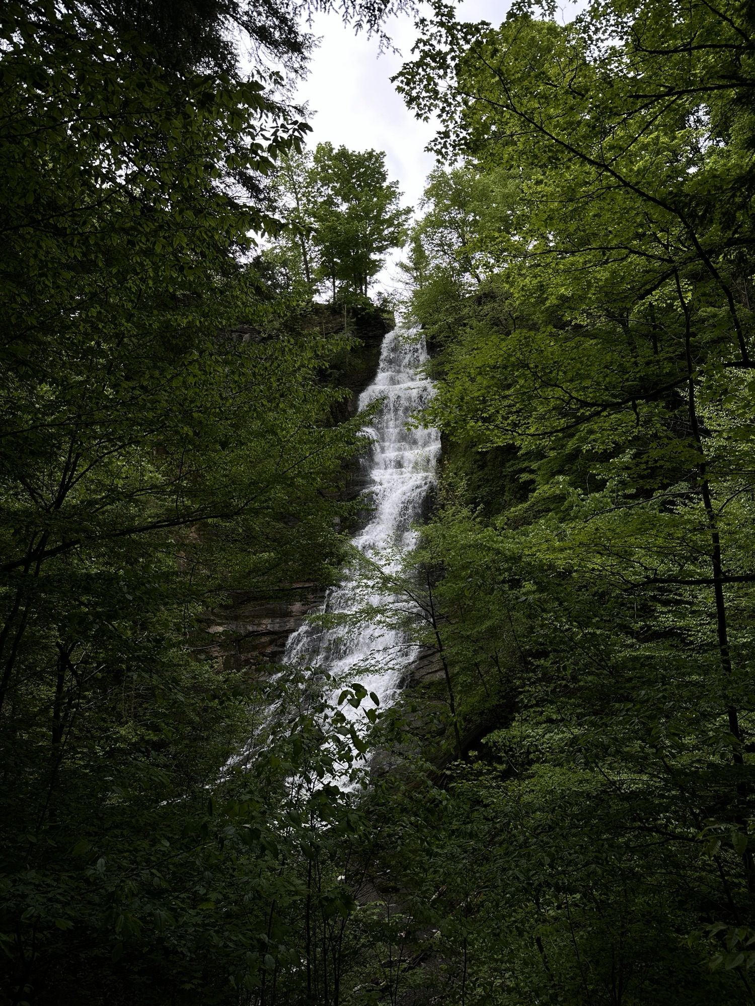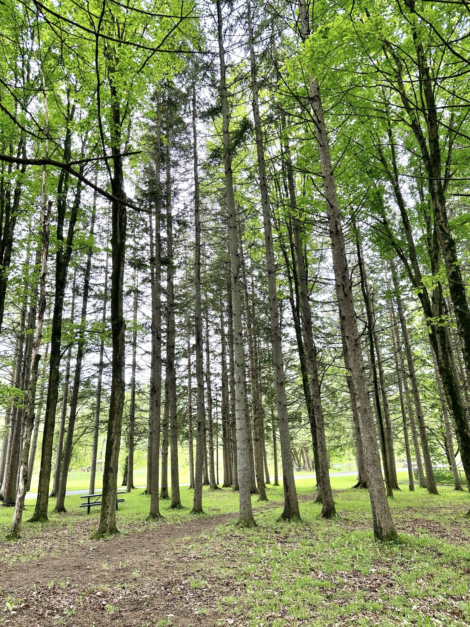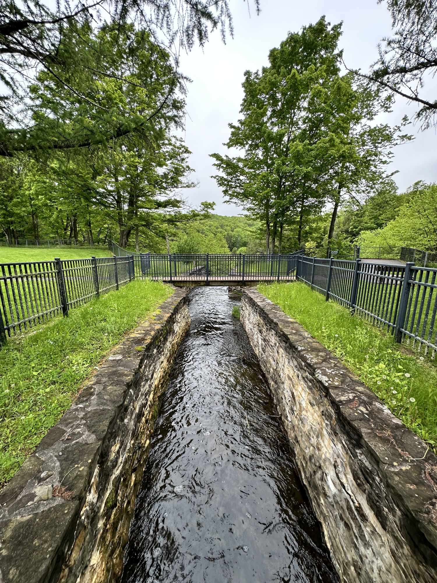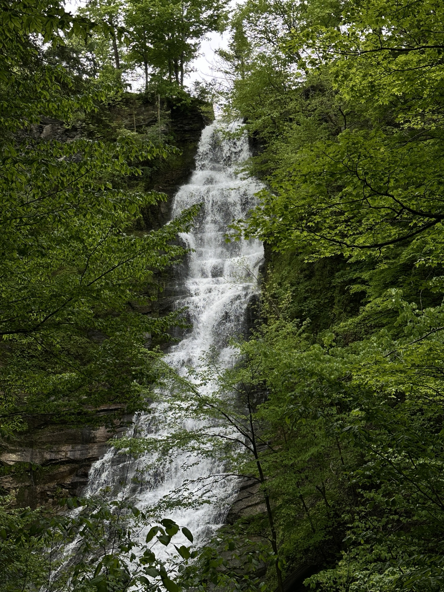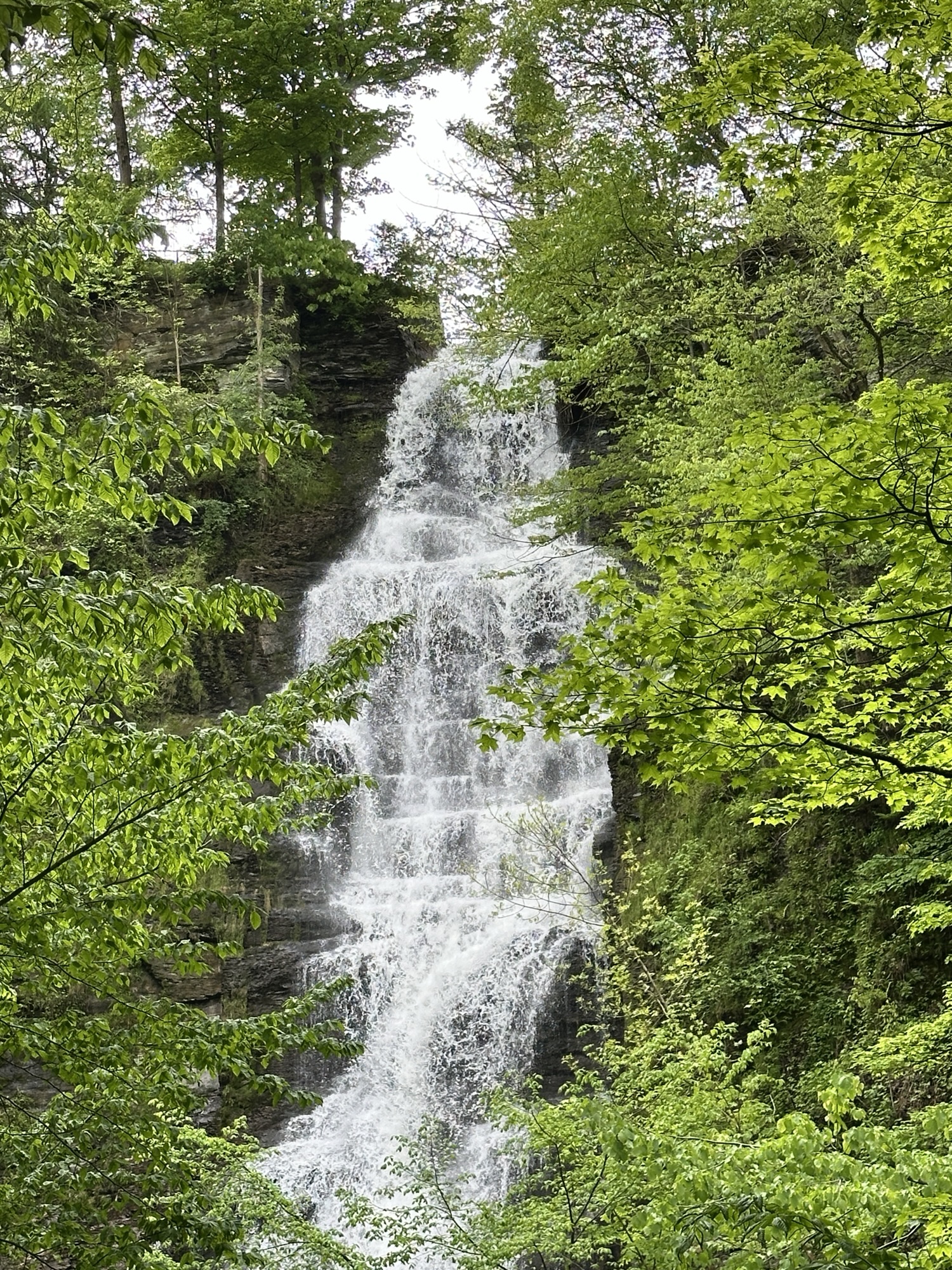 This beautiful park features a waterfall and pond and is located near Syracuse, roughly 2 hours east of Rochester, NY. This park features a 137 foot waterfall and is the site of Onondaga County’s first mill operation in 1796. We wandered around the beautiful ponds, checked out the accessible viewpoint over the falls and informational signs, and then hiked the 0.6 mile trail down to the viewpoint below the falls (which included stairs with railings). The waterfall was impressive and so peaceful! Be sure not to climb the gorges or waterfalls in this park and follow all posted signs for your own safety. The trail down to the waterfall is not stroller friendly. Near the main parking area are restrooms, a few pieces of play equipment, fields, as well as a picnic area underneath some evergreen trees.
