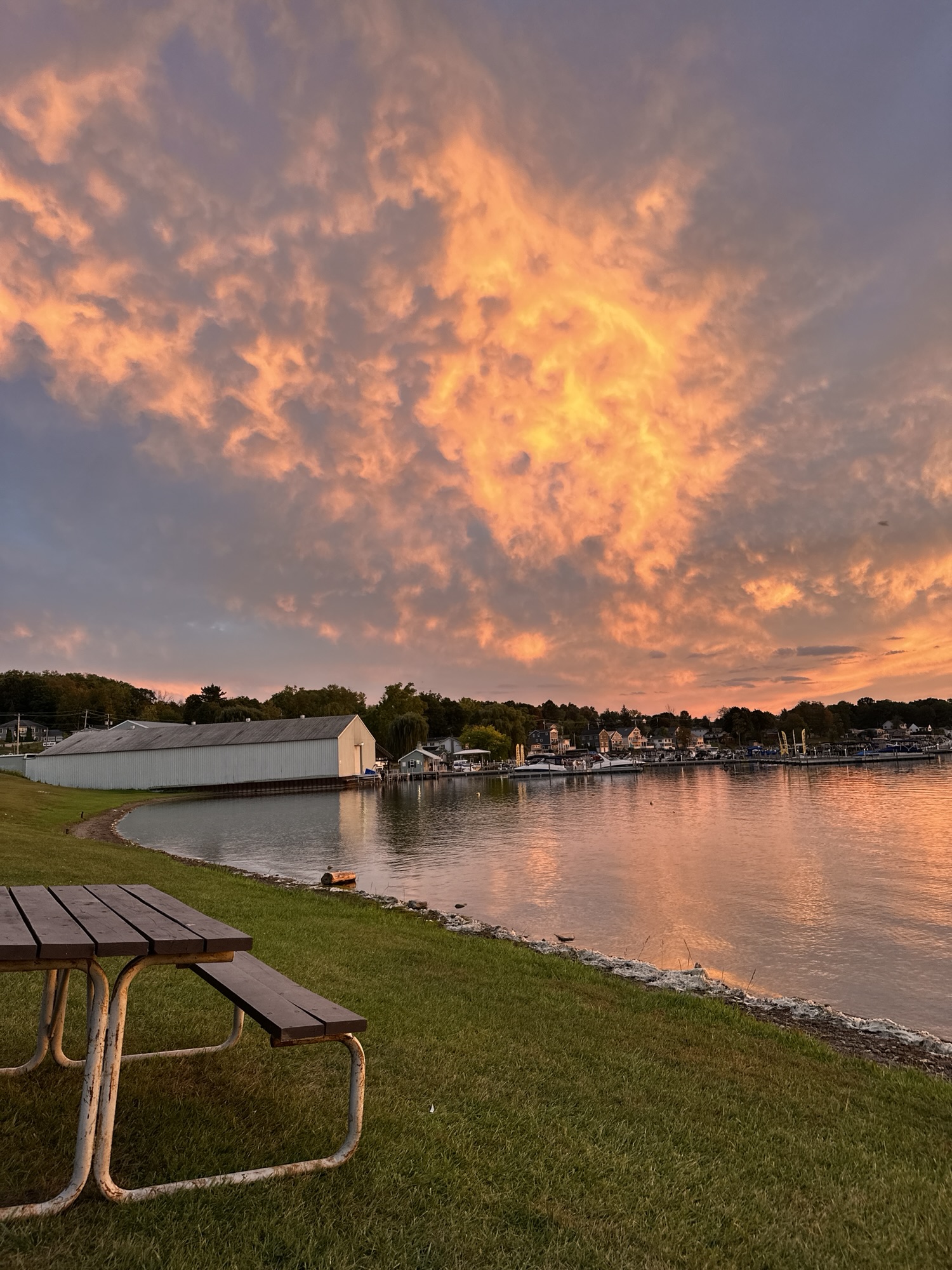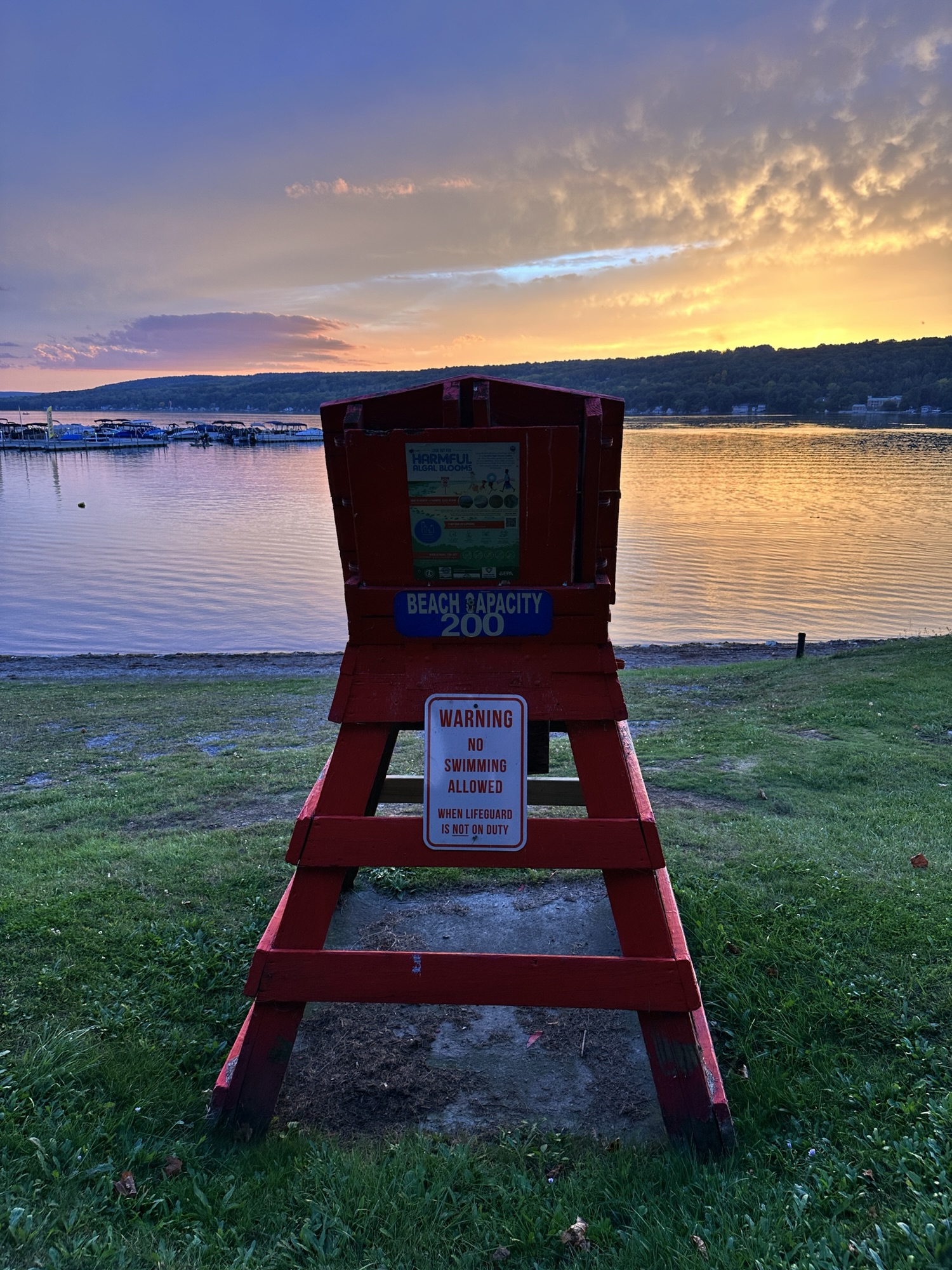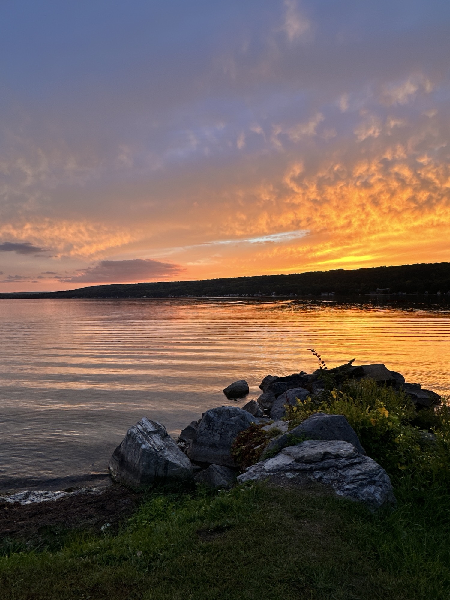 This park is located 1 hour southeast of Rochester, NY on the shore of Keuka Lake. There is swimming access, a playground, benches, and picnic tables. There are no trails but you can walk along the shore on the grass. It’s a great sunset spot! Leashed dogs are allowed.
