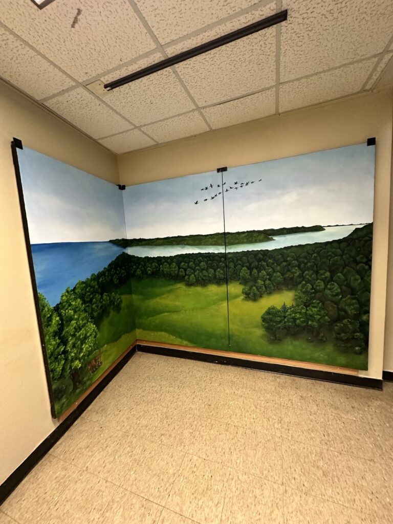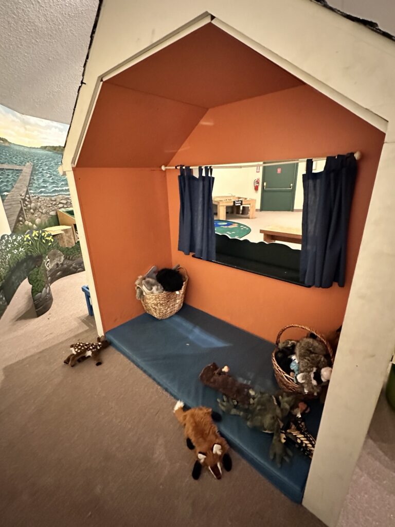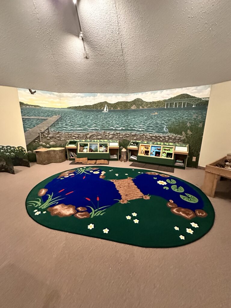 RMSC Cumming Nature Center is located an hour south of Rochester, NY. The visitor center includes accessible restrooms, a multi-purpose space downstairs, permanent exhibits located in the main lobby, a nature play room full of hands-on, educational activities for kids, the Riedman Theater with a movie screen and seating for up to 100 people, and the Hurst Gallery, an exhibit space with rotating and permanent exhibits