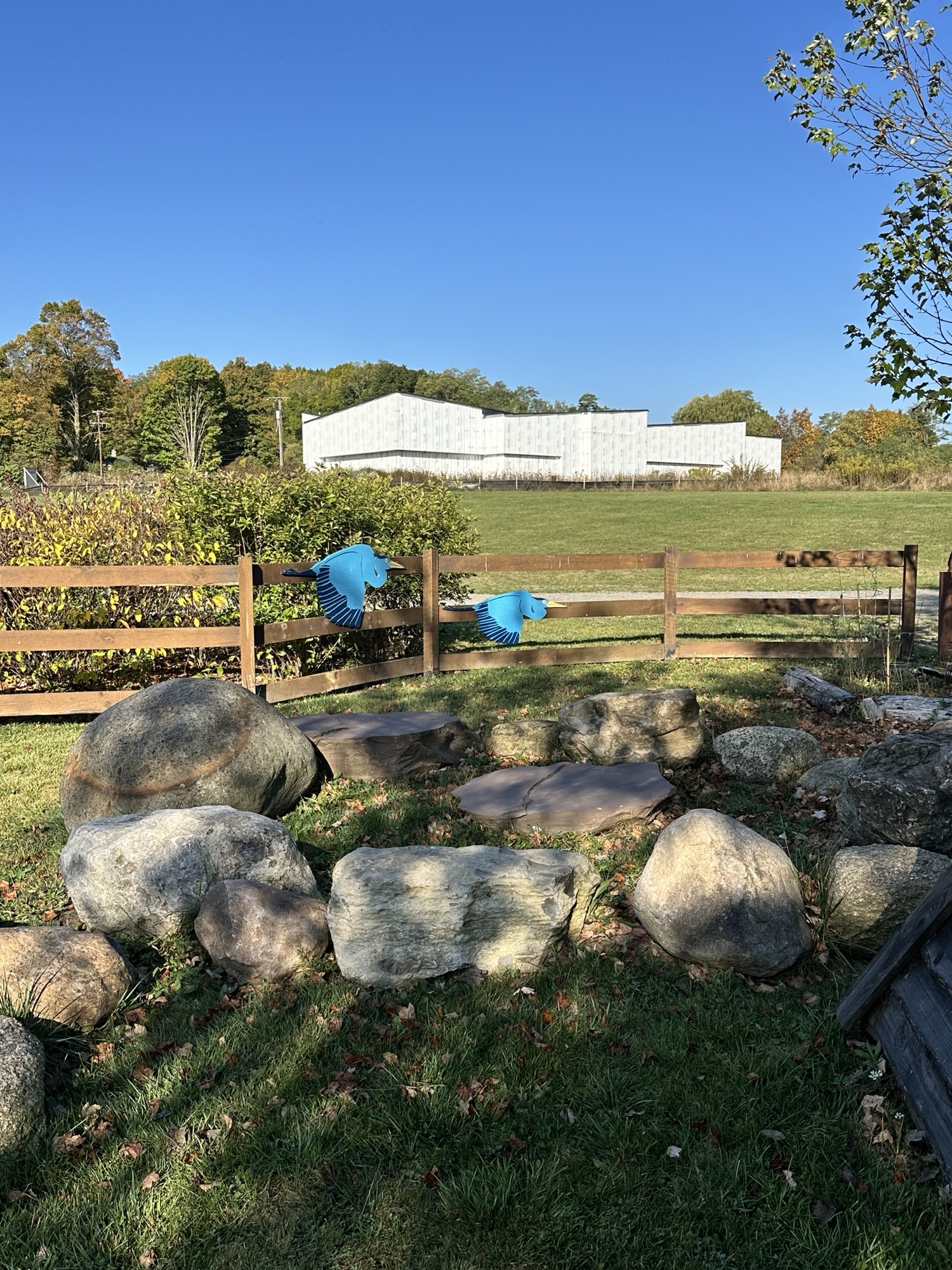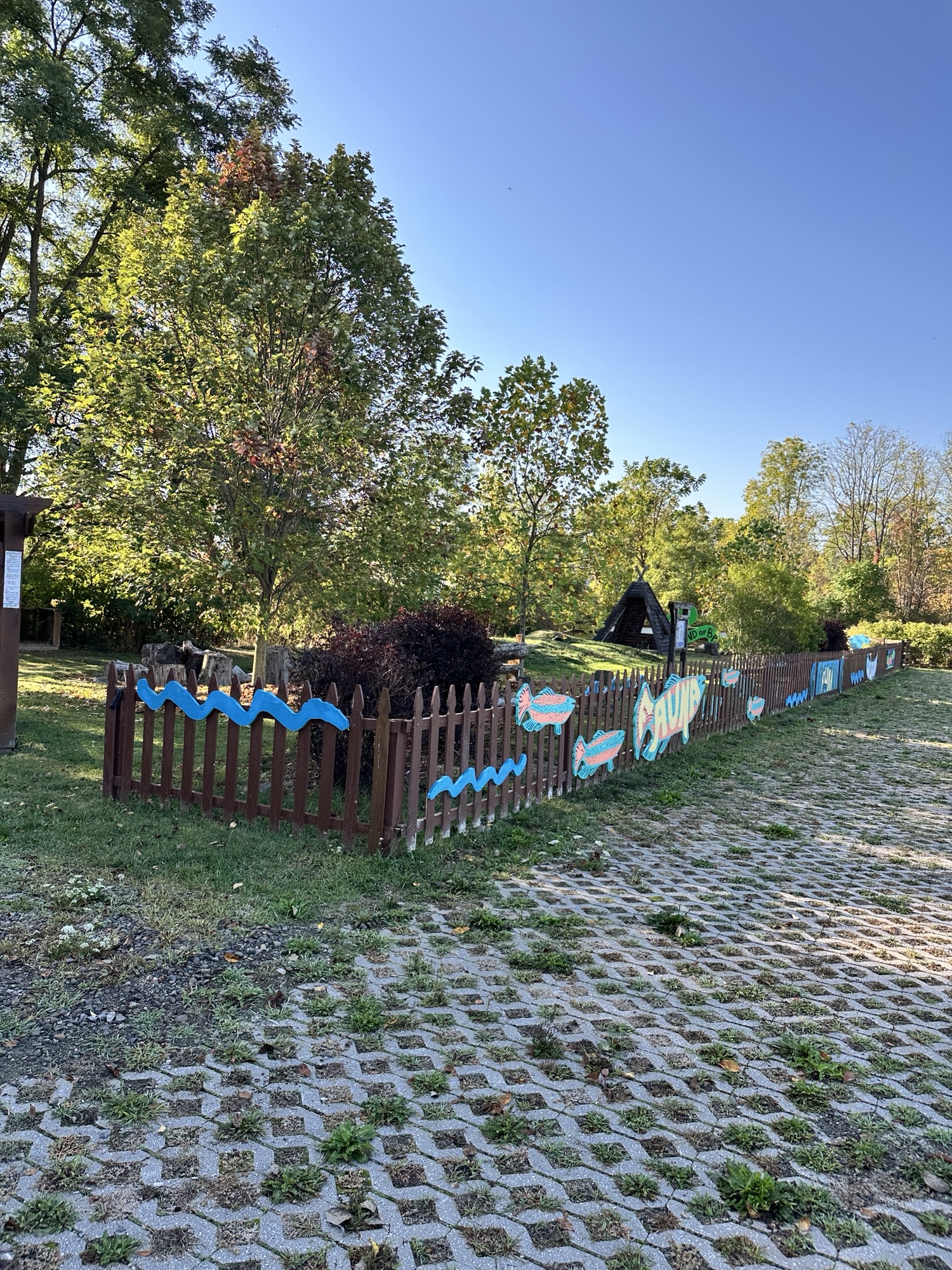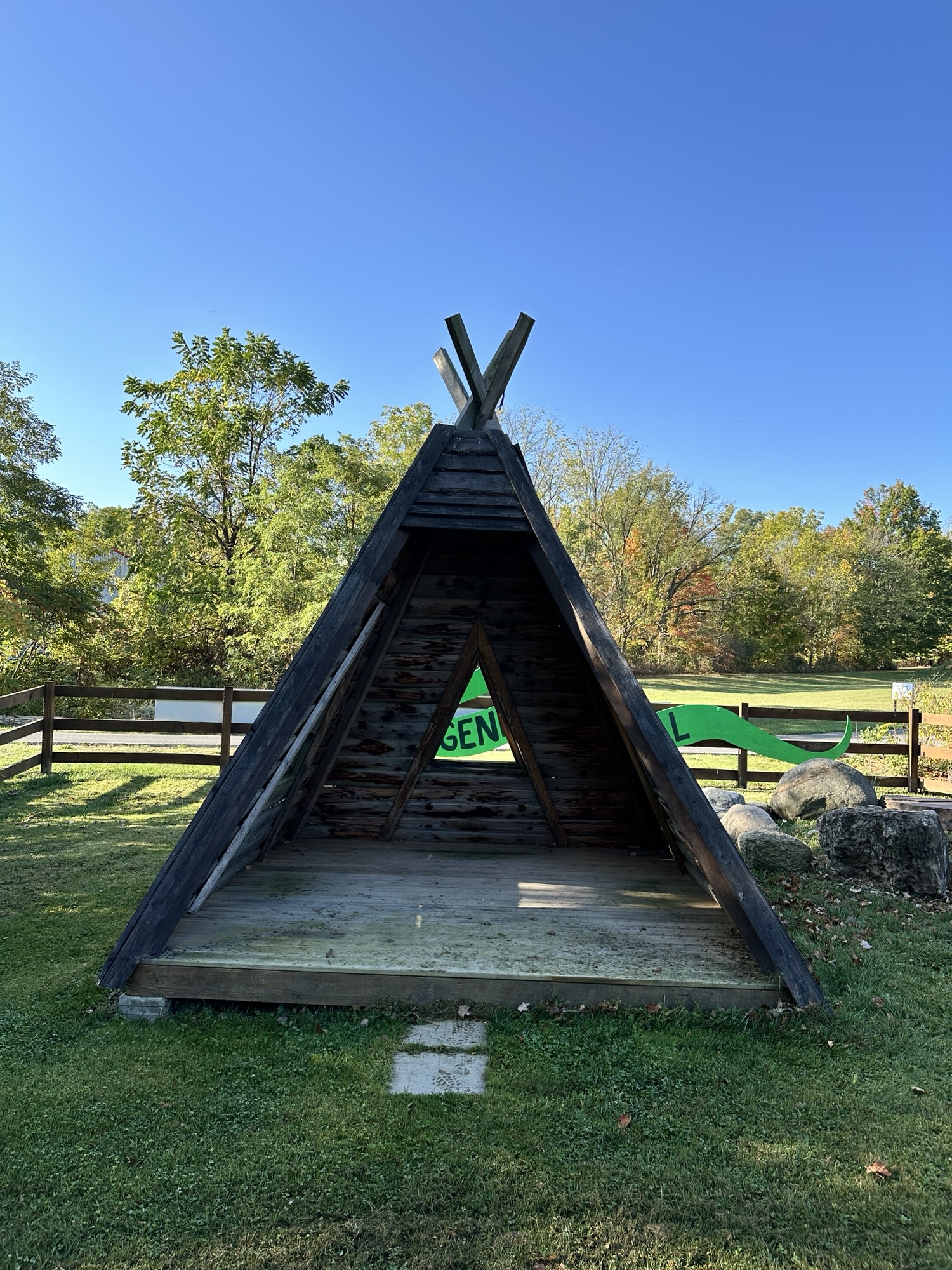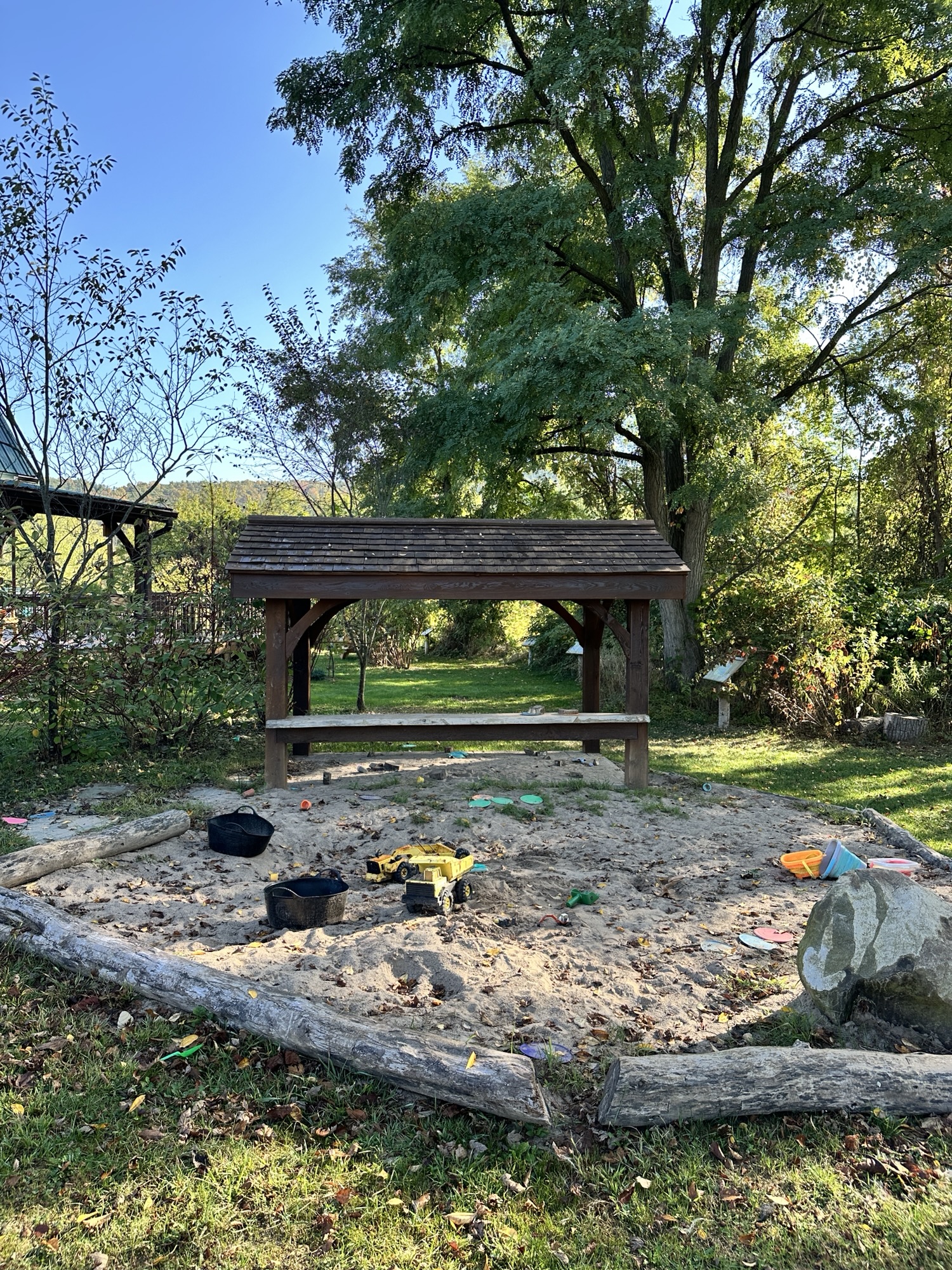 The Saunders Finger Lakes Museum is located 1 hour southeast of Rochester, NY. There are nature trails, a kayak launch, story walk, and a natural playscape. Other exhibits are currently under construction. The natural playscape is a fun spot for children to play with natural elements. There is a sand box, an area with logs to balance and hop on, a small hill, and a small structure to go inside. The playscape is right near the StoryWalk.