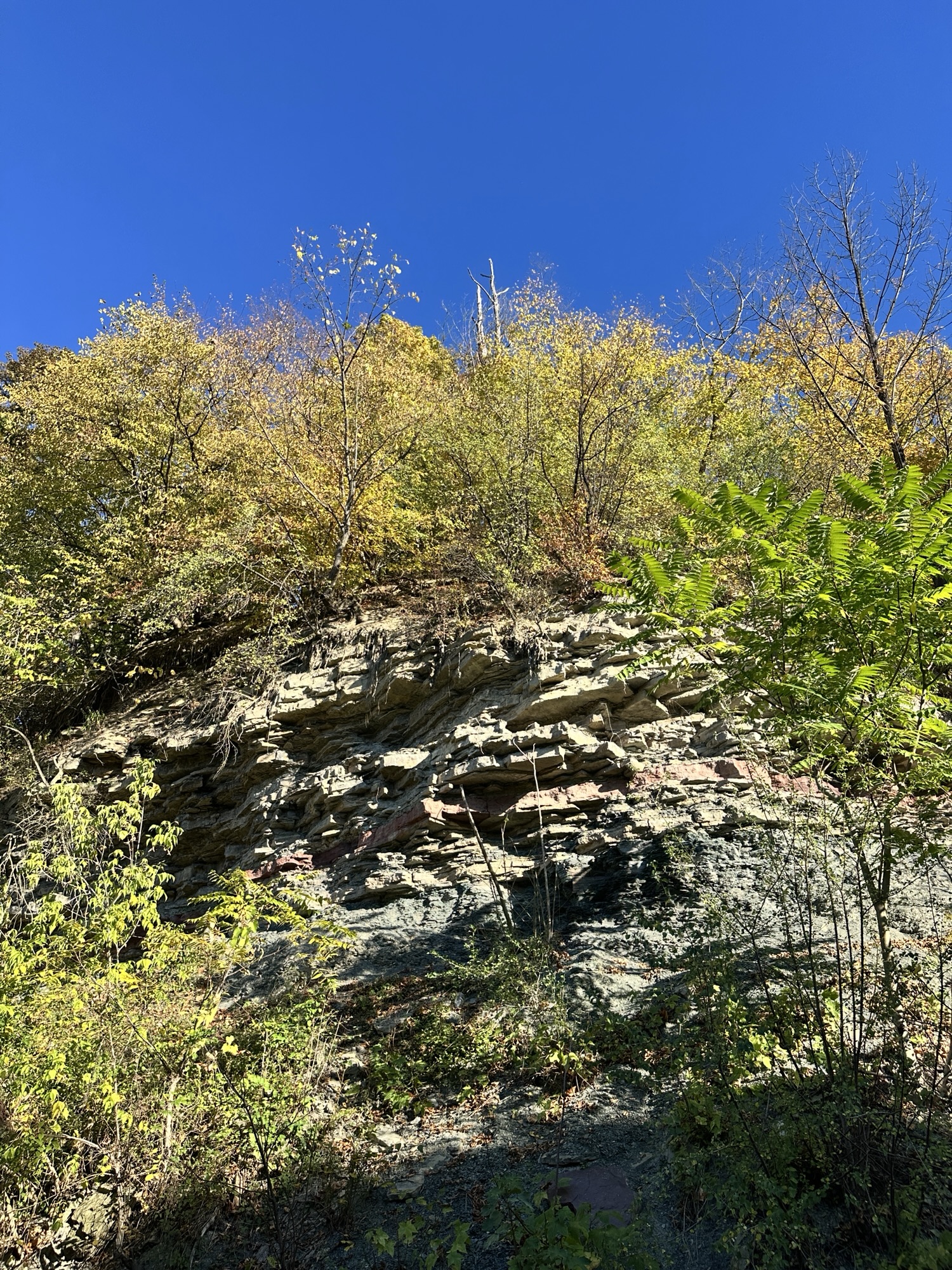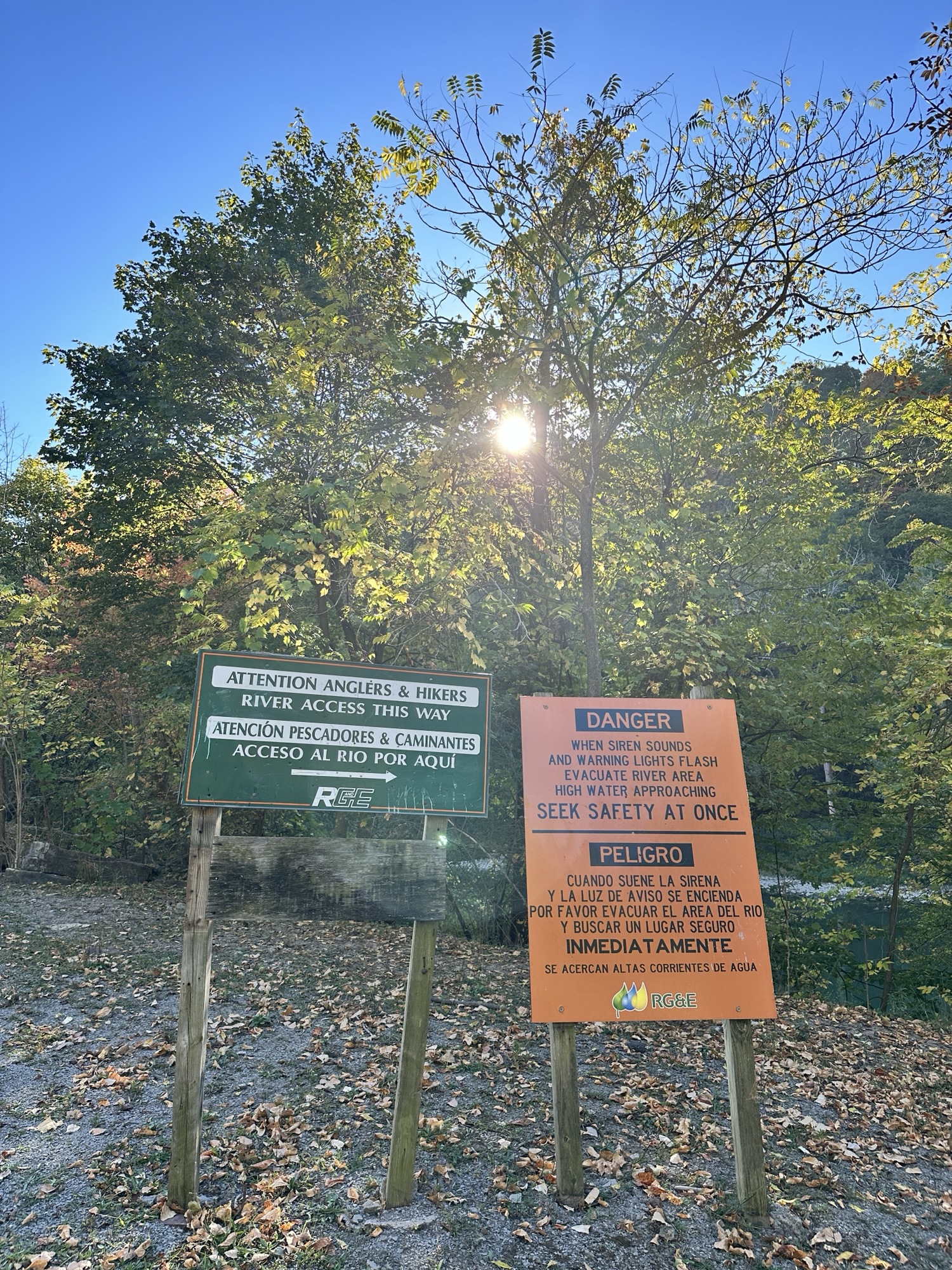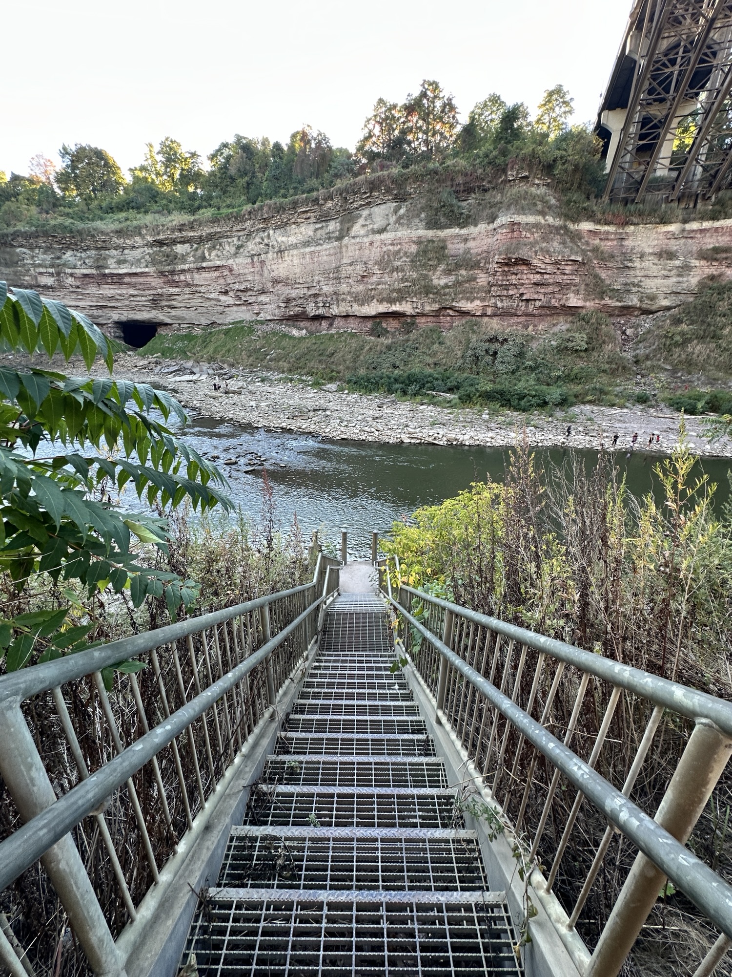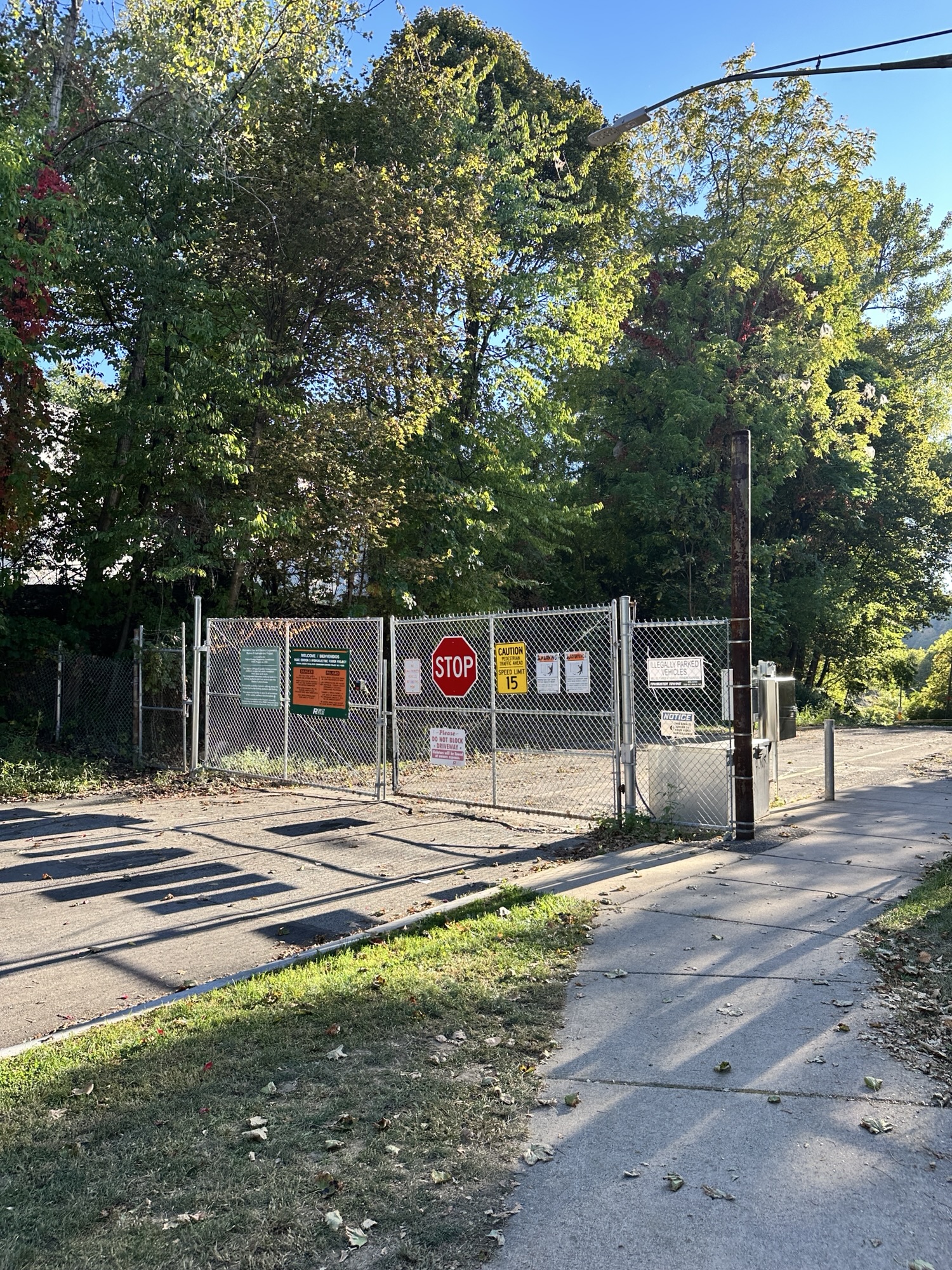 This trail is located in the City of Rochester. There is a parking lot located at Seth Green Park. There is a gate that closes the road from public traffic from here, so you need to walk down the road (watch for vehicles and for falling rocks). After about 0.3 miles, there is a trail that turns right into the woods. This trail leads to a beautiful view of the Genesee River with great reflections, especially in the fall. If you go back tot he road and continue down hill, you will see Driving Park Bridge above you and some very old layers of sedimentary rocks. Continue to the power plant for views of Lower Falls. The path along the road is stroller friendly but the dirt trail is not.
