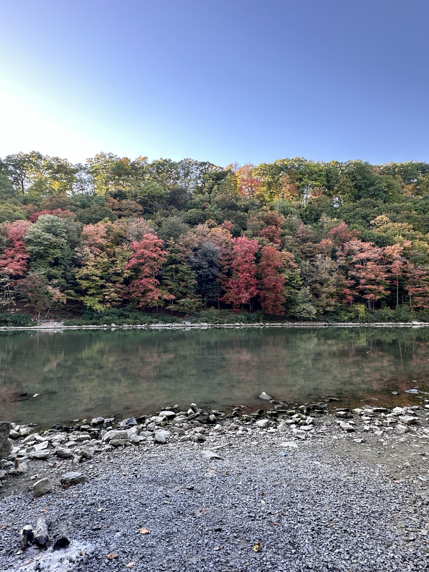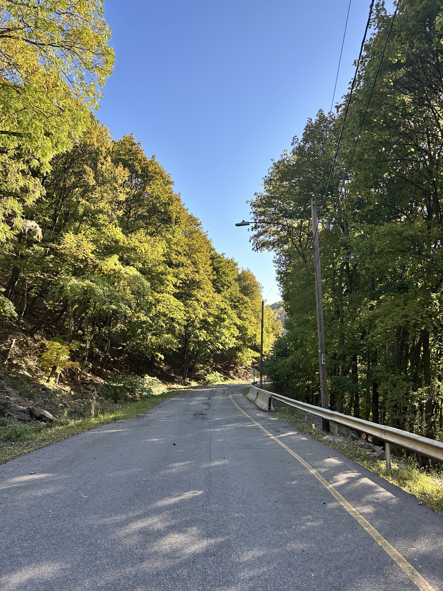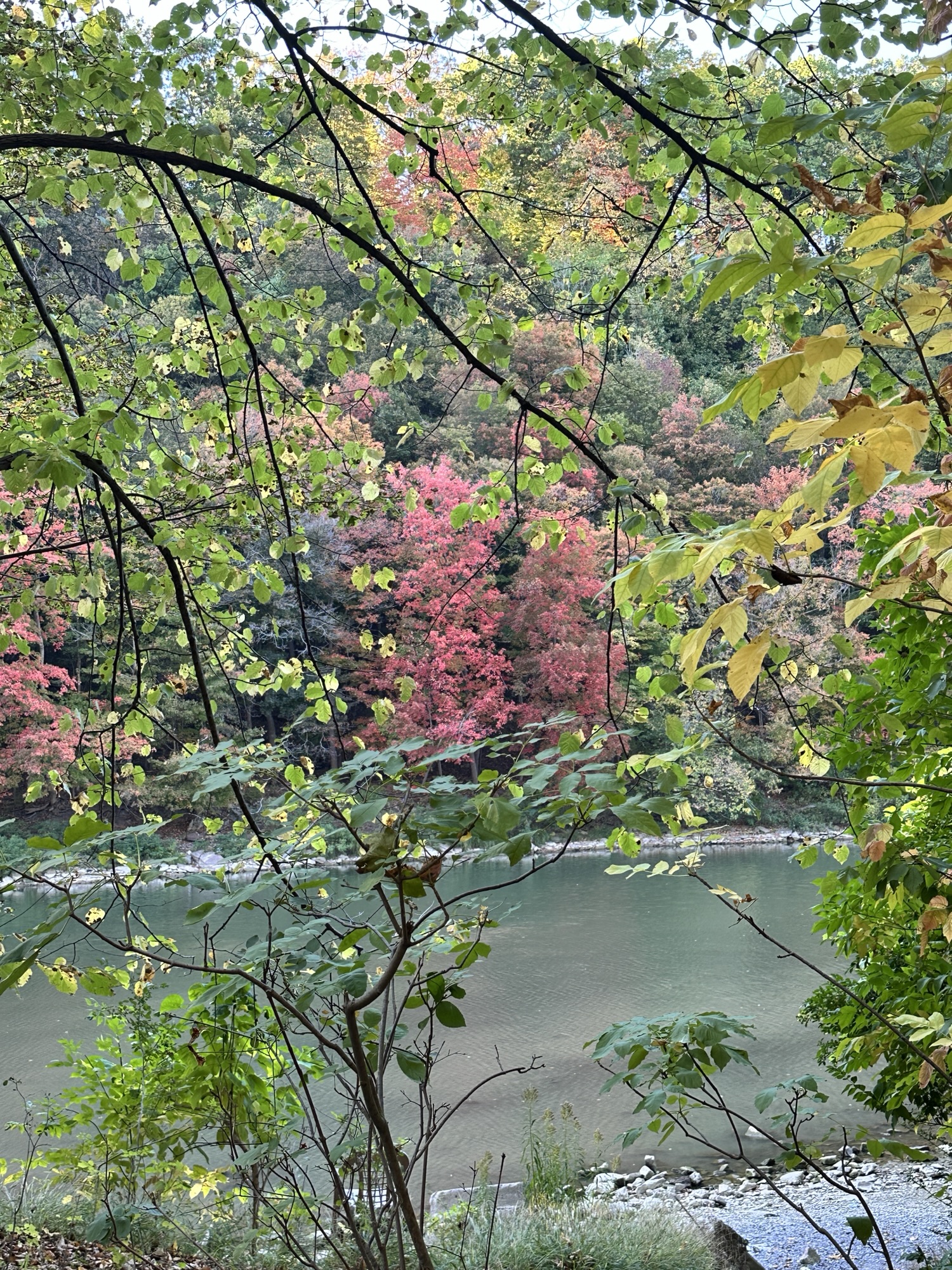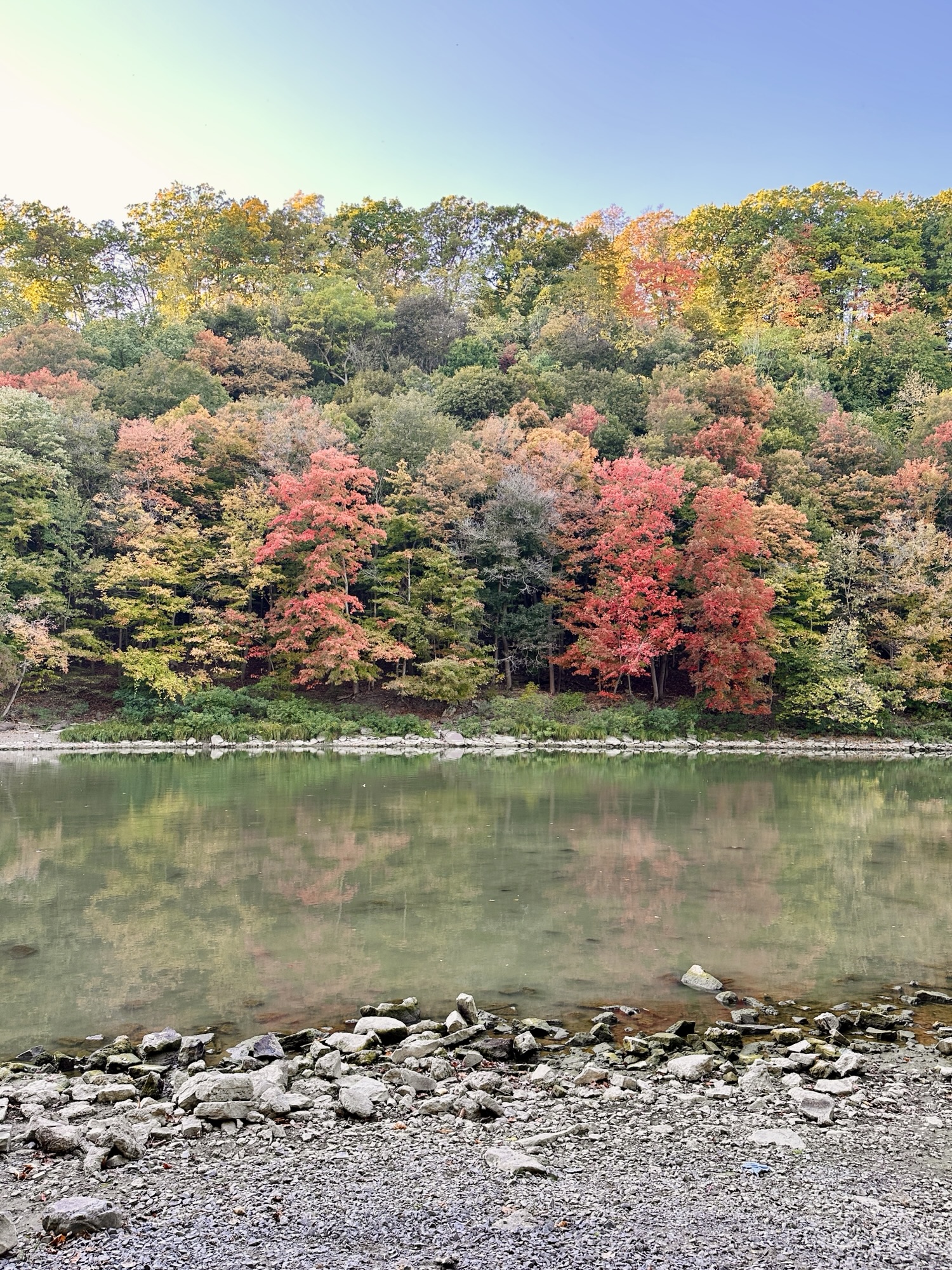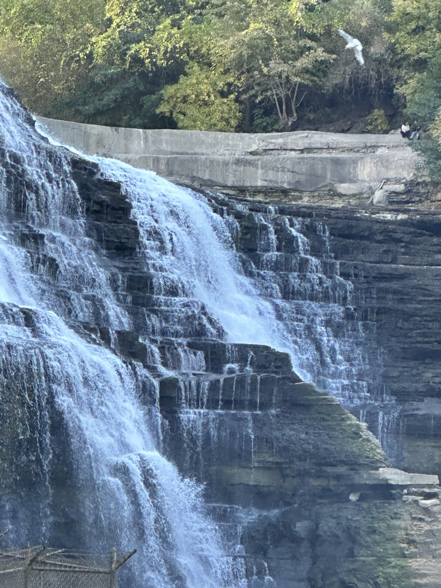 This trail is located in the City of Rochester. There is a parking lot located at Seth Green Park. There is a gate that closes the road from public traffic from here, so you need to walk down the road (watch for vehicles and for falling rocks). After about 0.3 miles, there is a trail that turns right into the woods. This trail leads to a beautiful view of the Genesee River with great reflections, especially in the fall. If you go back tot he road and continue down hill, you will see Driving Park Bridge above you and some very old layers of sedimentary rocks. Continue to the power plant for views of Lower Falls. The path along the road is stroller friendly but the dirt trail is not.