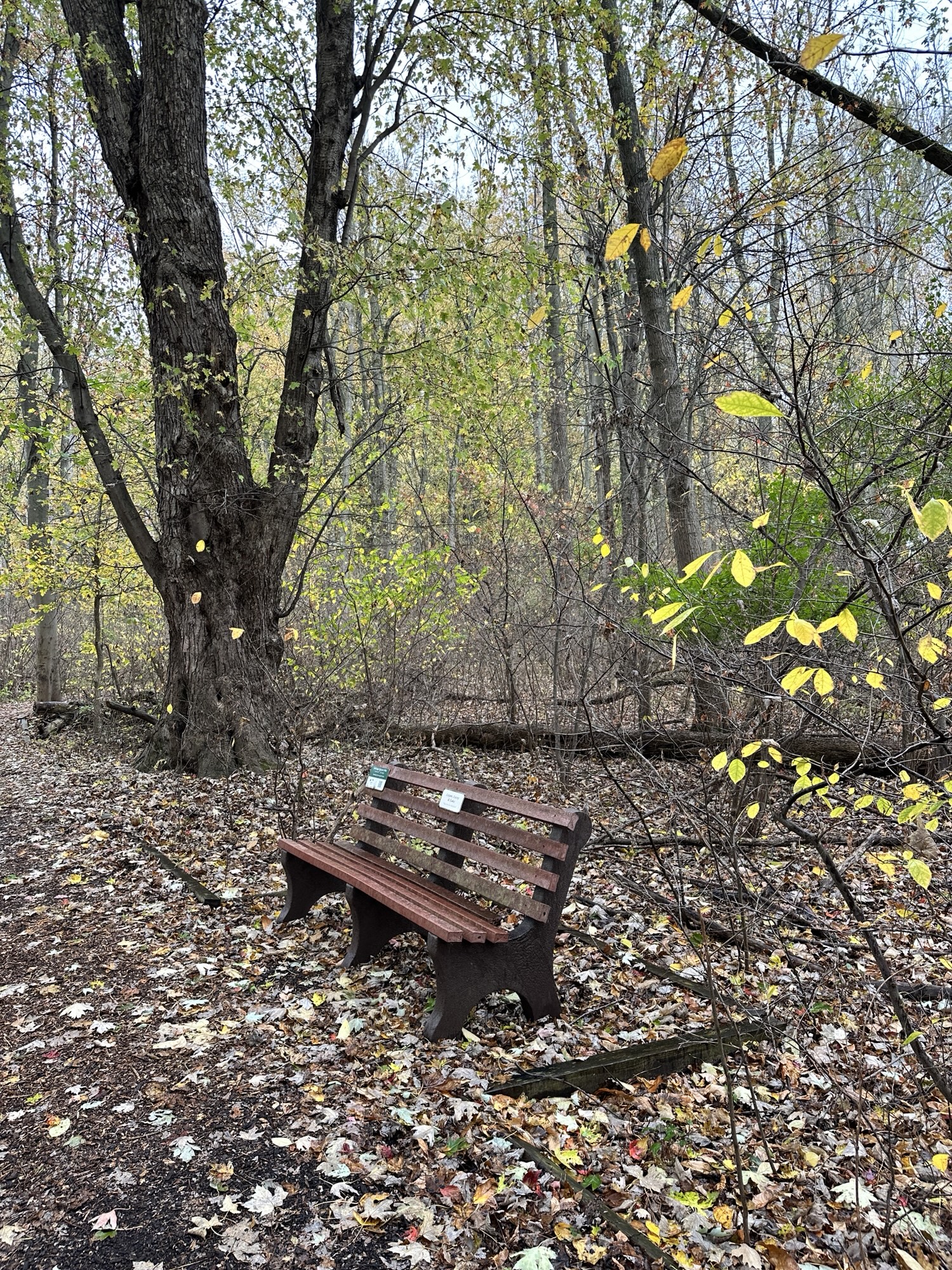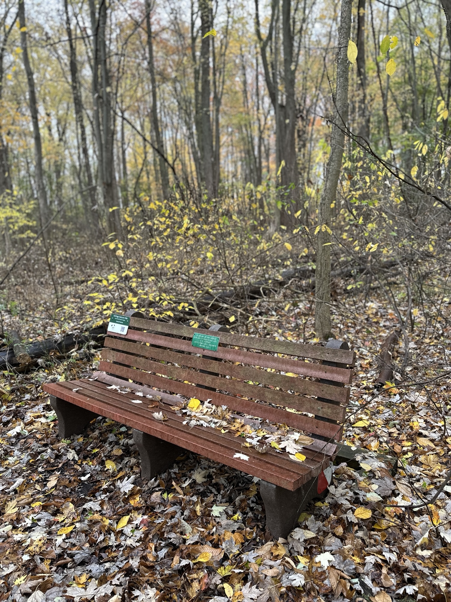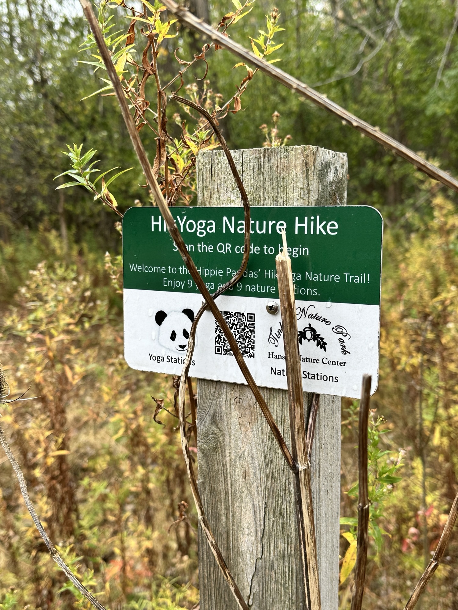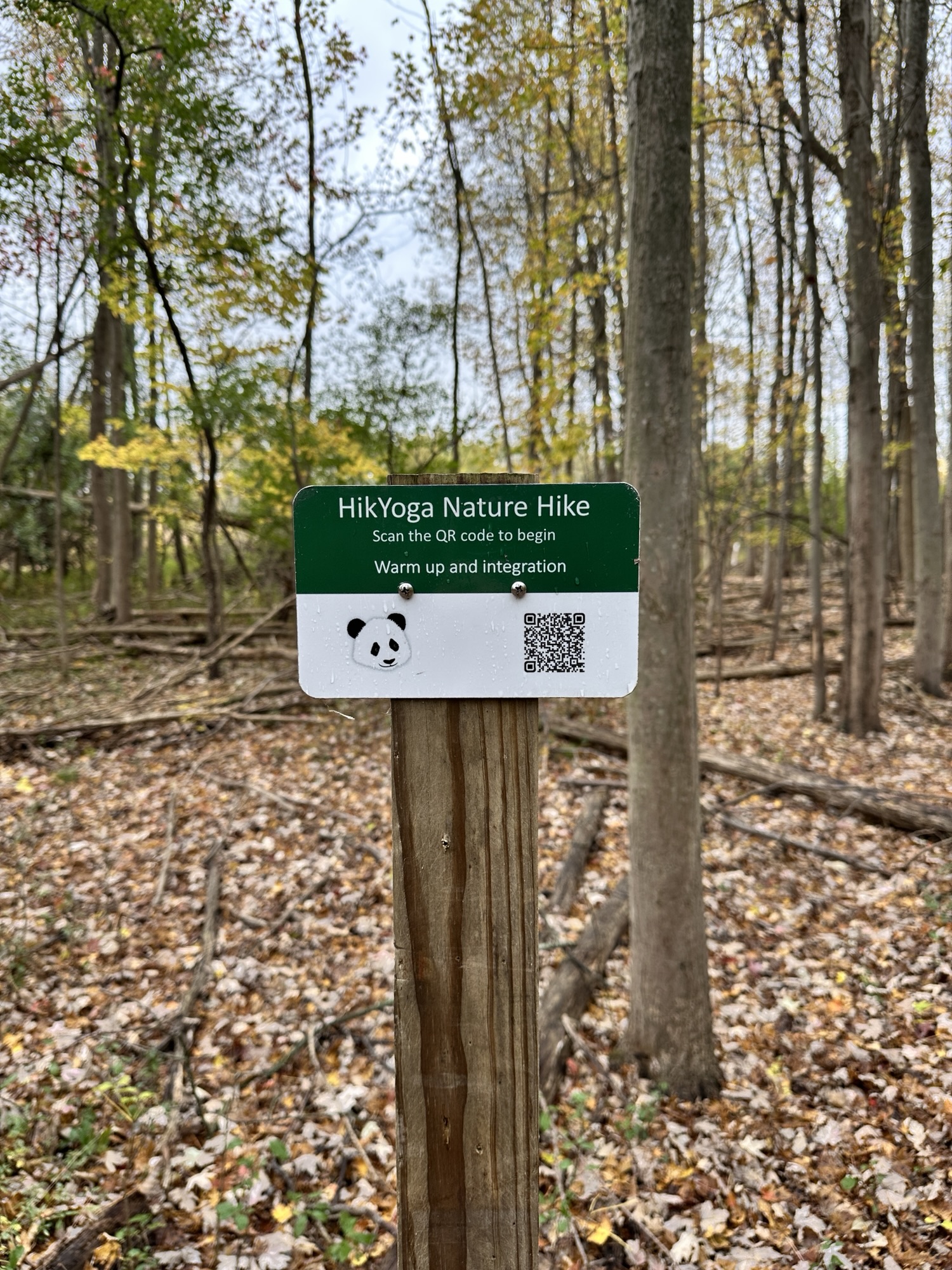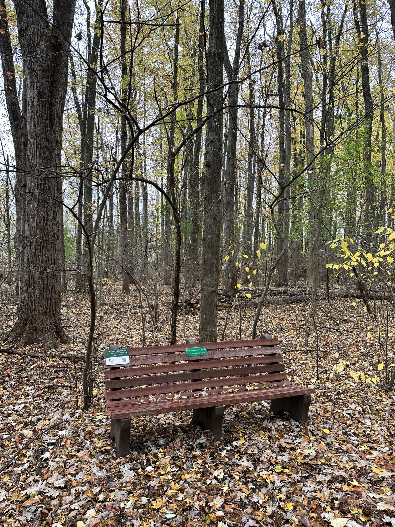 This is a beautiful park located 15 minutes south of Rochester, NY. The Nature Trail is the inner loop, shown in the map below. The loop is 0.45 miles long with a mostly flat surface through beautiful woods. There are several benches along the trail and a short boardwalk section. There are signs along the trail with QR codes to do a HikYoga Nature Hike. The trail may work for a sturdy stroller when the trail is not muddy, but I am not sure.