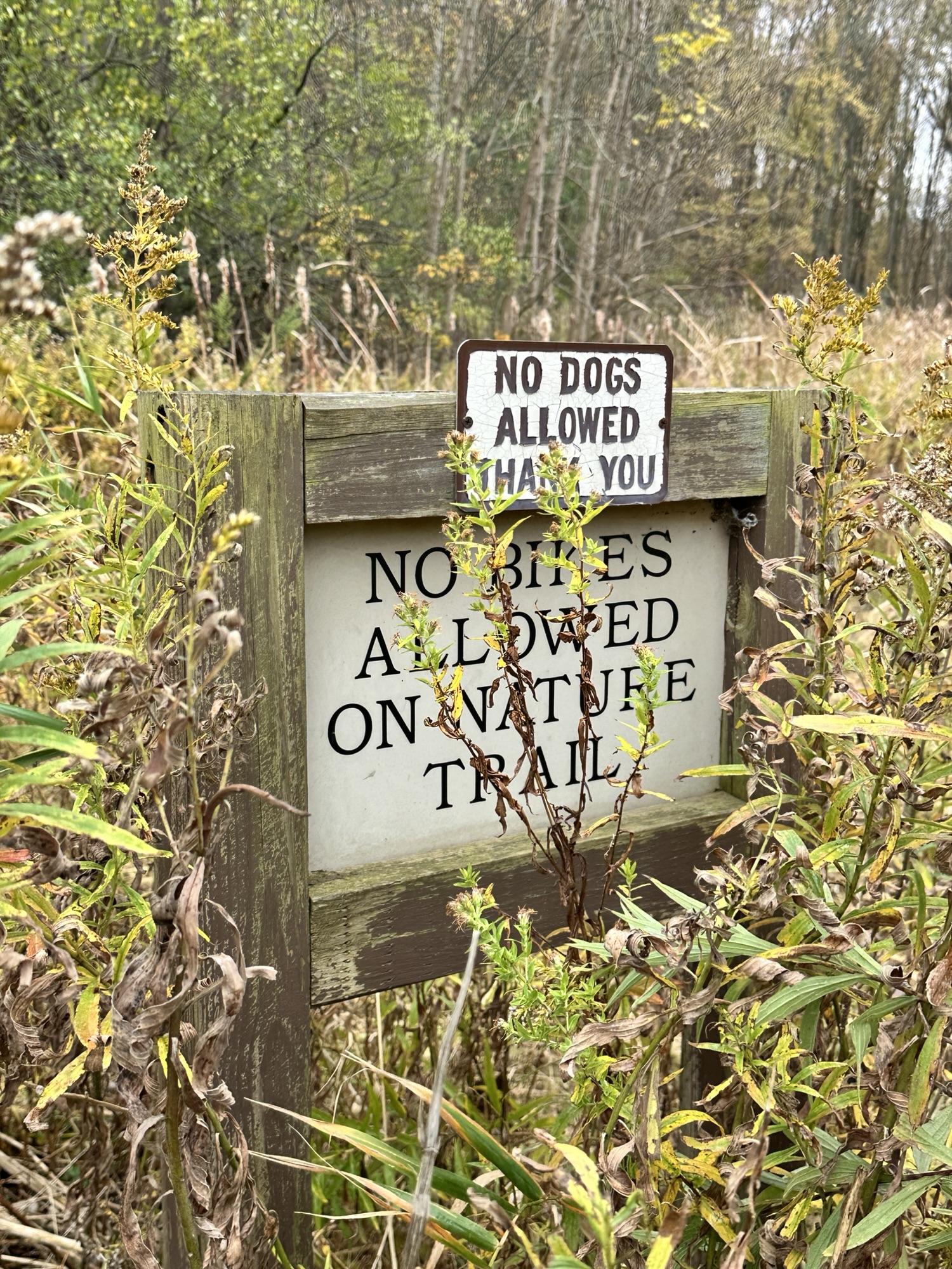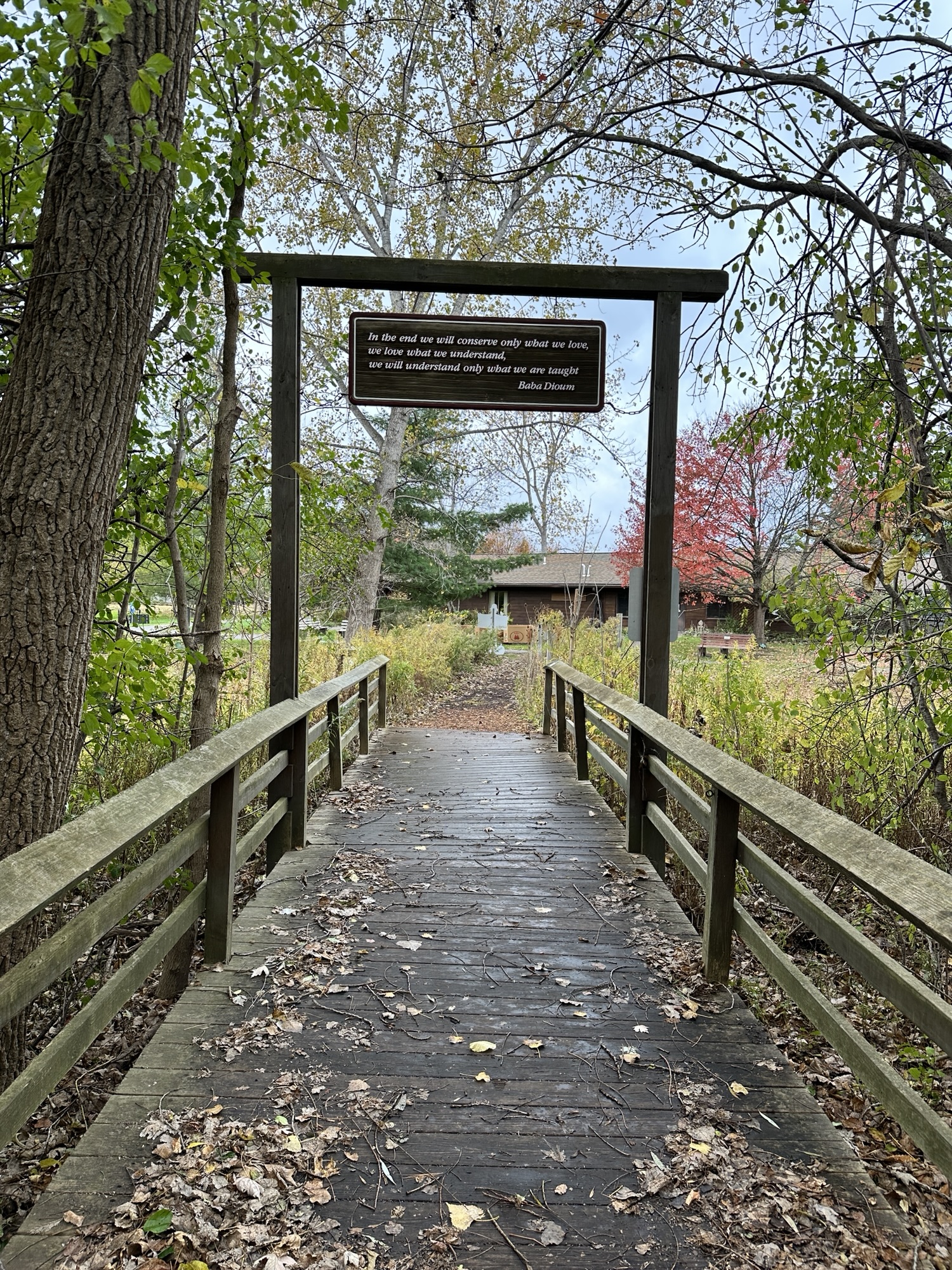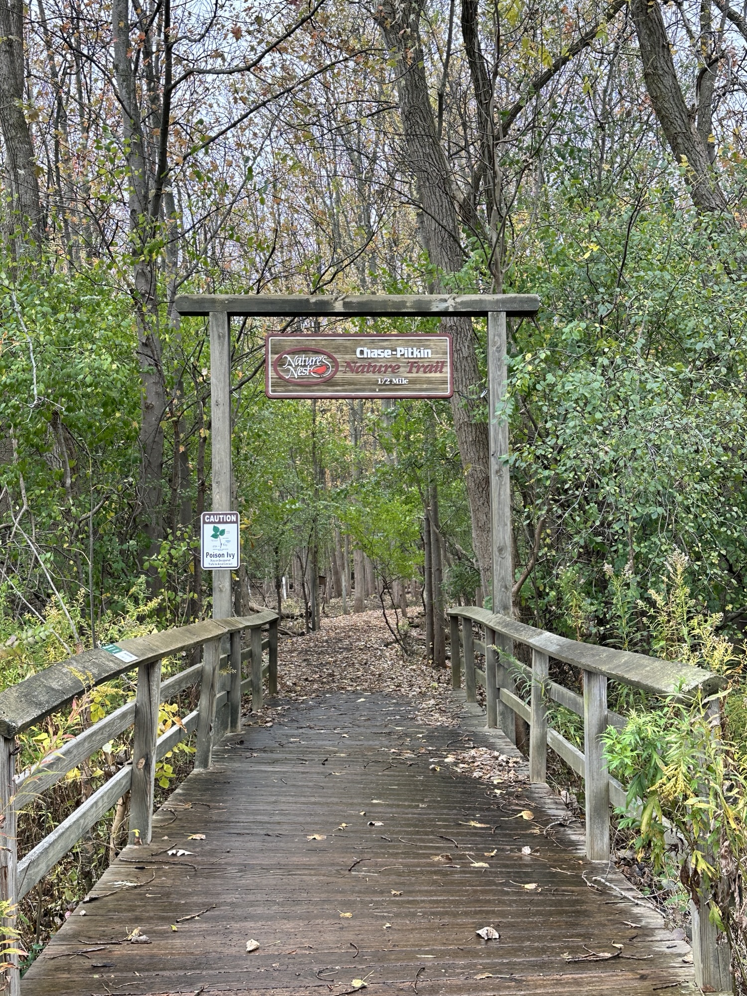 This nature park also has a Woodland Trail, Demonstration Gardens, wetlands, a pond with a gazebo, a wildlife viewing blind, a wildflower meadow, a nature center, restrooms, a playground, and more! You can park at the main parking lot near the restrooms to access the Nature Trail. Dogs are NOT allowed at Tinker Nature Park. Bikes are NOT allowed on this trail.