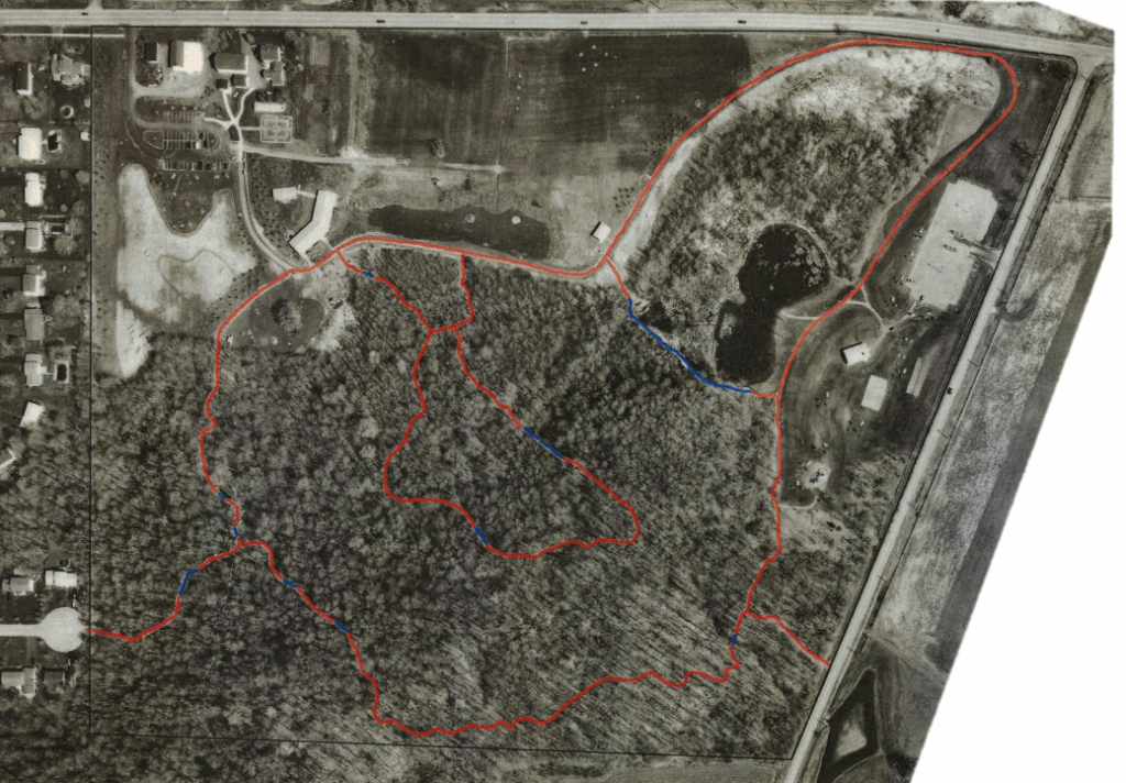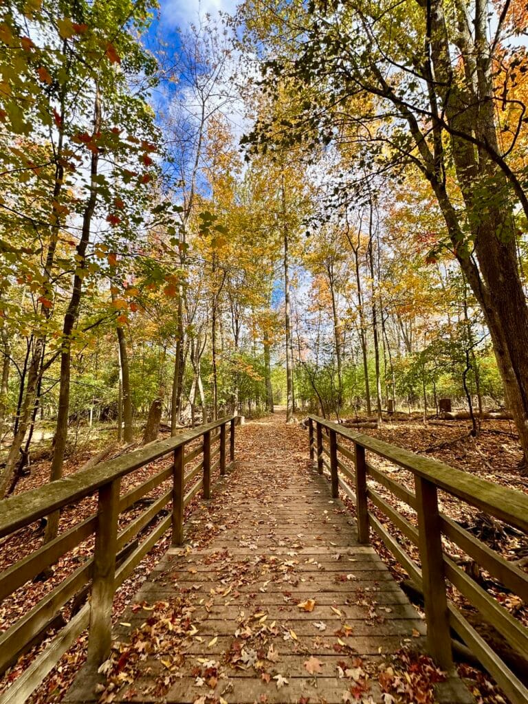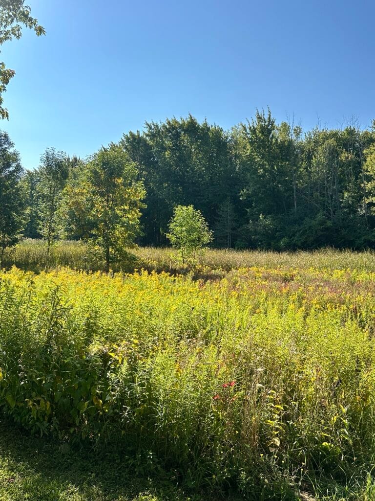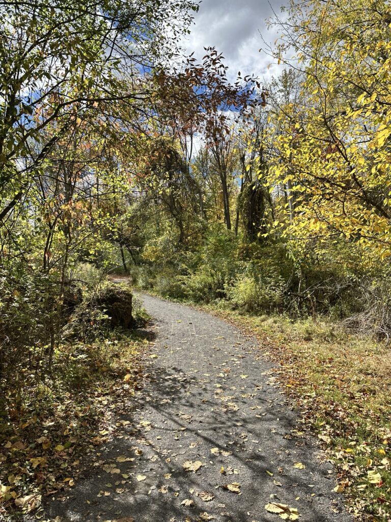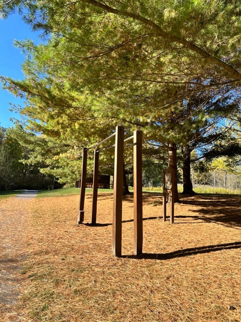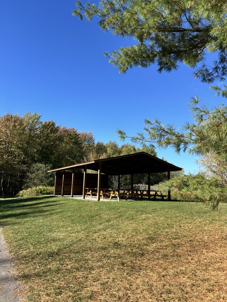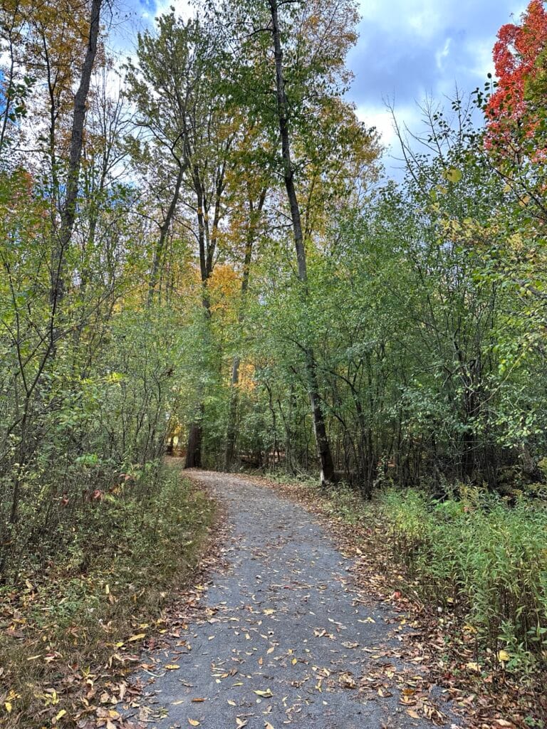 This is a beautiful park located 15 minutes south of Rochester, NY. The woodland trail is the outer loop, shown in the map below. The loop is 1.2 miles via the exercise path or 0.78 miles long if you take the cut through path along the boardwalk next to the pond. The trail goes through a beautiful wooded area as well as wetlands, a pond with a gazebo, a wildlife viewing blind, a wildflower meadow, a nature center, restrooms, a playground, and more! You can park at the main parking lot near the restrooms and visitor center or near the Tyler Pavilion and playground. Dogs are NOT allowed at Tinker Nature Park.