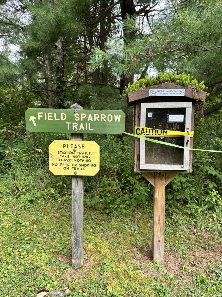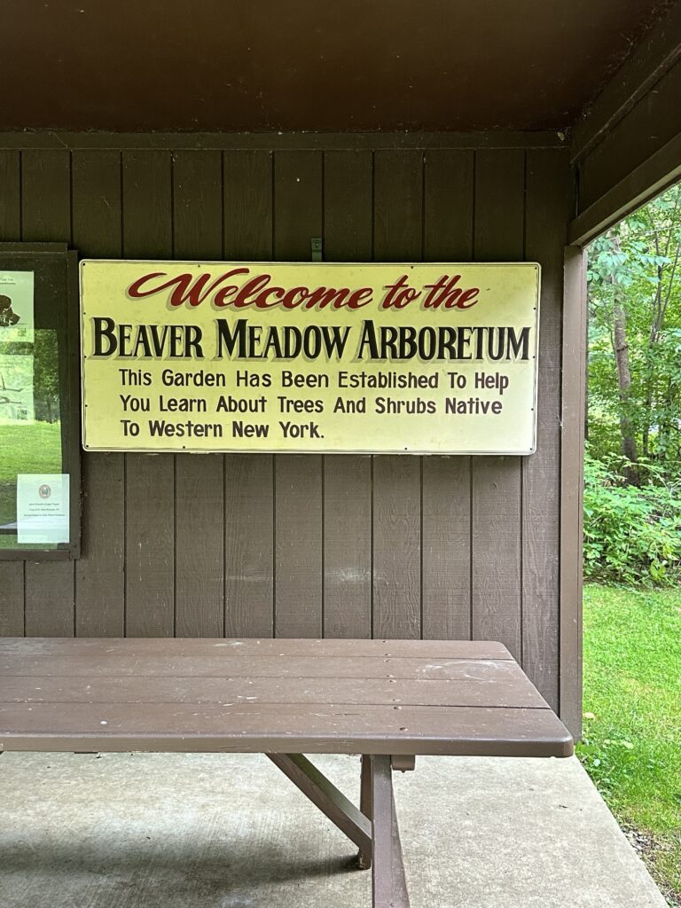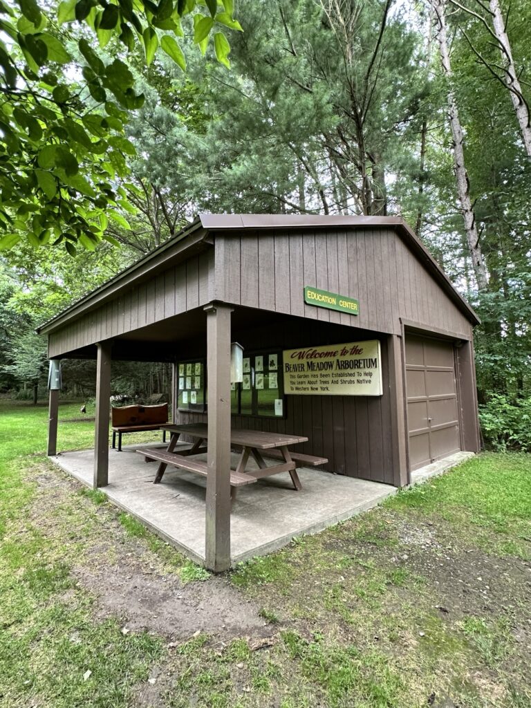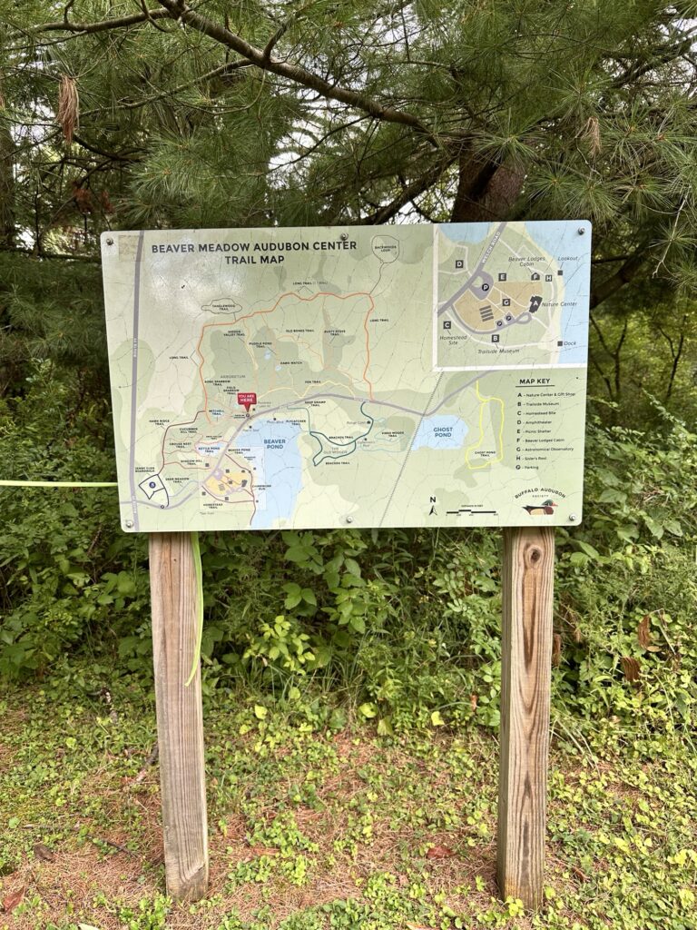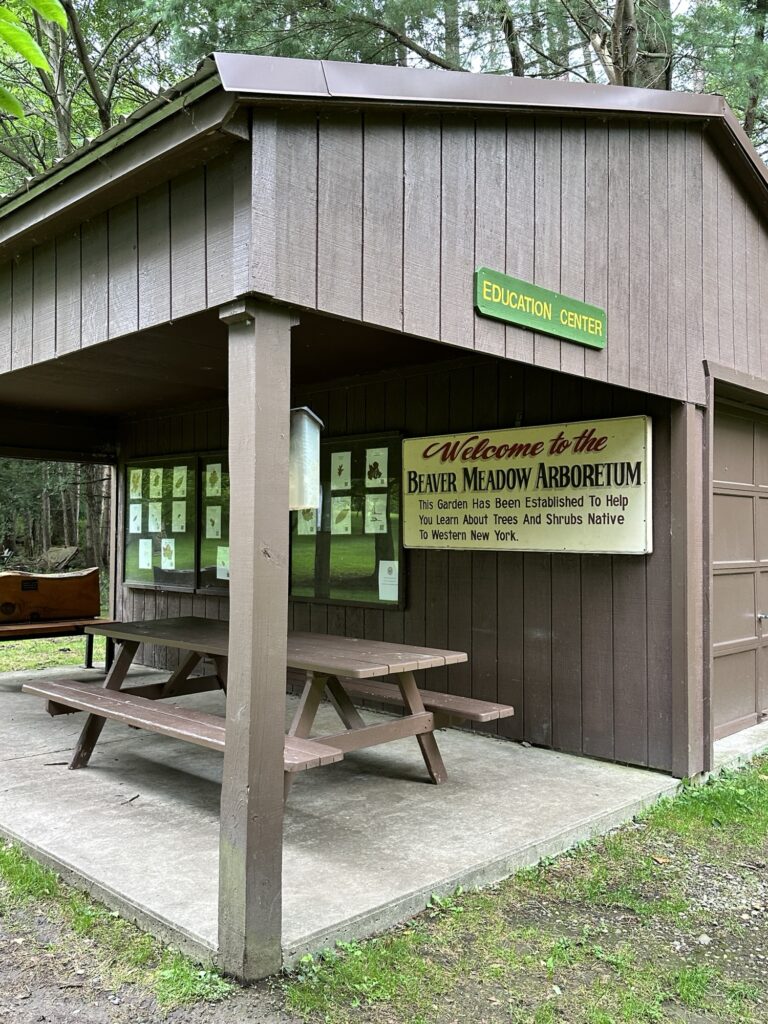 This Buffalo Audubon Society nature center (formerly Beaver Meadows Nature Center) is located 1.25 hours southwest of Rochester, NY and 40 minutes from Buffalo. Down the road a bit from the interpretive center is an arboretum. There is a lean-to, picnic area, benches, fields, a small stream, and a variety of trees – many with species labels on them. Several trails can be accessed from the arboretum parking area. Across the road you can find the Poet’s Seat and the Photo Blind overlooking Beaver Pond. There was a porta potty at the parking lot as well as a Little Free Library that was out of comission.