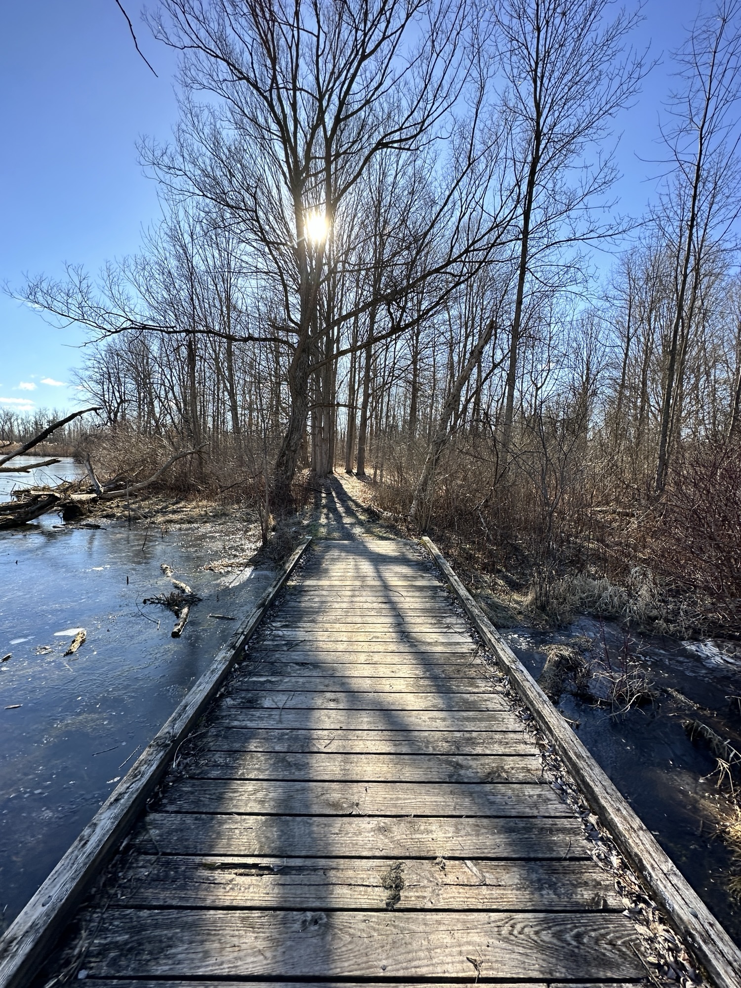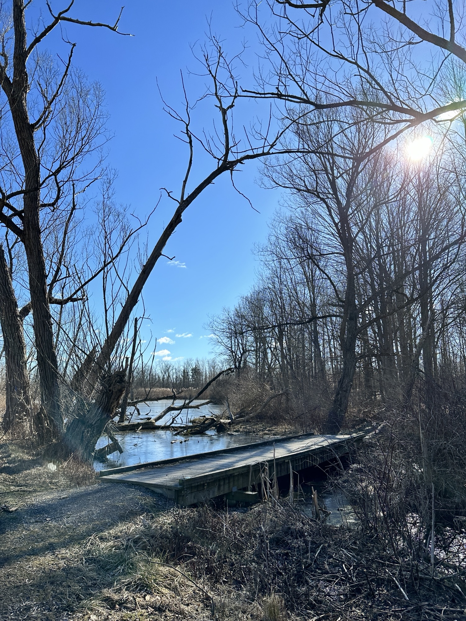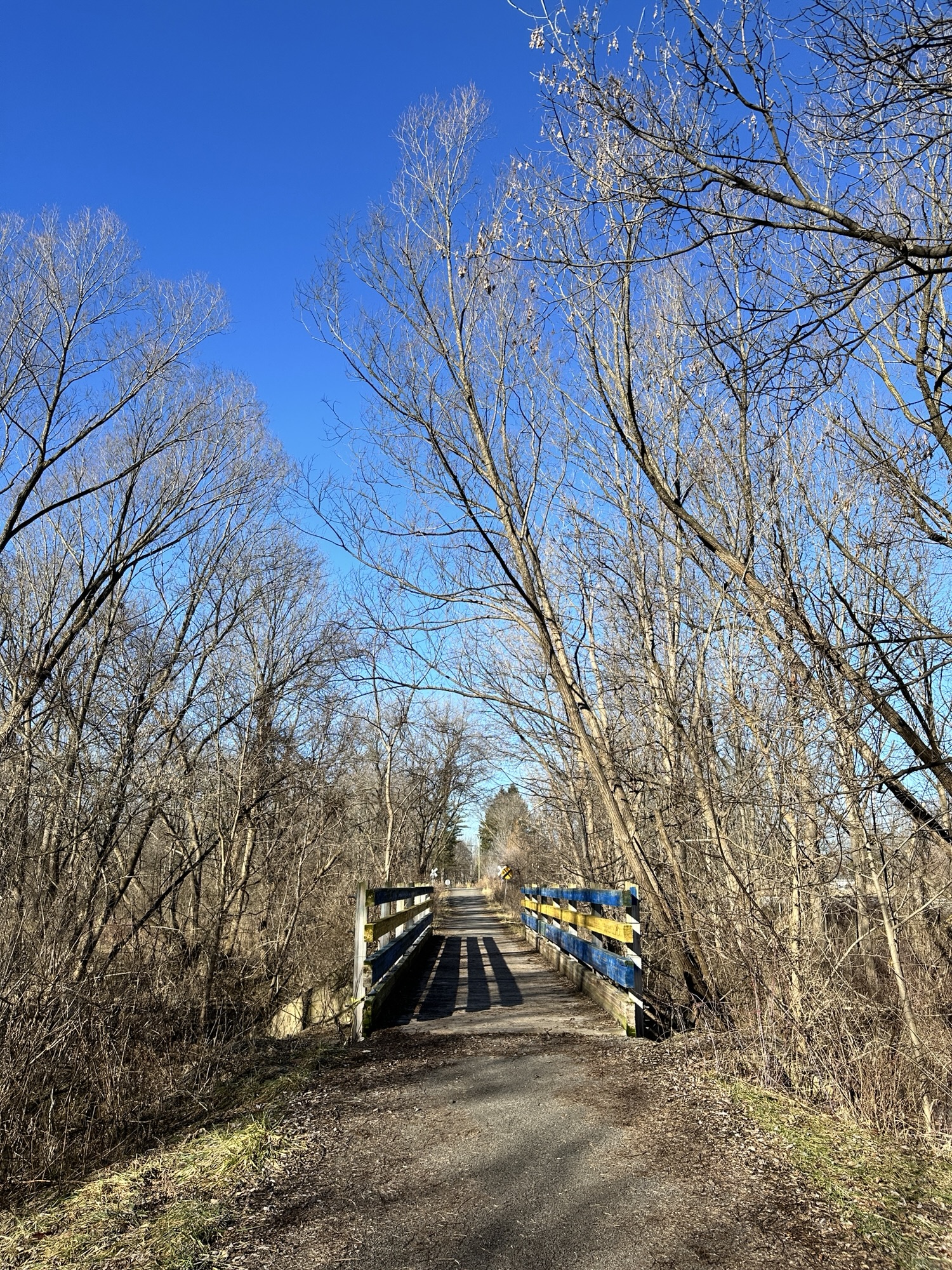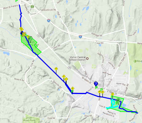 We parked near the Former Rochester & Eastern Rapid Railway Station. First we walked west a quarter mile to School Street, which crossed a bridge and railroad tracks. Then we returned to our starting place and walked three quarters of a mile to Victor Municipal Park, passing a bridge and some marshy areas. We played at the playground for a bit where there is also a storybook walk and a pond with a overlook deck. We then returned to the car via East Street and Maple Ave. What a beautiful place to take a flat, easy walk!