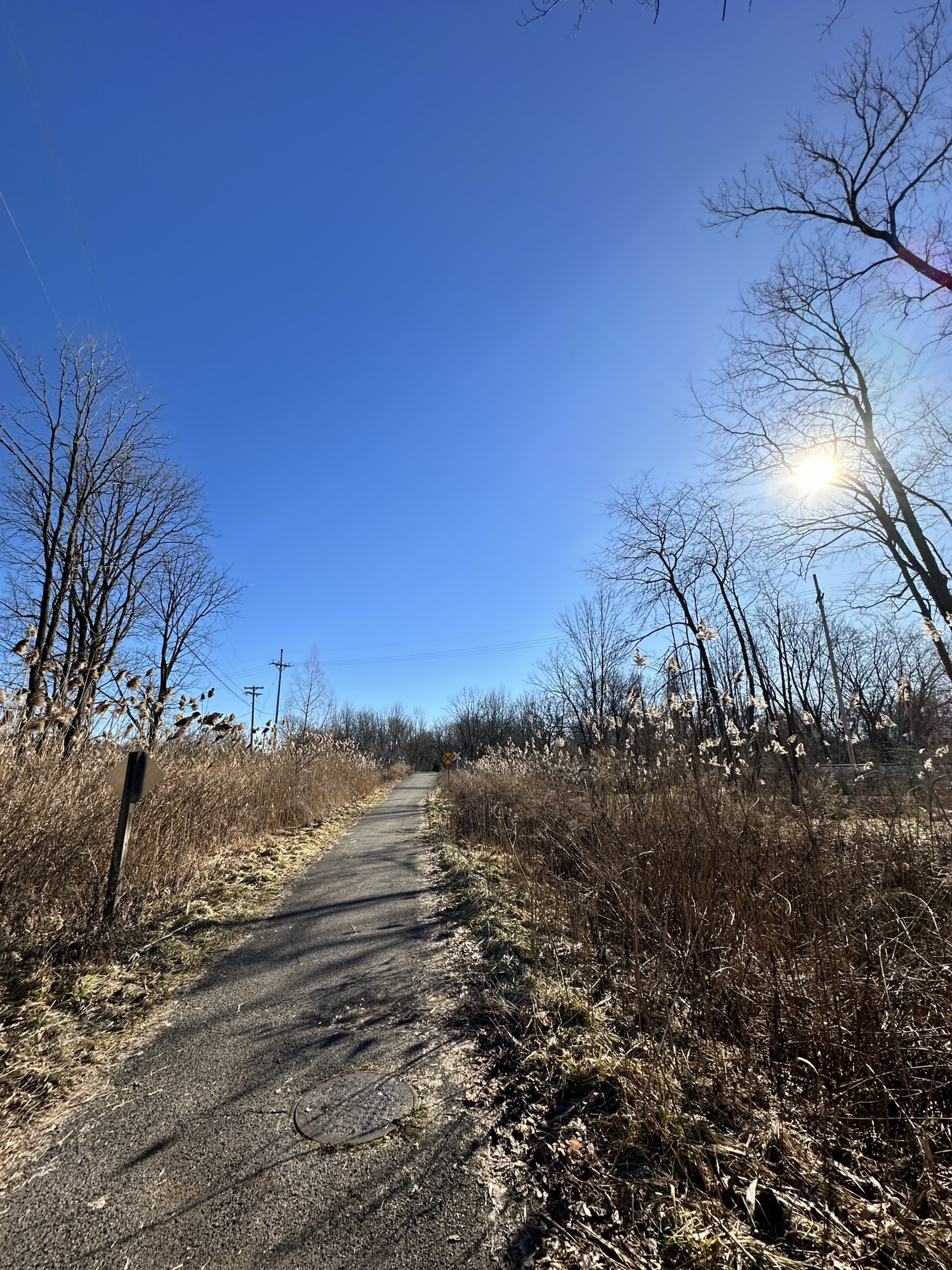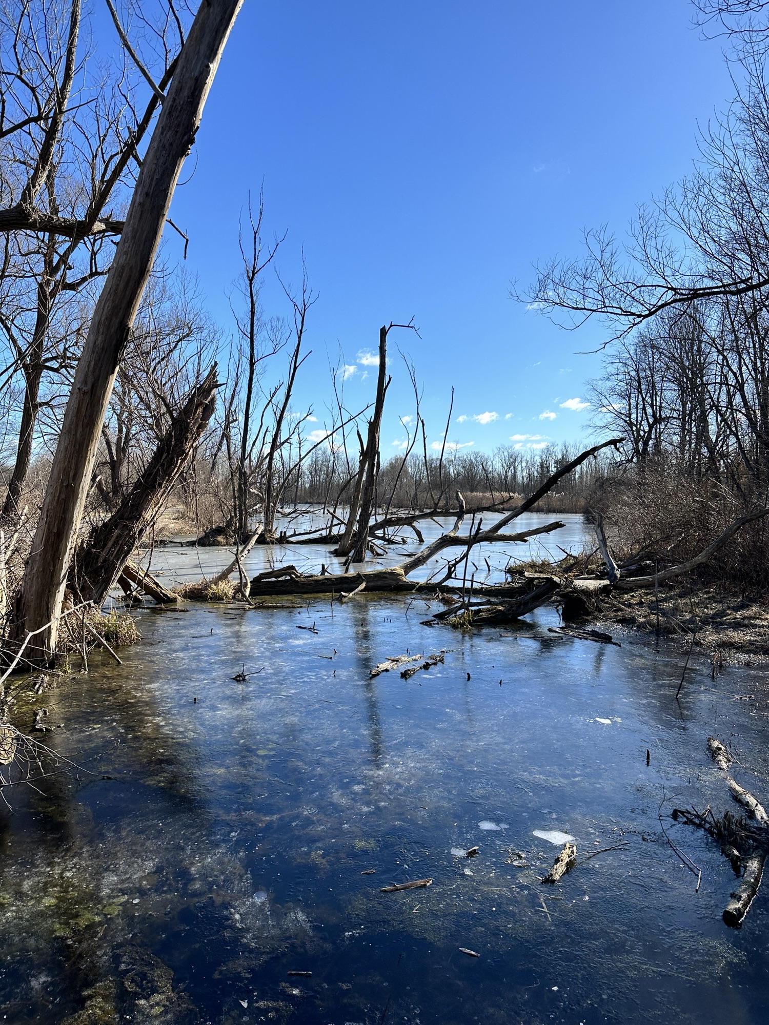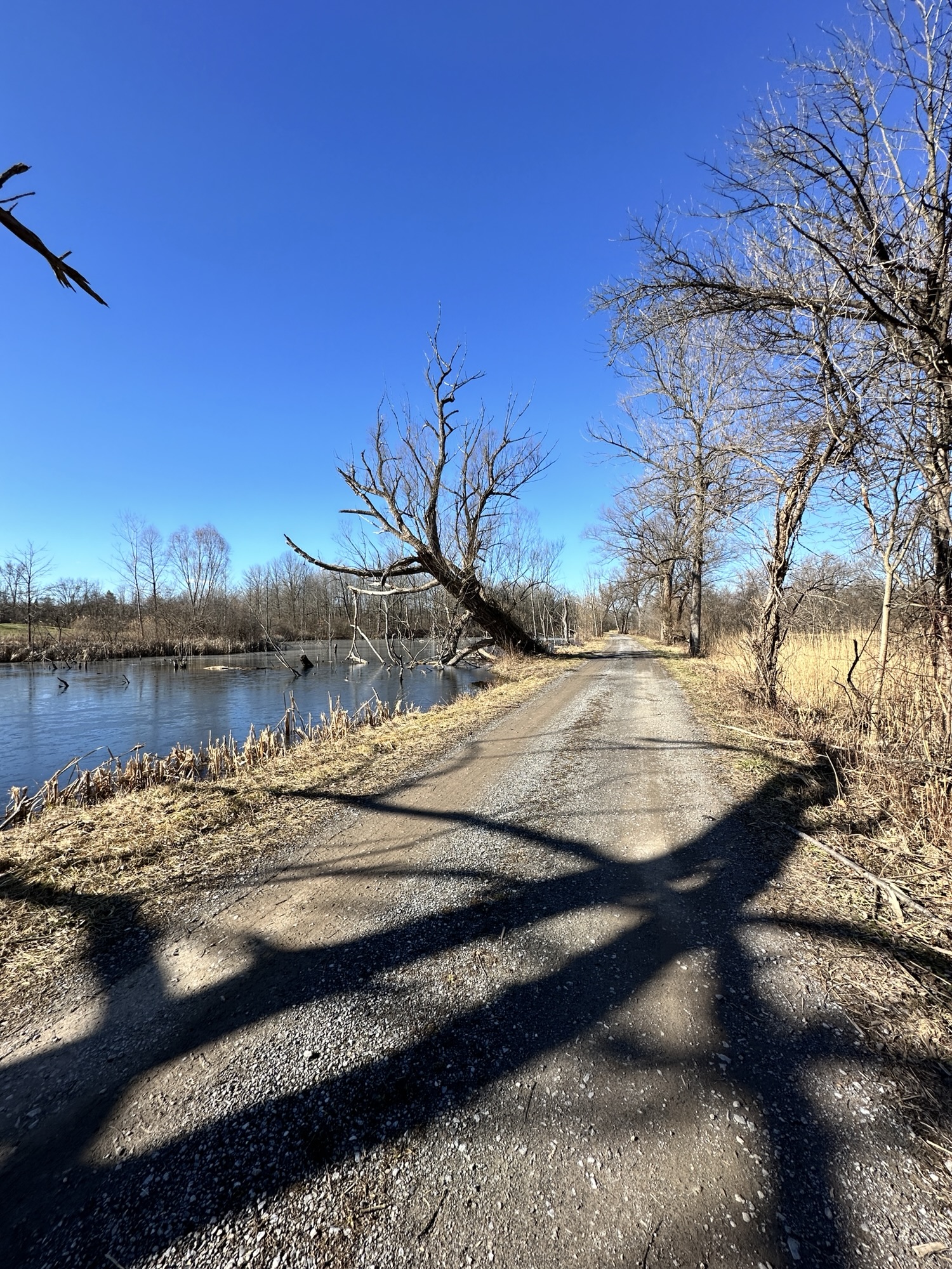 We parked near the Former Rochester & Eastern Rapid Railway Station. First we walked west a quarter mile to School Street, which crossed a bridge and railroad tracks. Then we returned to our starting place and walked three quarters of a mile to Victor Municipal Park, passing a bridge and some marshy areas. We played at the playground for a bit where there is also a storybook walk and a pond with a overlook deck. We then returned to the car via East Street and Maple Ave. What a beautiful place to take a flat, easy walk!